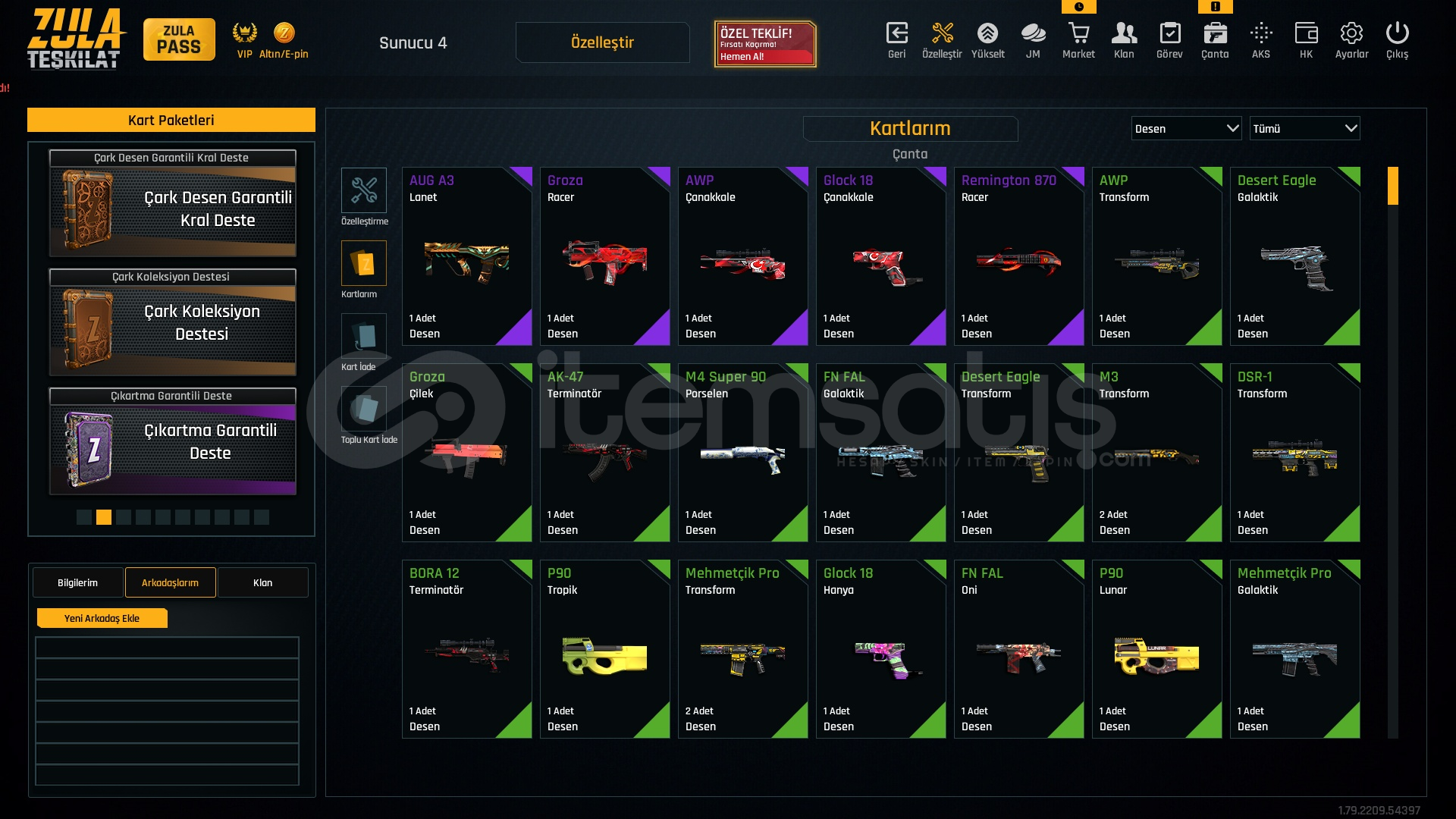 66 LEVEL 167K ZP+7 USTURA+7 İKİLİ C5+6 GLOCK 18+6 CHEYTAC M200+6 İKİLİ BOMBA+6 P90+6 MEHMETÇİK PRO+6 L115A3+6 DEAGLE+6 KELEBEK+6 MPX+6 M4 SUPER 90+6 TRX+6 TRANSFORM+5 M93R+4 AUG A3+4 KARAMBİT+3 AWPTEL EPOSTA SAĞLAM