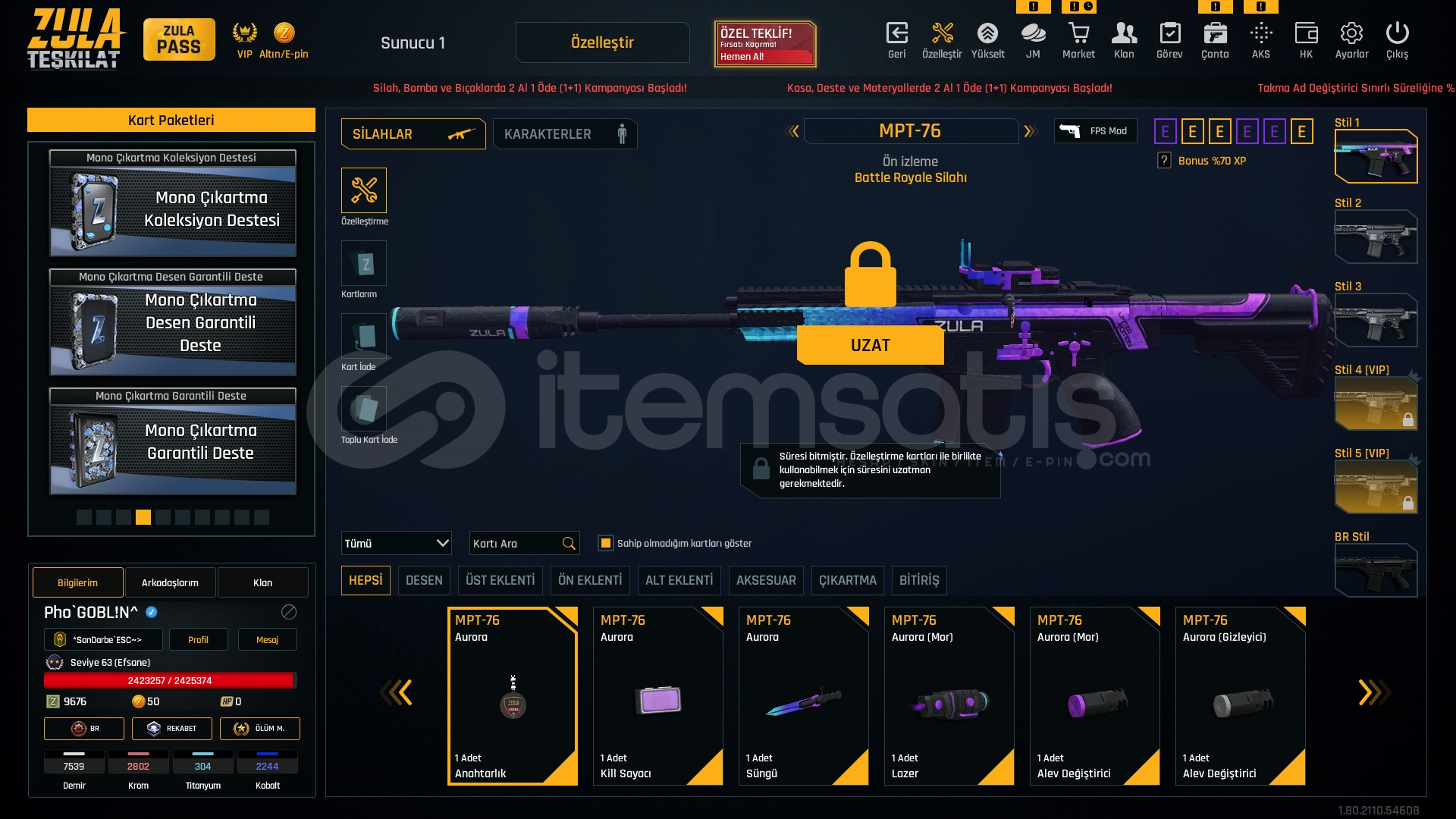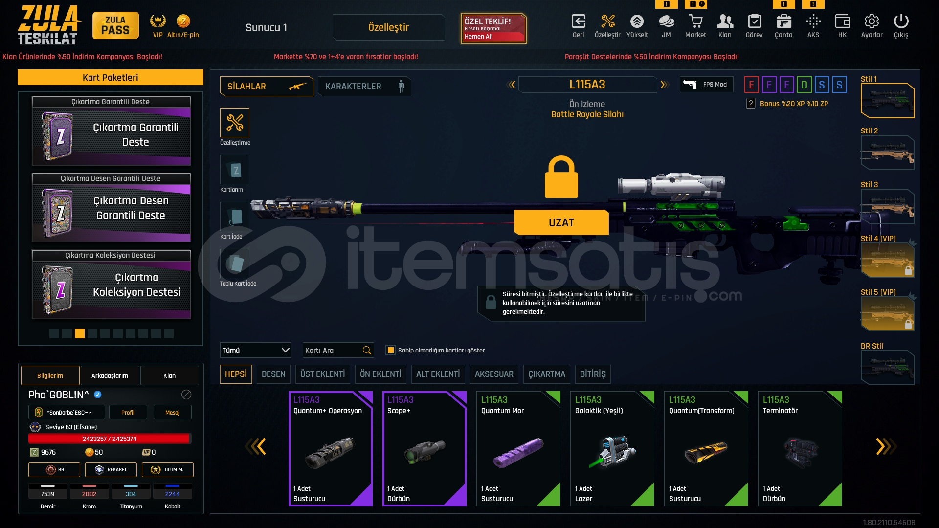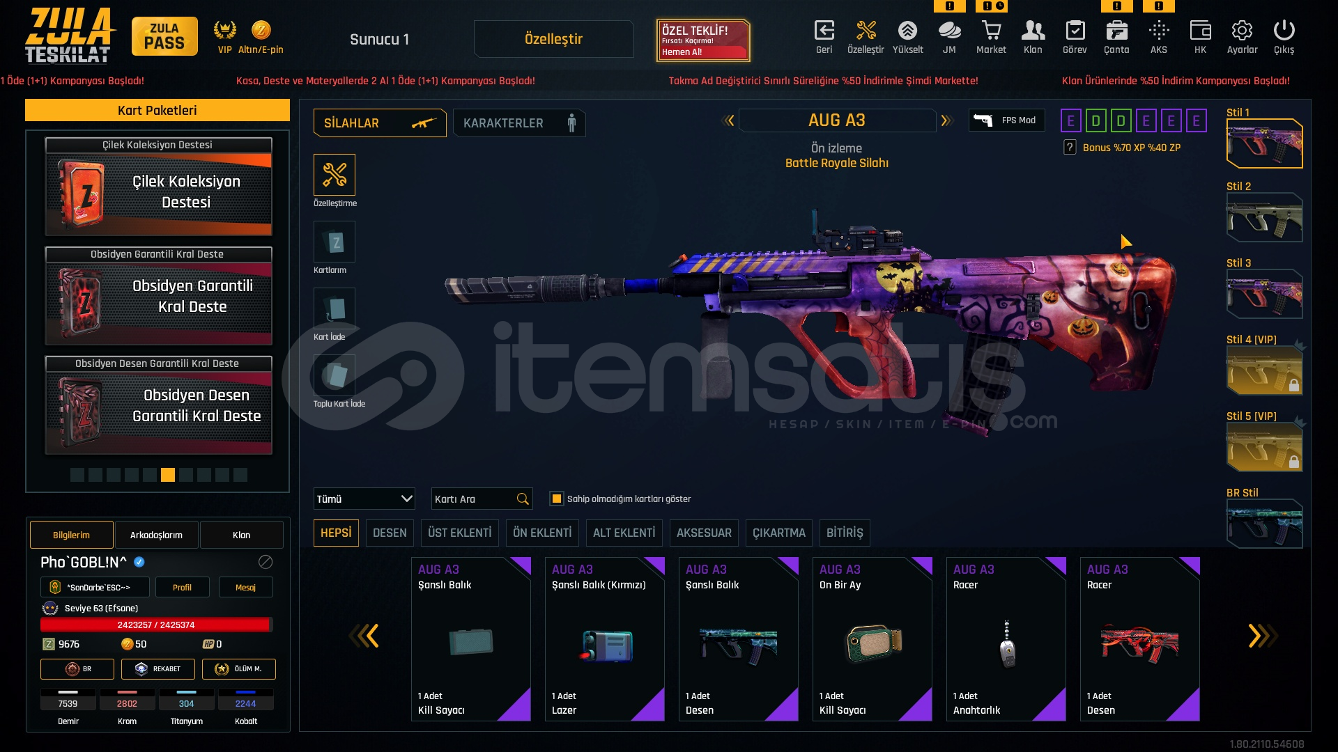 66 LEVEL 2018 KURUMLU.SINIRSIZ AUG A3 +7SINIRSIZ FATEH +7SINIRSIZ P90 +0SINIRSIZ HUNSTMAN +6SINIRSIZ ELENA ( KARAKTER )SINIRSIZ DAVİD KİNG ( KARAKTER )SINIRSIZ ROBERT O'BANNON ( KARAKTER )SINIRSIZ LARRY SİLVERSTEİN ( KARAKTERSINIRSIZ ŞAHİN KILIÇ ( KARAKTER )SINIRSIZ CENGİZ KAYA ( KARAKTER )L115A3 +7GROZA +6MPT 76 +5M93R +6KARAMBİT +6USTURA +7KELEBEK +6MK3 +6İKİLİ BOMBA +6