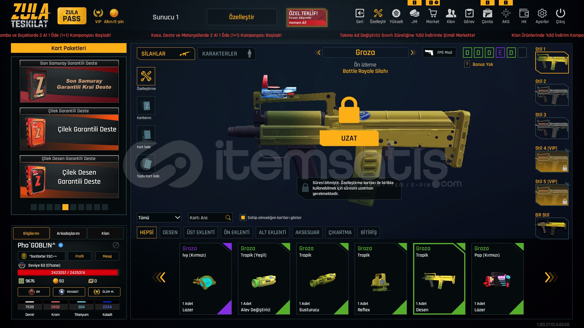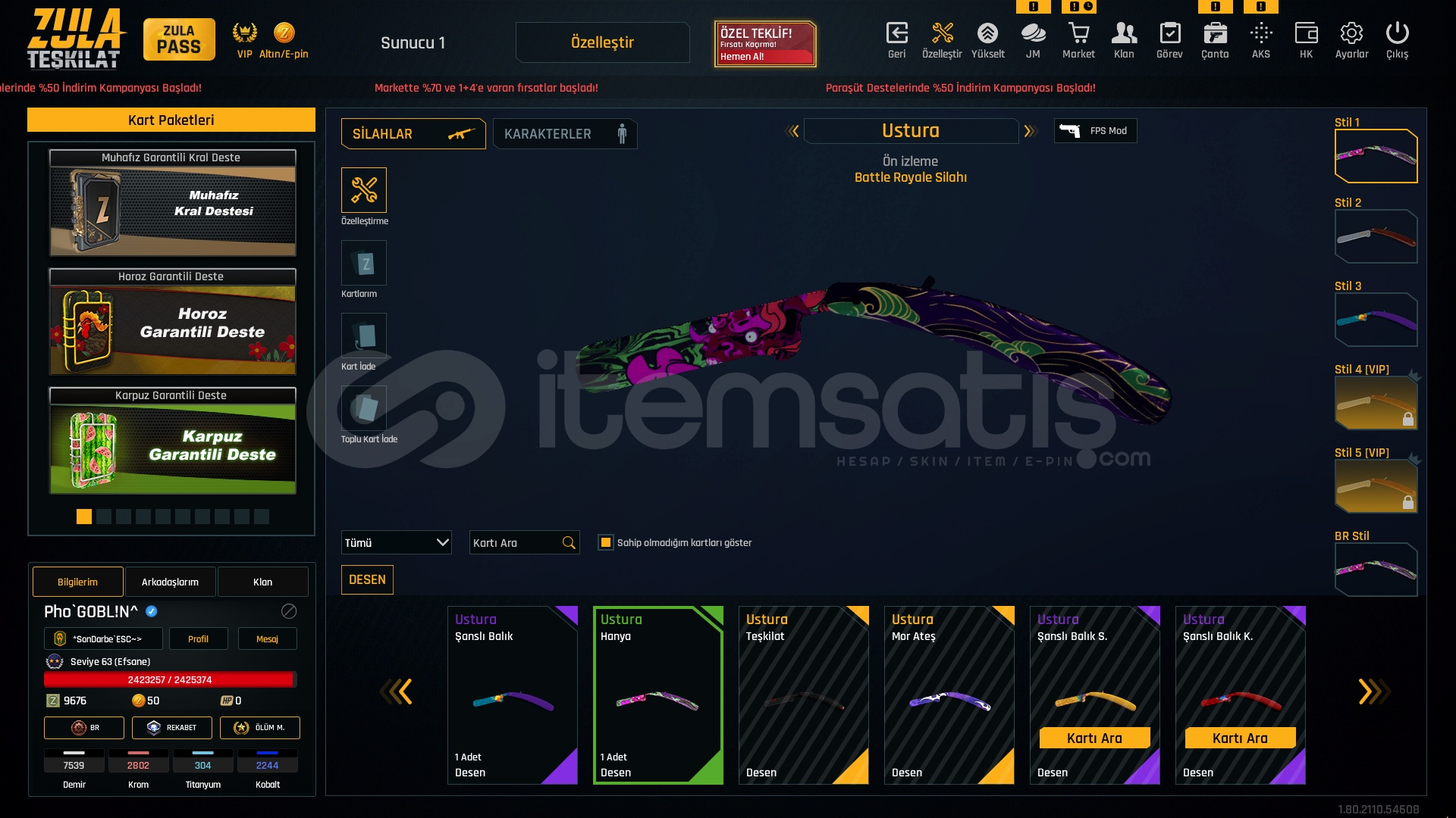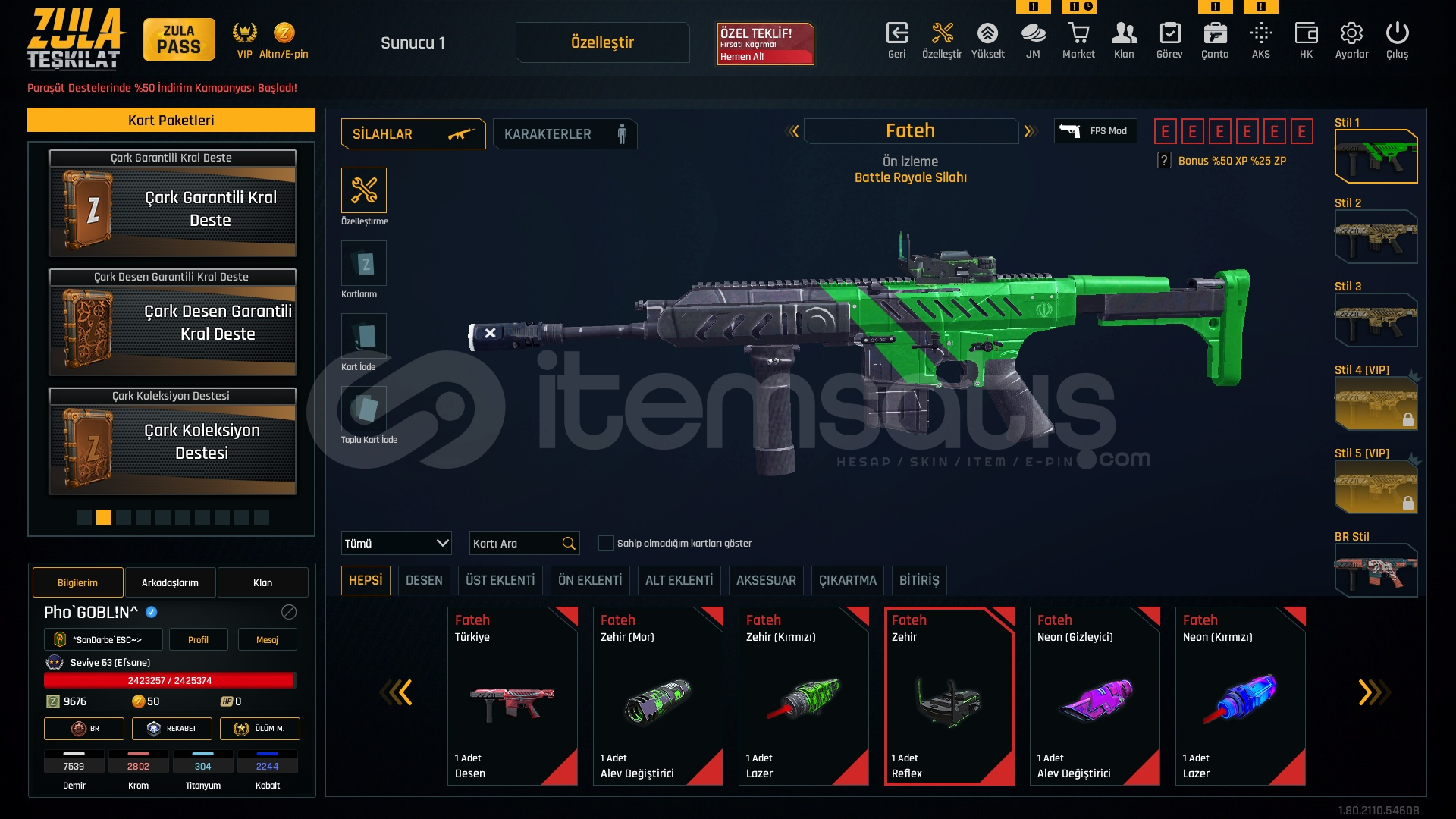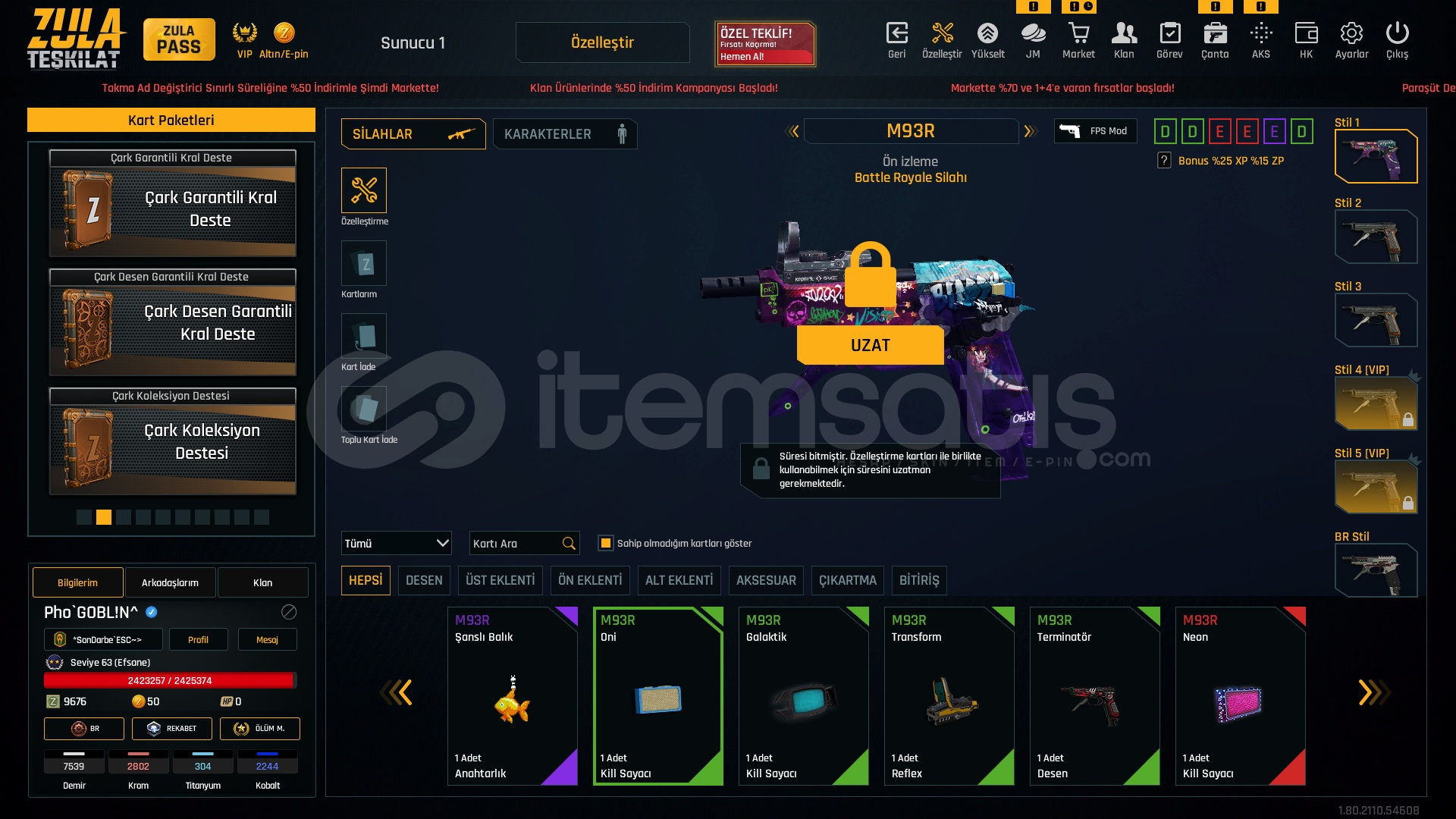 66 LEVEL 2018 KURUMLU.SINIRSIZ AUG A3 +7SINIRSIZ FATEH +7SINIRSIZ P90 +0SINIRSIZ HUNSTMAN +6SINIRSIZ ELENA ( KARAKTER )SINIRSIZ DAVİD KİNG ( KARAKTER )SINIRSIZ ROBERT O'BANNON ( KARAKTER )SINIRSIZ LARRY SİLVERSTEİN ( KARAKTERSINIRSIZ ŞAHİN KILIÇ ( KARAKTER )SINIRSIZ CENGİZ KAYA ( KARAKTER )L115A3 +7GROZA +6MPT 76 +5M93R +6KARAMBİT +6USTURA +7KELEBEK +6MK3 +6İKİLİ BOMBA +6
