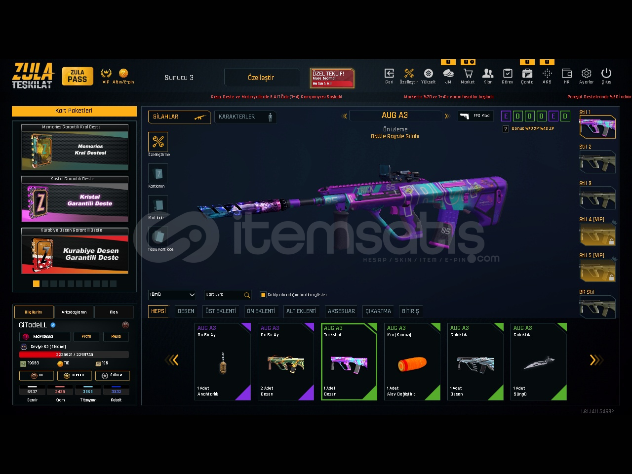 +7 AUG GERİ KALAN HER ŞEY +6 KAR98 USTURA HEPSİ +66 ADET TAKMA AD VARDIRHESAP 60 LEVELTEL GMAİL KAPALI ULAŞIM YOK ! GERİ ÇEKİLME OLMAZ ŞİKAYET EDERSİNİZ.ŞİFRE UNUTURSANIZ BİZ BİR ŞEY YAPAMAYIZ