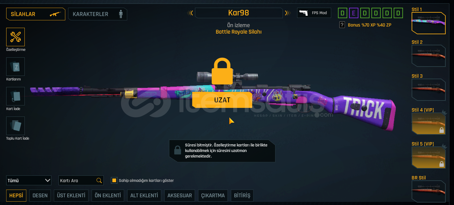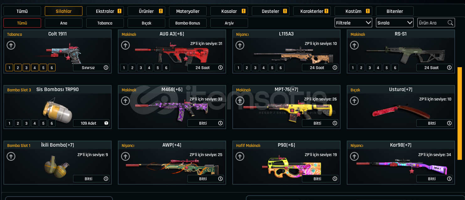 59 LEVEL Dehşet Başlangıç Hesabı+7 KAR98+7 MPT-76+7 glock-18+7 ikili bomba+7 ustura+6 AUGA3 +6 M468+6P90+4 AWP