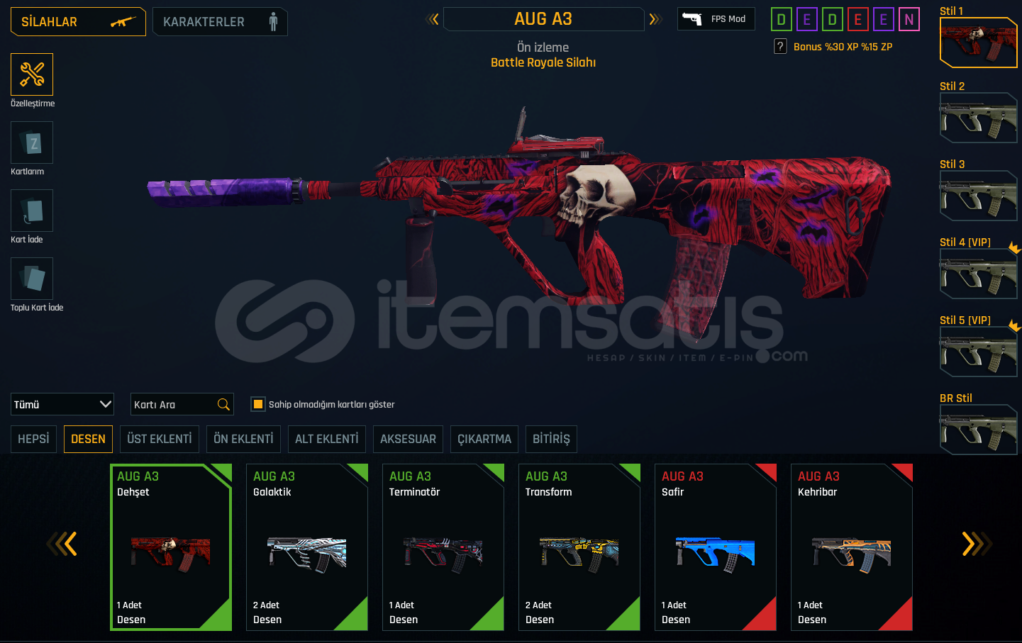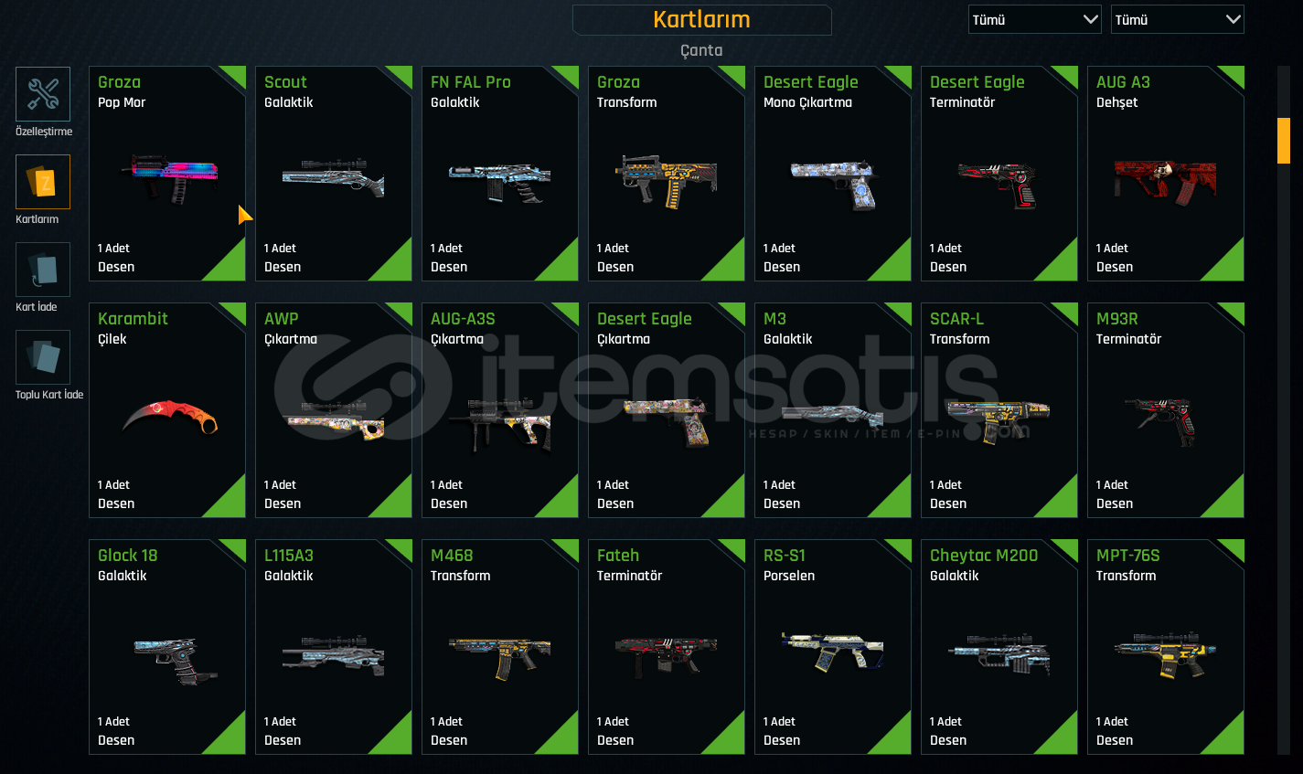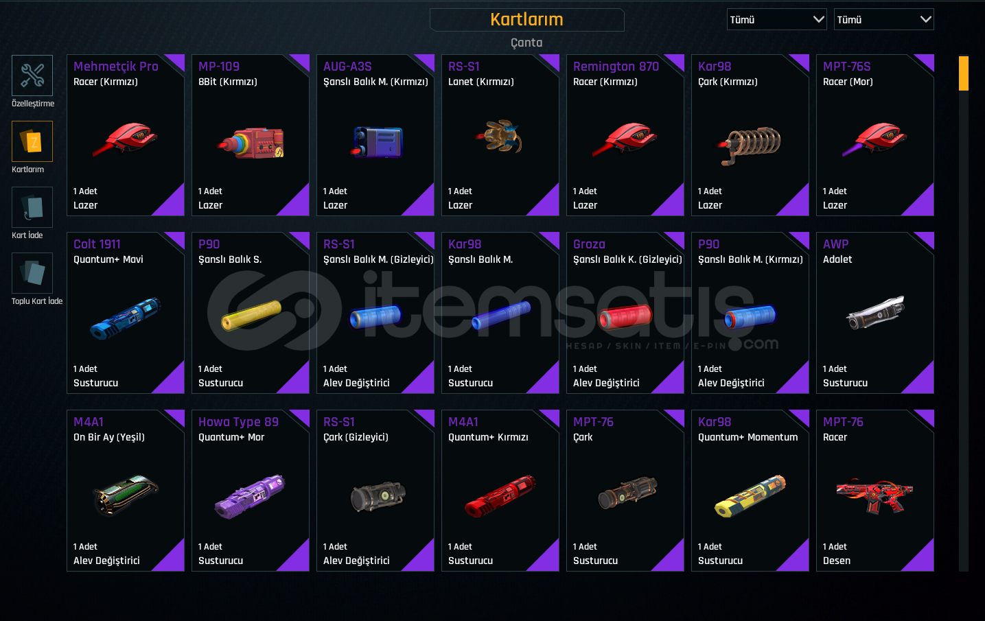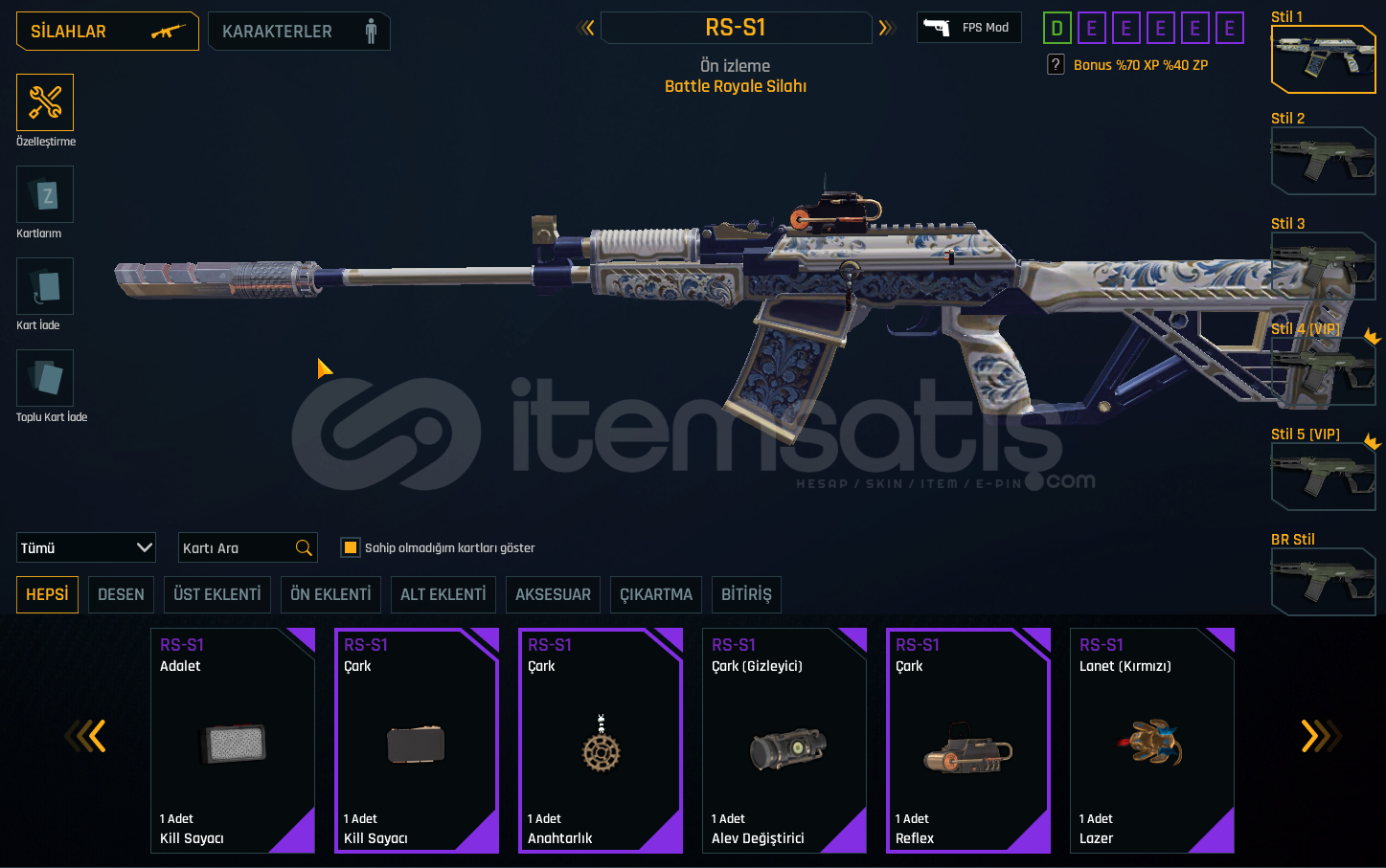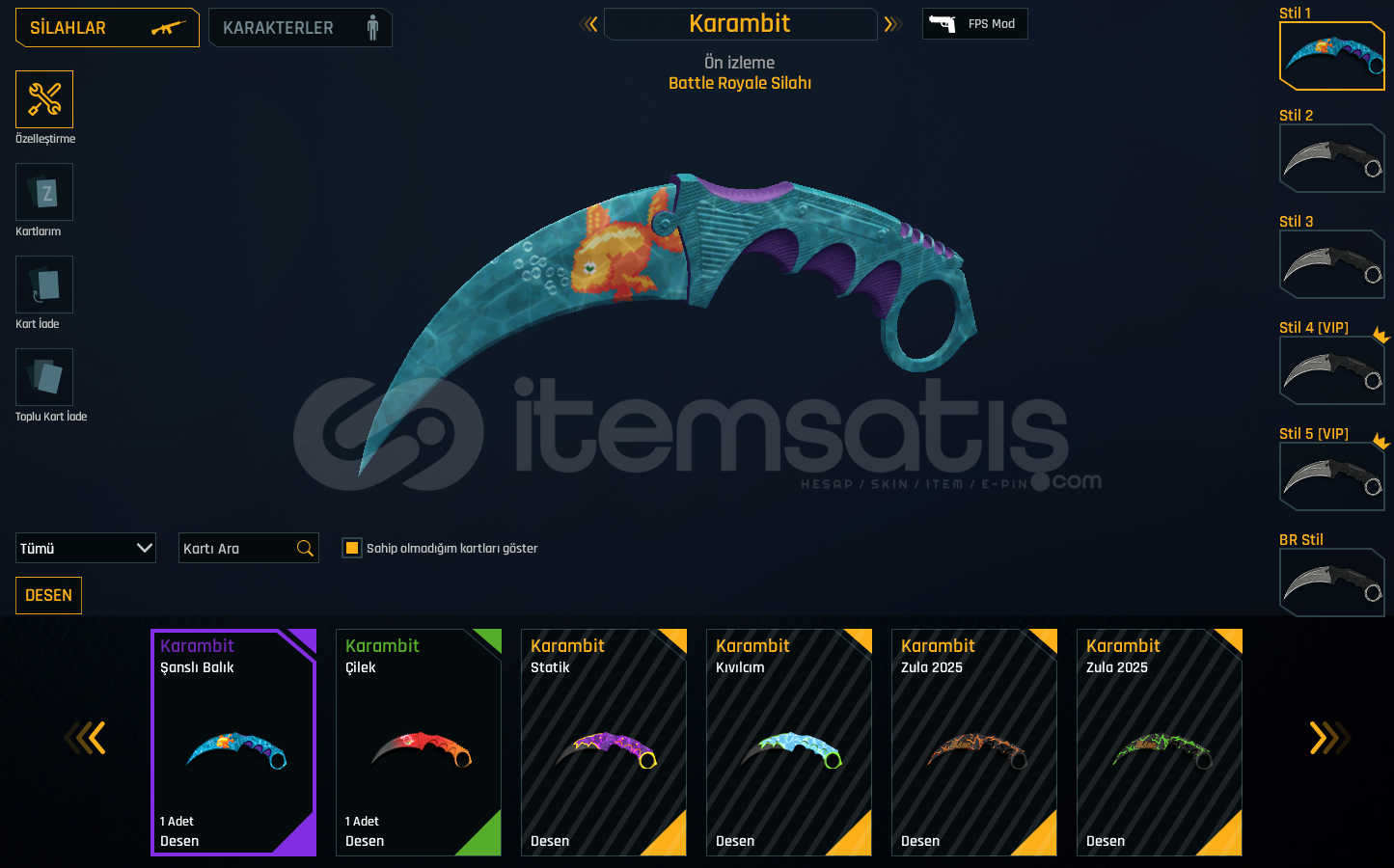 Hesap satılıktır, TEL/MAIL DEGISIM OLACAKTIR. 72 SEVIYEDIRAktif Pass Mevcut 75 SeviyedeKasılmalık hesaptır, başlangıç niyetine desenler ve seviye için alabilirsiniz.HESAPTA SADECE KARAMBIT MK3 +5 MEVCUTTUR.- %70 Materyal Gereksinimi x1KAR98 QUANTUM+ MOMENTUMCOLT 1911 QUANTUM+ MAVIM4A1 QUANTUM+ KIRMIZIDAVID KING SURESIZ ŞANSLI BALIK MAVI ELDIVEN.IVAN VASILYES SURESIZ ŞANSLI BALIK MAVI ELDIVEN.BAY HAN SURESIZ ŞANSLI BALIK KI...