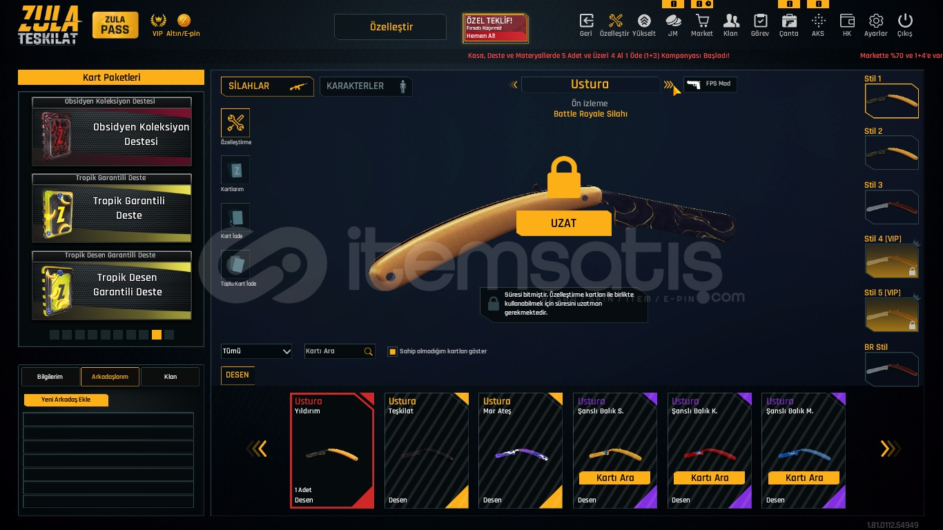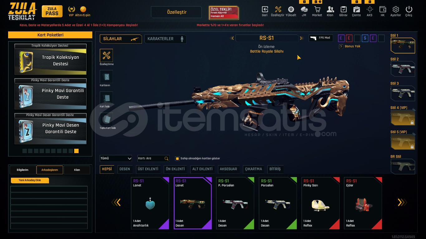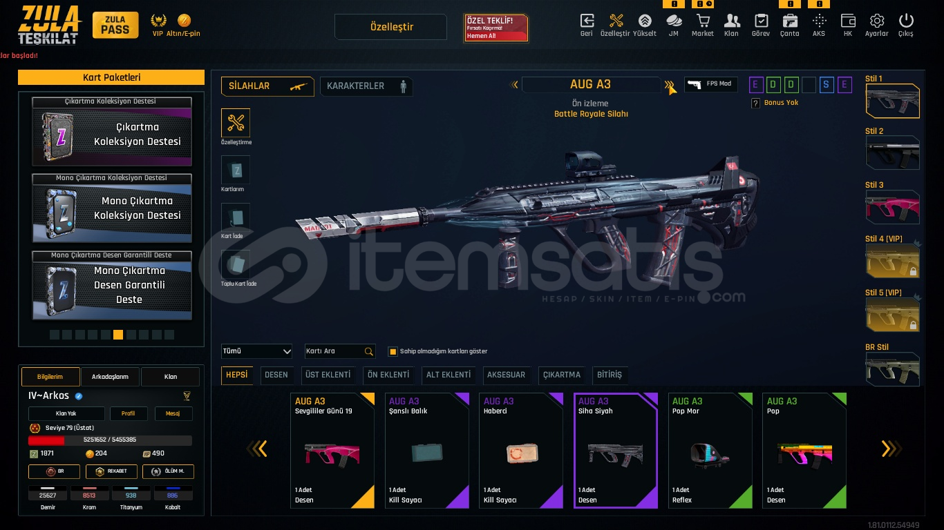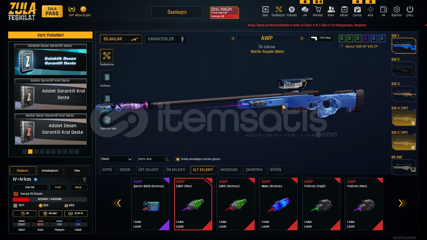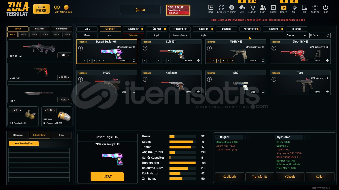 🔥 79 level, temiz, sorunsuz ve birçok yüksek seviye silaha sahip 🔥🔫 Deagle +6 (Sınırsız)💣 İkili Bomba +6 (Sınırsız)⚡ MPT-76 +7⚡ MK-3 +7🔪 Karambit +7💥 İkili C5 +7🗡️ Kelebek +7🔫 GROZA +6🔫 M93R +6🎯 L115A3 +6🎯 AWP +6🔫 Glock 18 +6🔪 Ustura +6🎯 BORA 12 +6🎯 KAR98 +5🔫 AUG A3 +4🎯 RS-S1 +4🎯 MSR-...