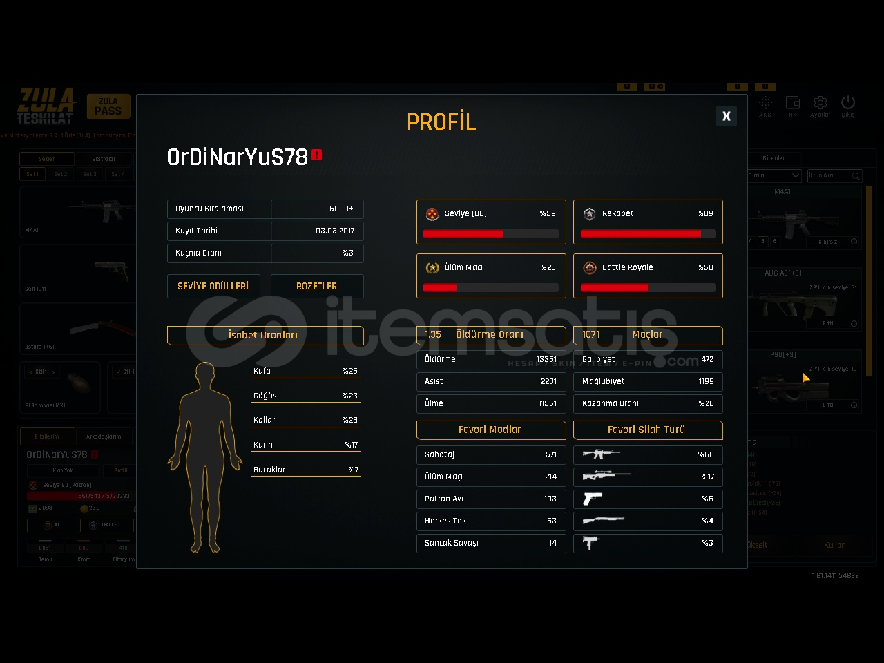 80 LEVEL ÇOK UYGUNA 2017 KAYITLI ZULA HESABI