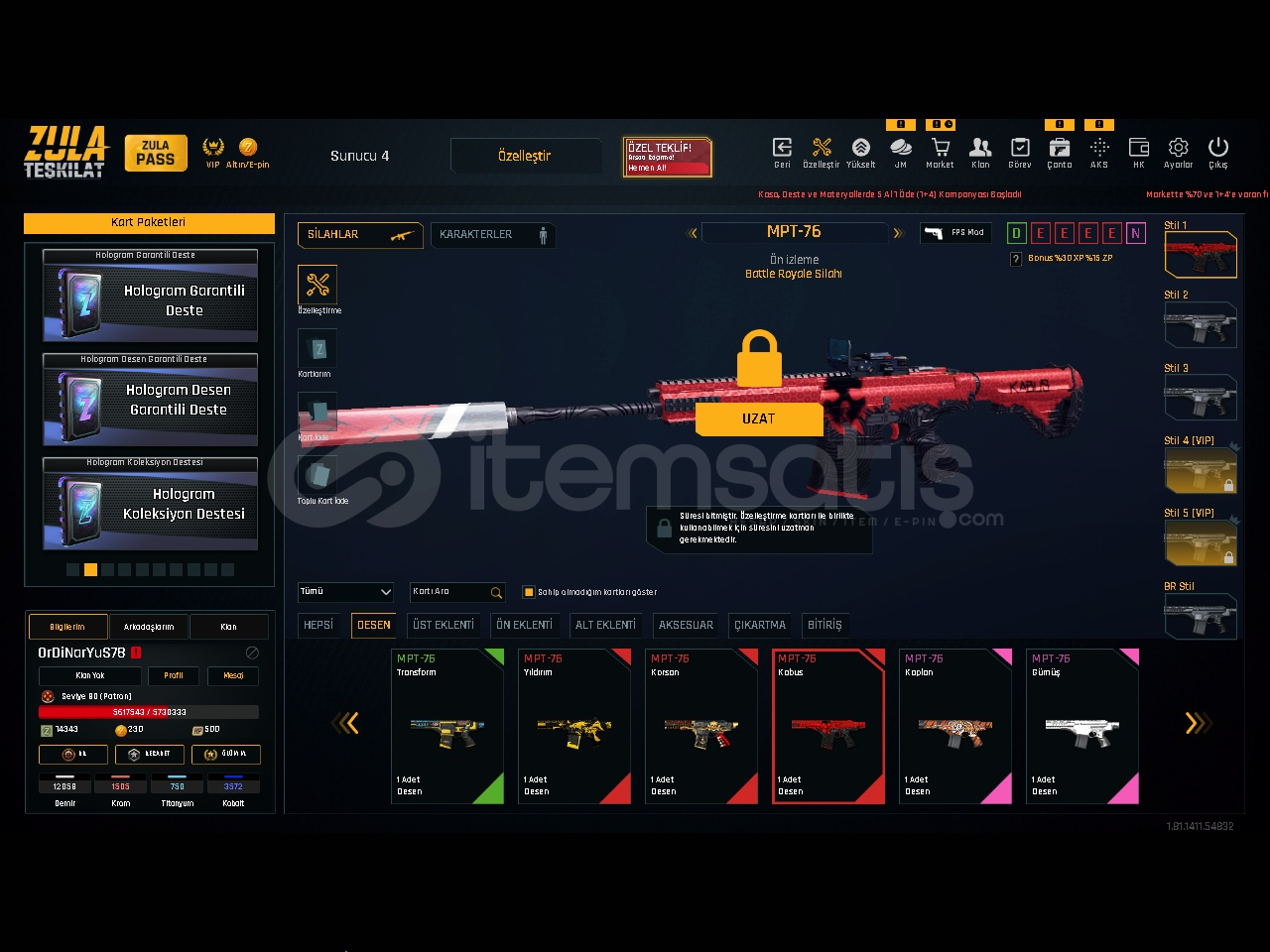 LEVELİ 80GMAİL SAĞLAM TELEON KAPALIDIR.+6 MPT-76 +6 USTURAGERİSİ +4BOL ÖZELLEŞTİRMELİ HESAP UYGUNAKD SIFIRLAMA VARDIR 2 ADET