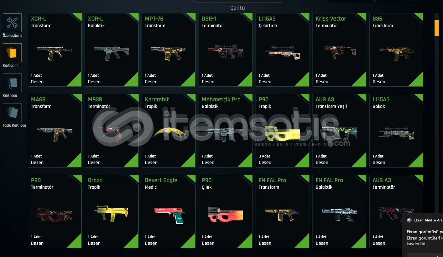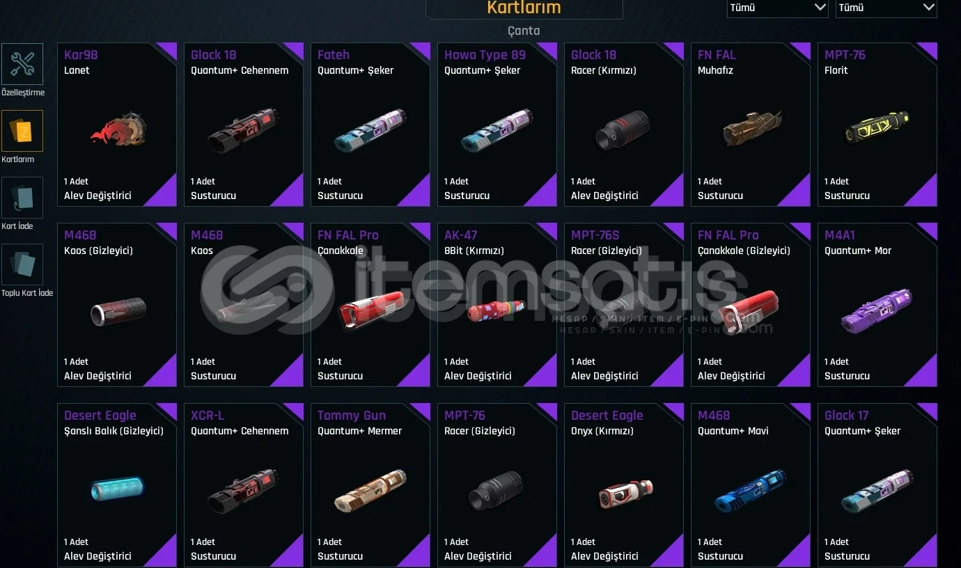 Seviye 82, Quantum ve Quantum+ doludur. 265K ZA GECMISLIDIR.MAIL/TELEFON DEGISIMI YAPILACAKTIR.QUANTUMLAR+ BU FIYATA BEDAVADIR MAINLEYEBİLİRSİNİZQUANTUM+ BULUNAN SILAHLAR,Glock-18 ( Quantum+ Cehennem )M468 ( Quantum+ Mavi )Fateh ( Quantum+ Şeker )Tommy Gun ( Quantum+ Mermer )Glock-17 ( Quantum+ Şeker )XCR-L ( Quantum+ Cehennem )M4A1 ( Quantum+ Mor )Howa Type 89 ( Quantum+ Şeker )...