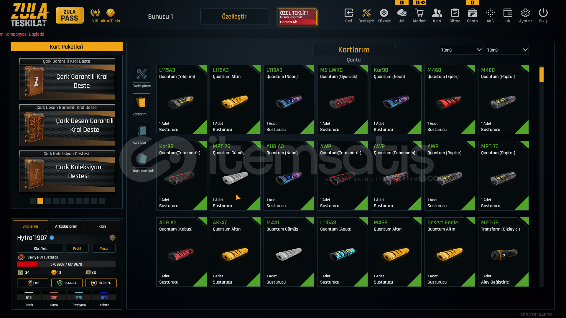 BAGLAR NUMARA E POSTANIZ BAGLANACAKTIR TEMİZDİR AUG A3 +6 SINIRSIZ M93R +6 SINIRSIZ BORA 12 +6 SINIRSIZ L115A3 +7 AK47 +7 KARAMBİT +7 KELEBEK +7 USTURA +6 İKİLİ BOMBA +6 TOMMY GUN +6 GROZA +5 QUANTUMSUZ SİLAH YOK SINIRSIZ HEPSİNDE QUANTUM VAR BOL ÖZELLEŞTİRMELİ HESABA HİÇ PARA YATIRMADAN ÖMÜRLÜK OYNAYABİLİRSİNİZ META SİLAHI İLE TABANCASI SINIRSIZ SORMAK İSTEDİĞİNİZ SORU OLURSA YAZABİLİRSİNİZ SİTEDE HEP AKTİFİM CEVAPLARIM SİTEDE OLMASAM BİLE SATIN ALABİLİRSİNİZ ONAYLI MAĞAZA GÜVENCESİ İLE HIZLI TESLİMAT