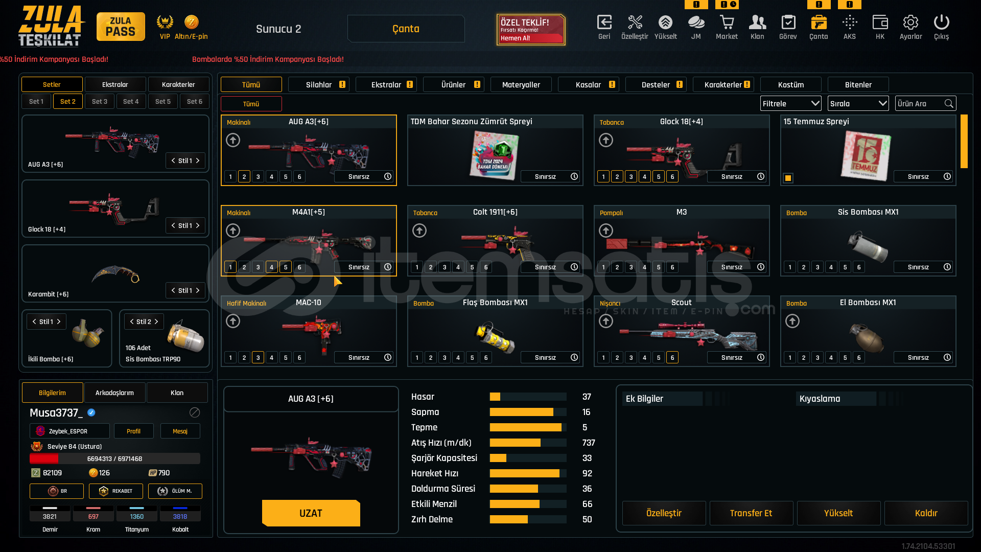 84 Level +6 Aug SINIRSIZ +4 Glock-18 SINIRSIZ