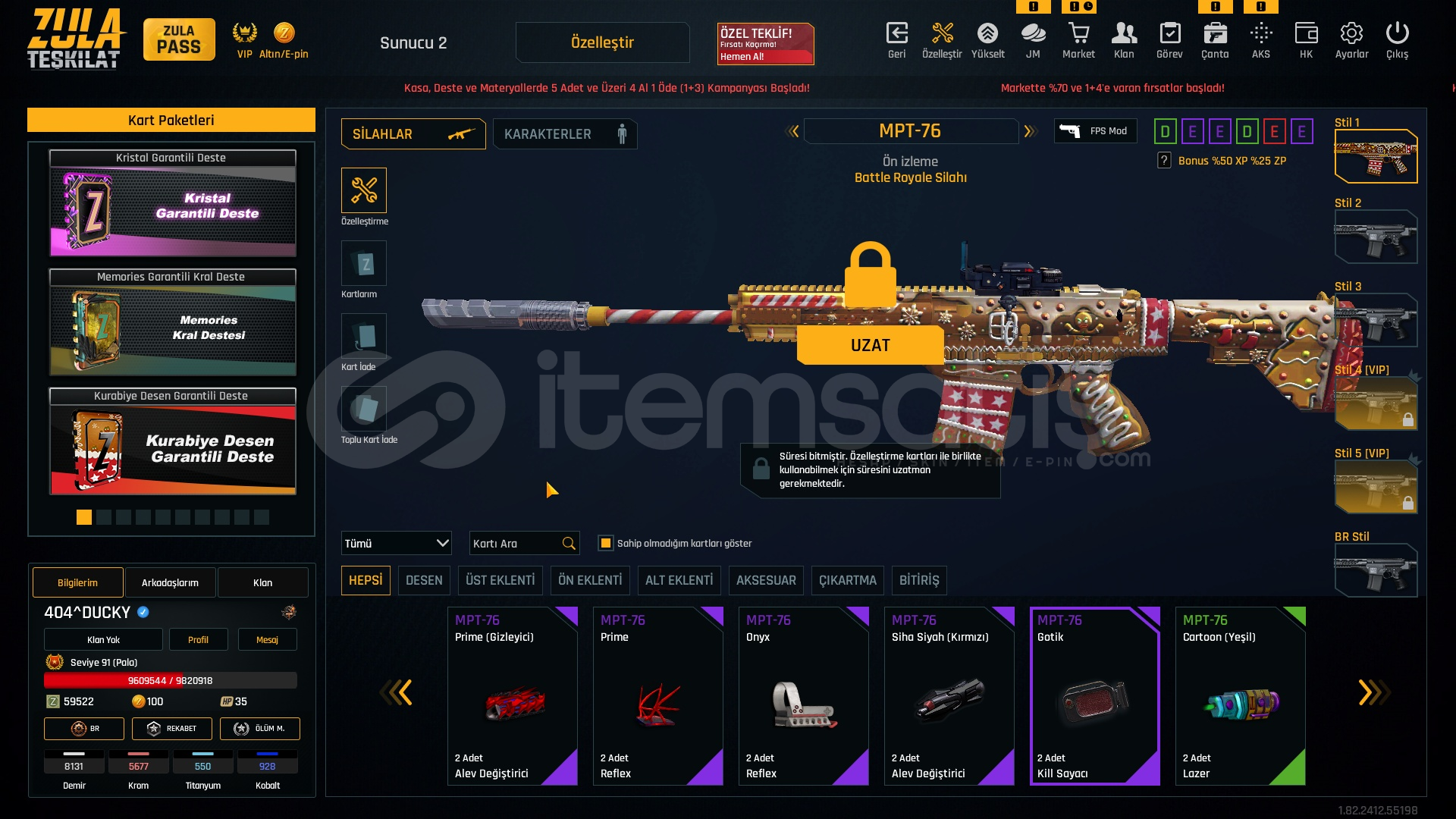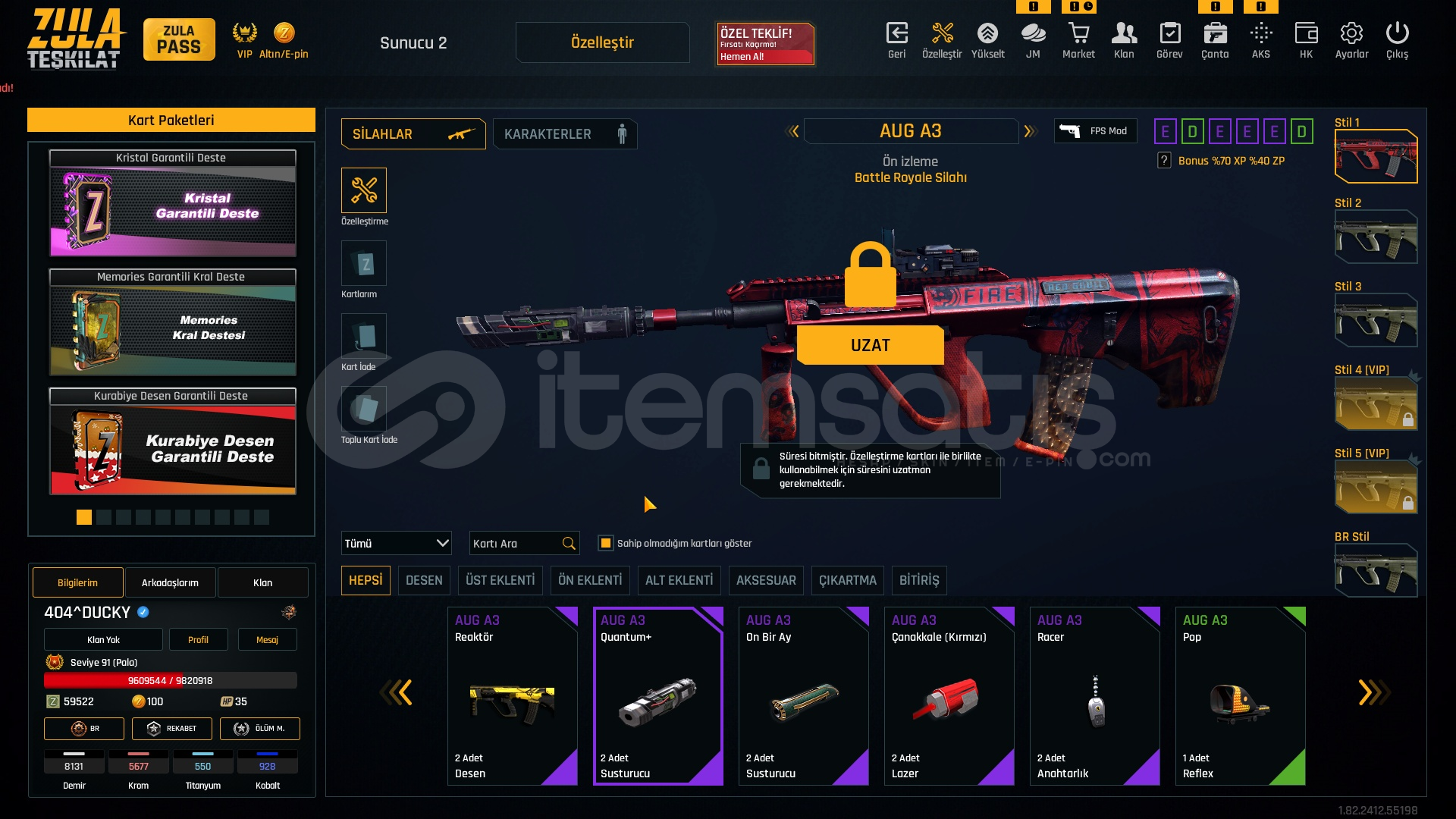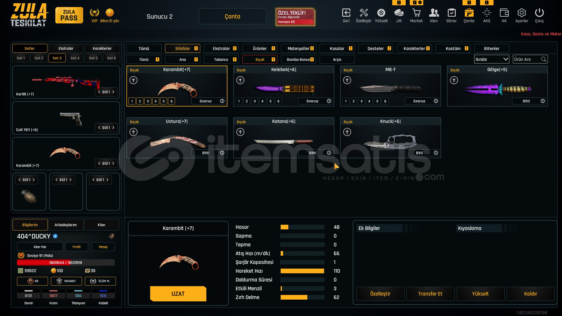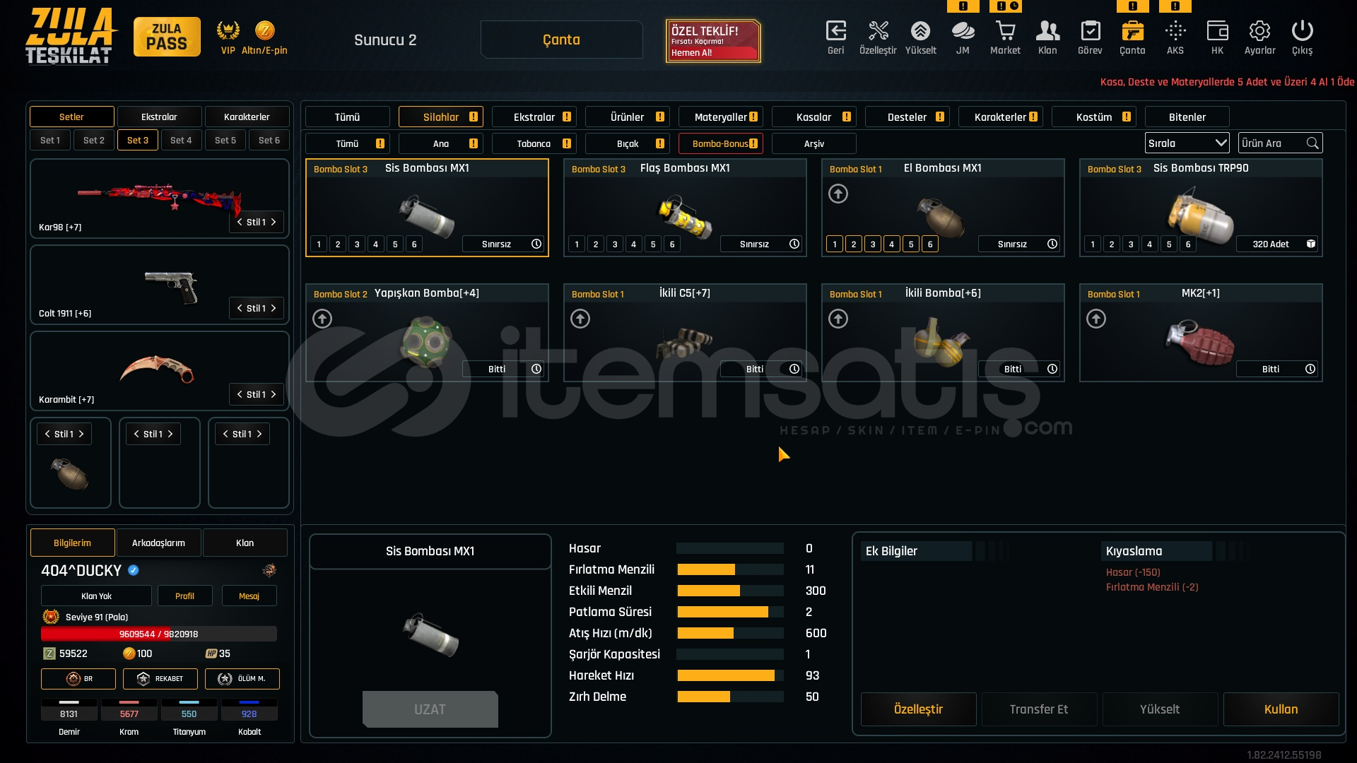 TABANCALAR +7 SET BICAK +711 ADET İSİM DEĞİŞTİRME + 1 TANE KD SIFIRLAMAHESAP 1 YILDIR BENDE BİR SORUN OLMADI BİR SIKINTISI YOKSINIRSIZLAR FOTOĞRAFTA VARDIR.91 LVLFULL +6 +7 Main SilahlarBİSSÜRÜ SINIRSIZ SPREY V.S11 tane isim değiştirmeHESAPTA mail temp yani mail unutulmuştur cok eskidir telefon no kod gitmiyor yani şifreyi değişince ömürlük oluyorAL GİT BİSSÜRÜ IVIR ZIVIR ...