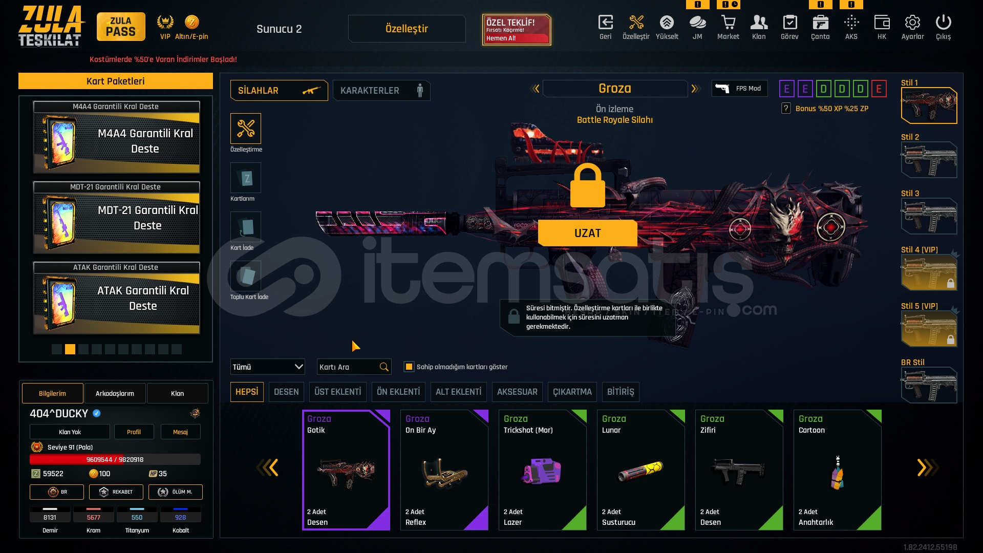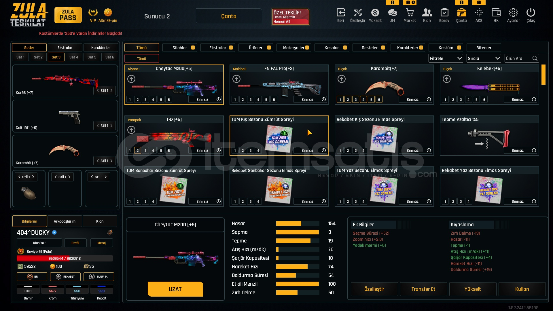 Metalar gördügünüz gibi full + full özelleştirmeli hesap +6 +7 setlerle cok iyi bir hesaptır bu hesap alın ömürlük almayan pişman olur. FİYATA COK ZOR.