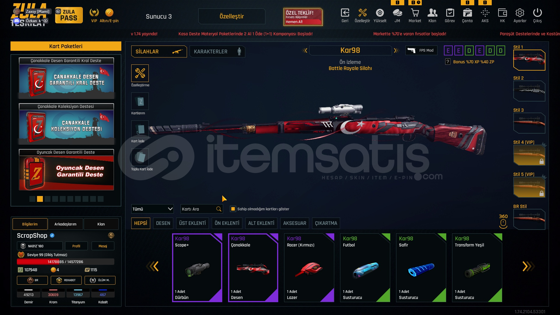 GÖZÜKMEYEN ÖZELLEŞTİRMELER V.S SPREYLER HERŞEY VARDIR KACIRMAYIN DERİM BÖYLE BİR HESAP +7 BASAMASSINIZ TANESİNE HAYIRLI OLSUN ALANA HERŞEY VARDIR 99 LEVELLLL!!! KD NİCE 2.17