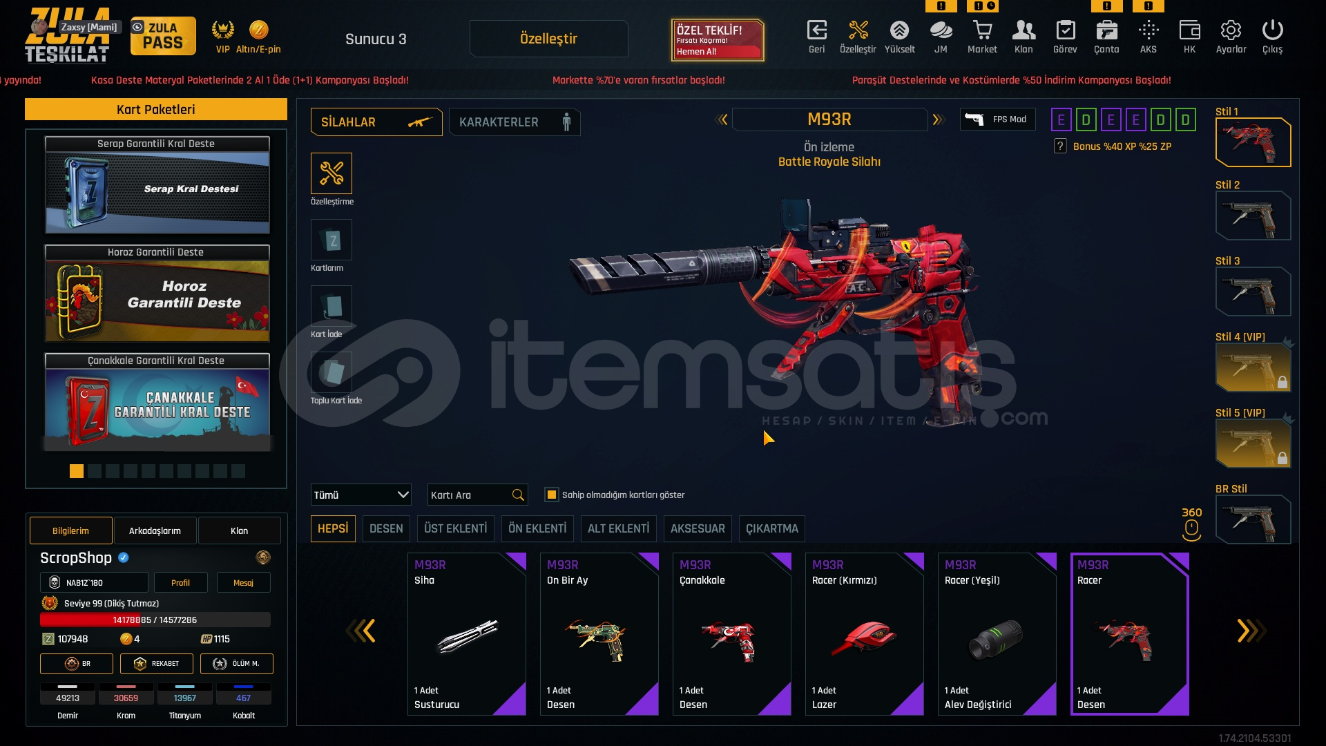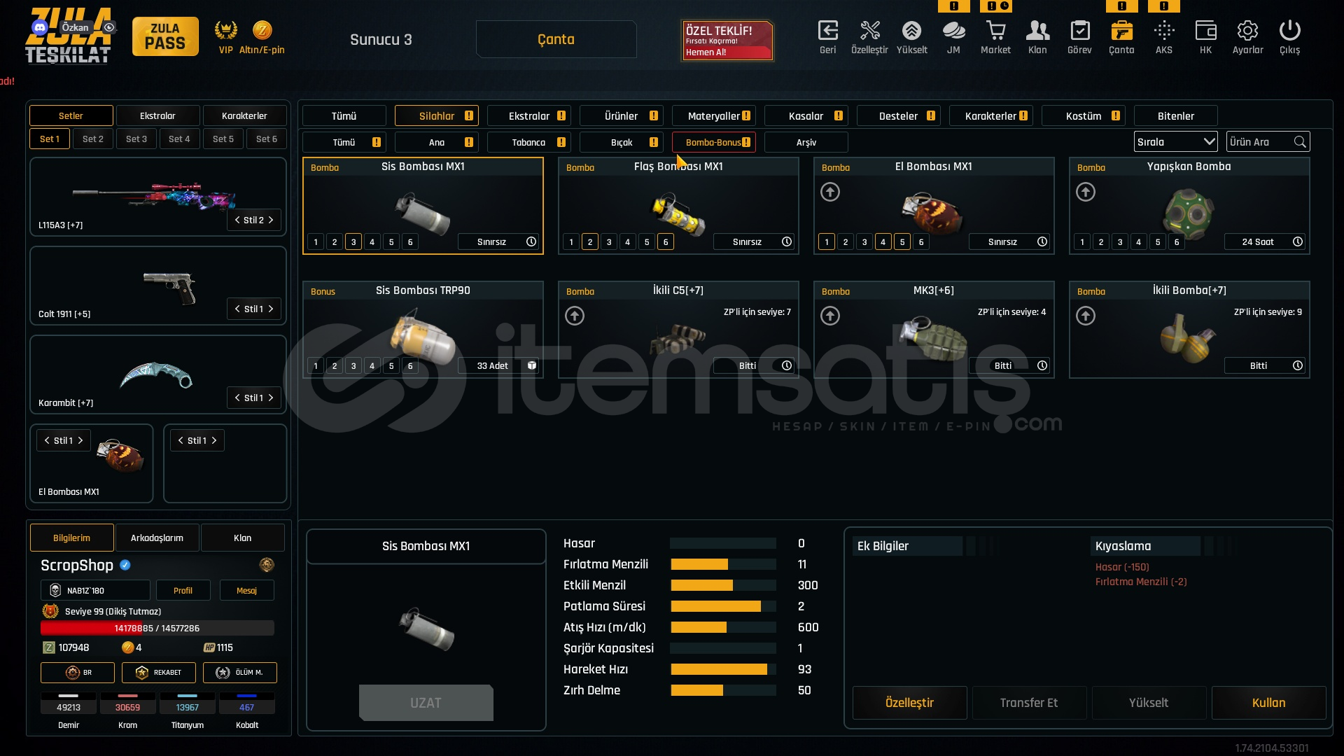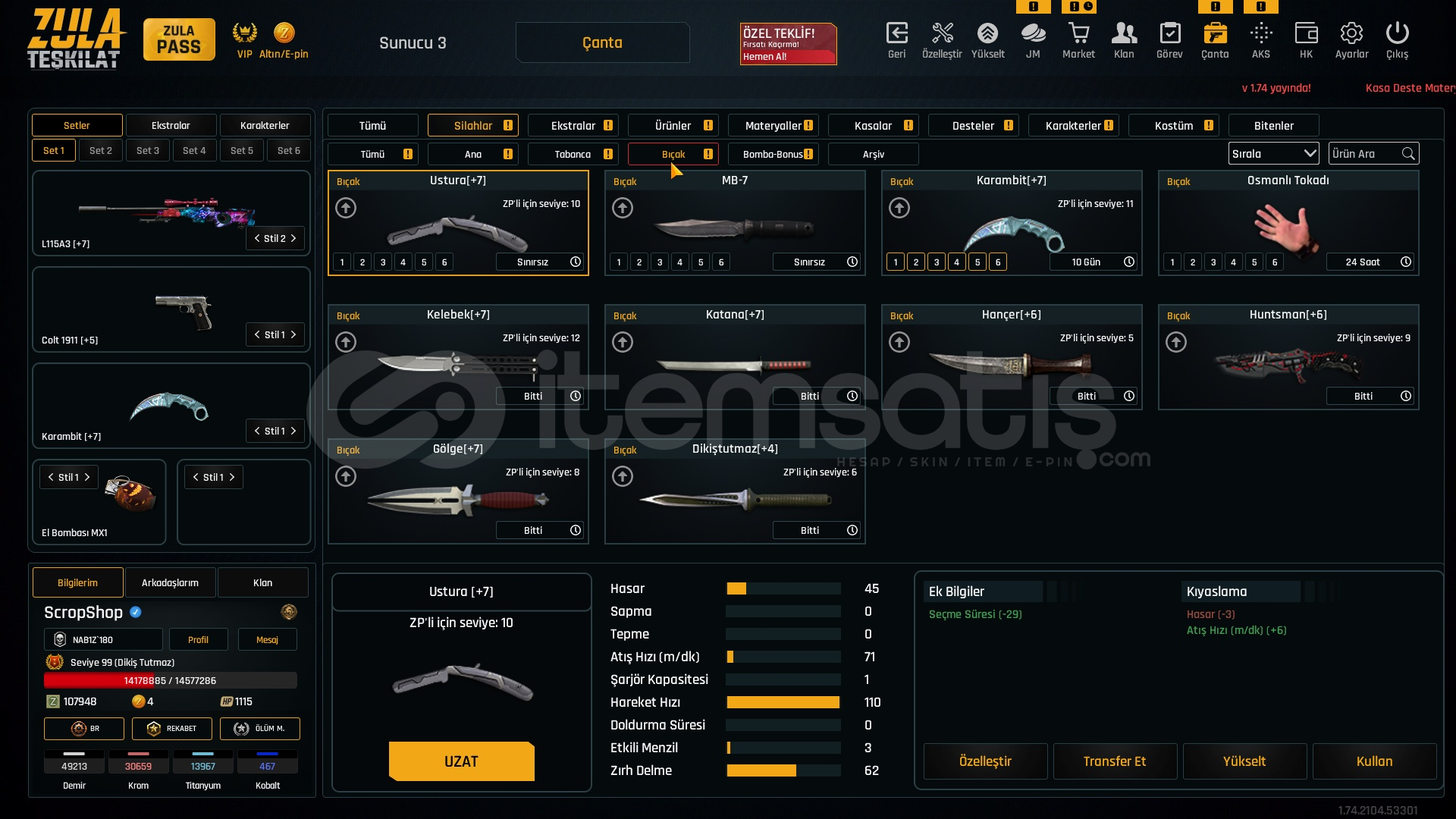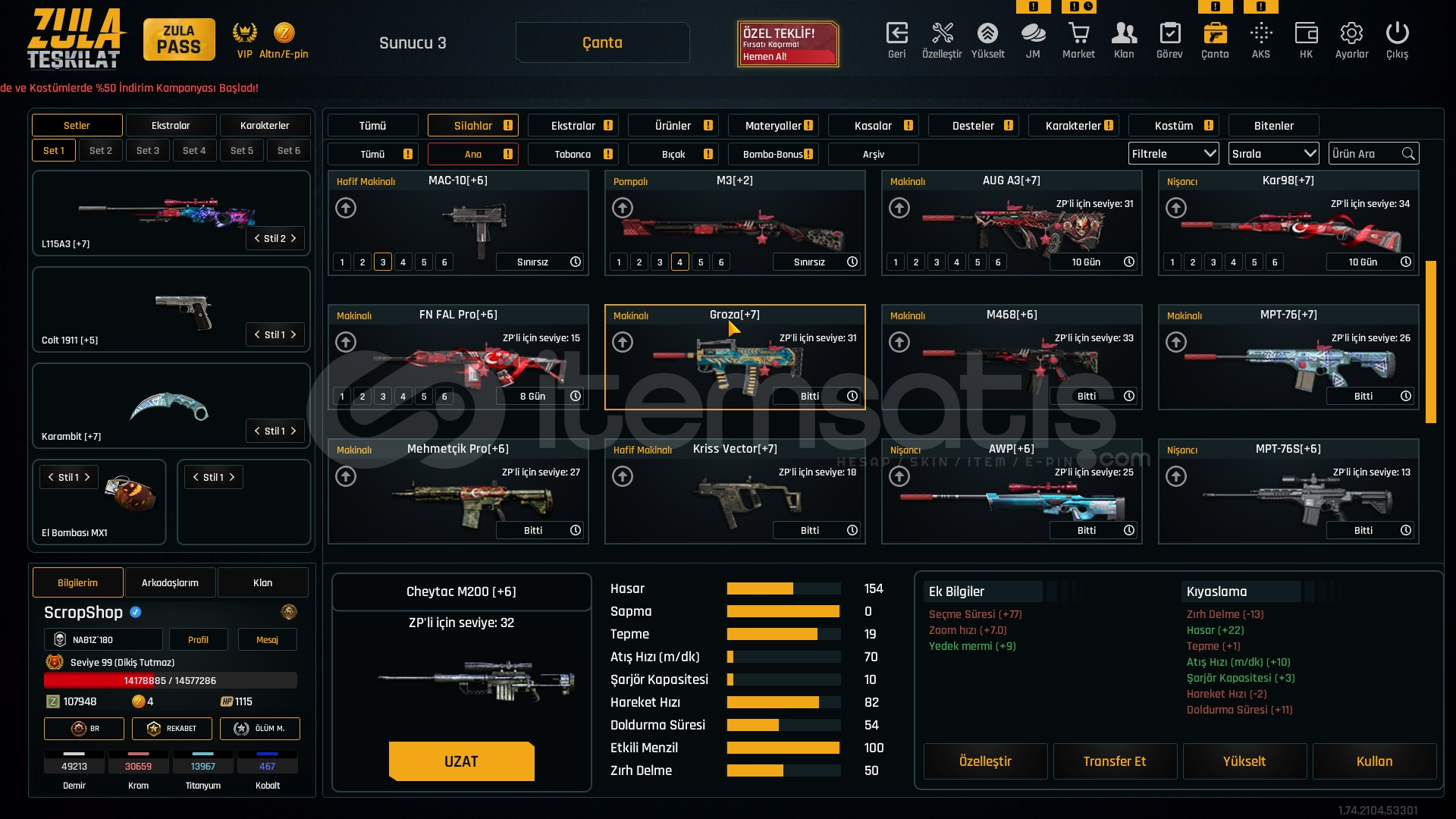 Metalar gördügünüz gibi full + full özelleştirmeli hesap +7 setlerle cok iyi bir hesaptır bu hesap alın ömürlük almayan pişman olur. HERŞEY +7 DİR BU FİYATA COK ZOR.