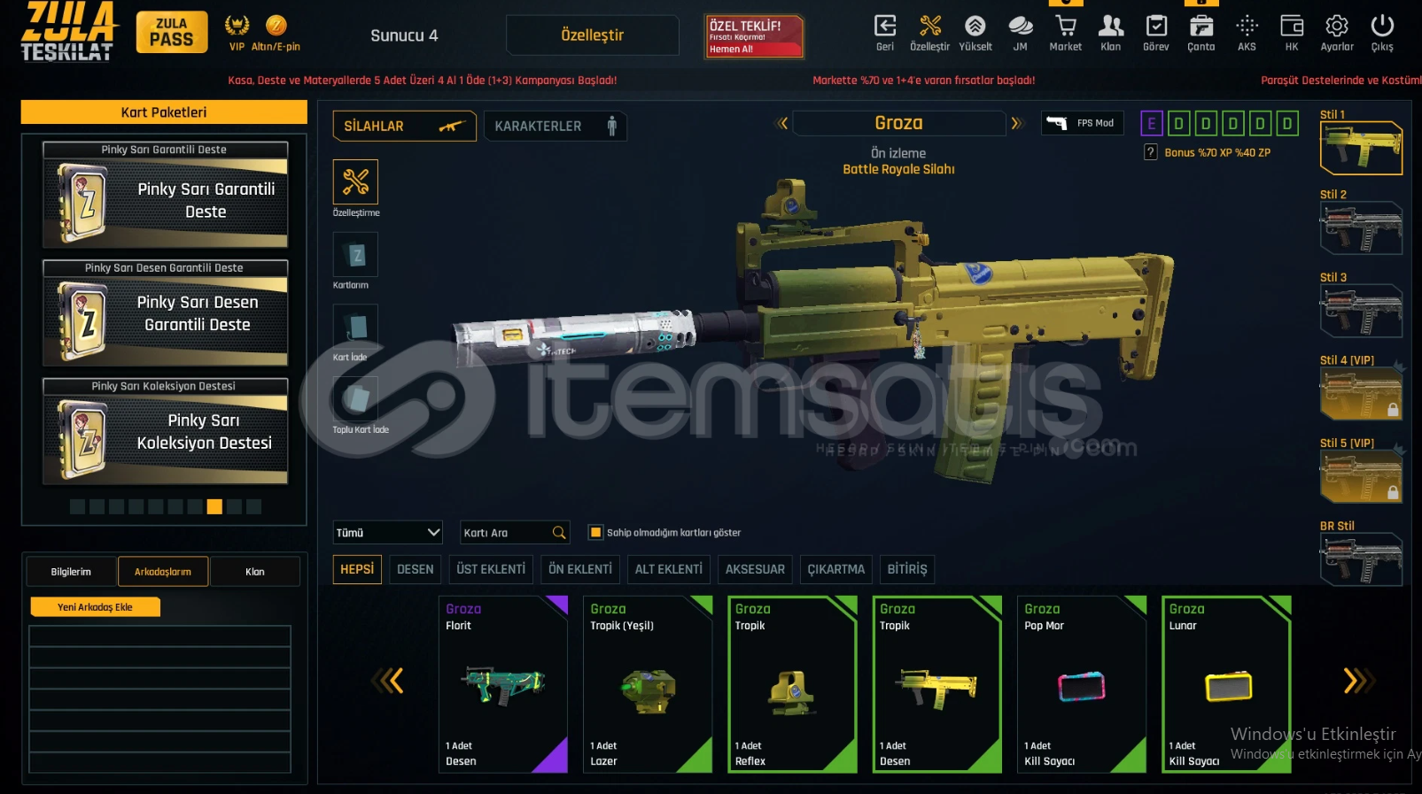 81 LEVEL 135K ZPSINIRSIZ ÇELİK YELEK %10+7 İKİLİ C5+7 USTURA+6 AUG A3+6 TOMMY GUN+6 M4 SUPER 90+6 GROZA+6 TRX+6 DEAGLE+6 GLOCK 18+6 MEHMETÇİK PRO+6 İKİLİ BOMBA+6 KELEBEK+6 P90+5 KARAMBİT+4 M468+4 KAR98TEL EPOSTA SAĞLAM