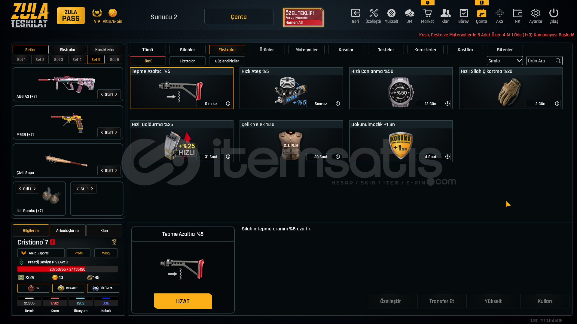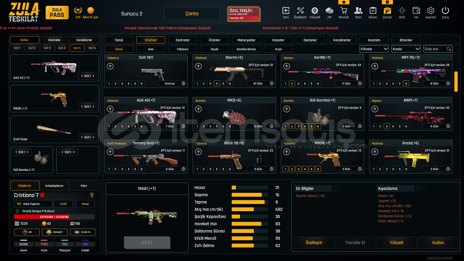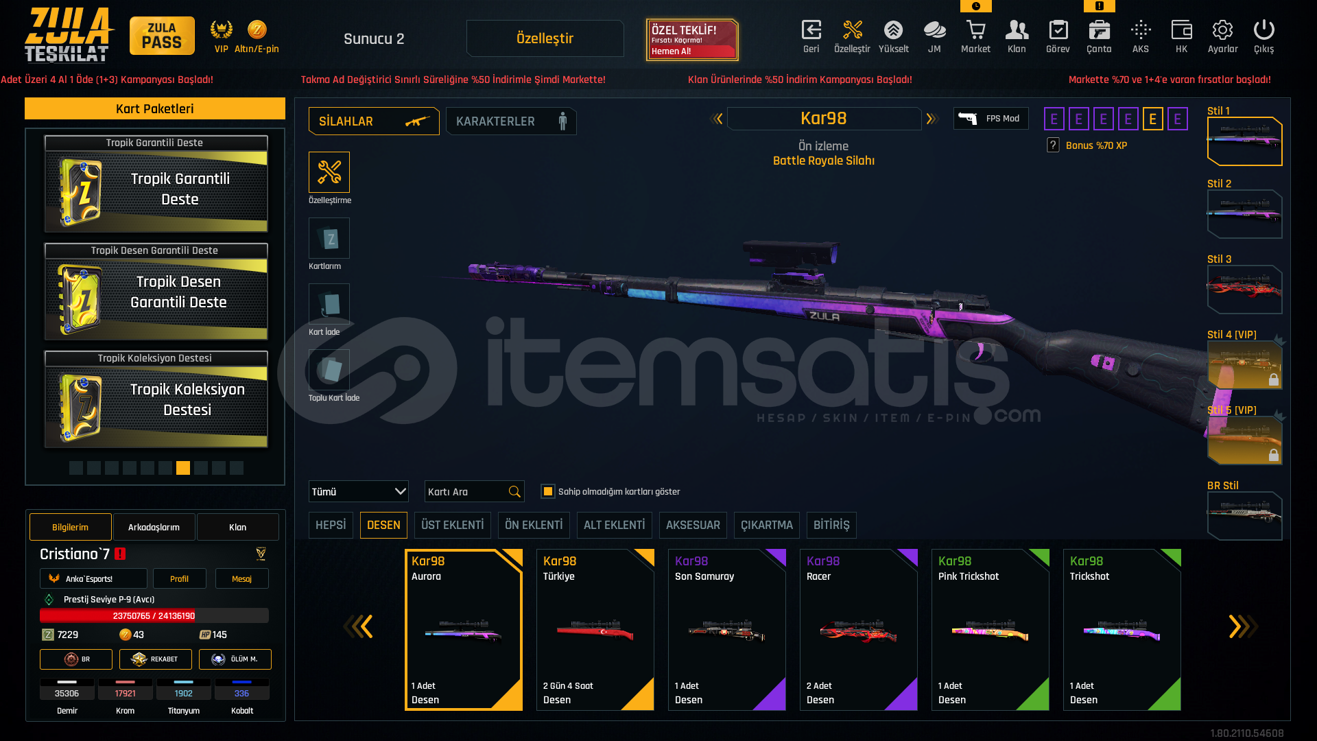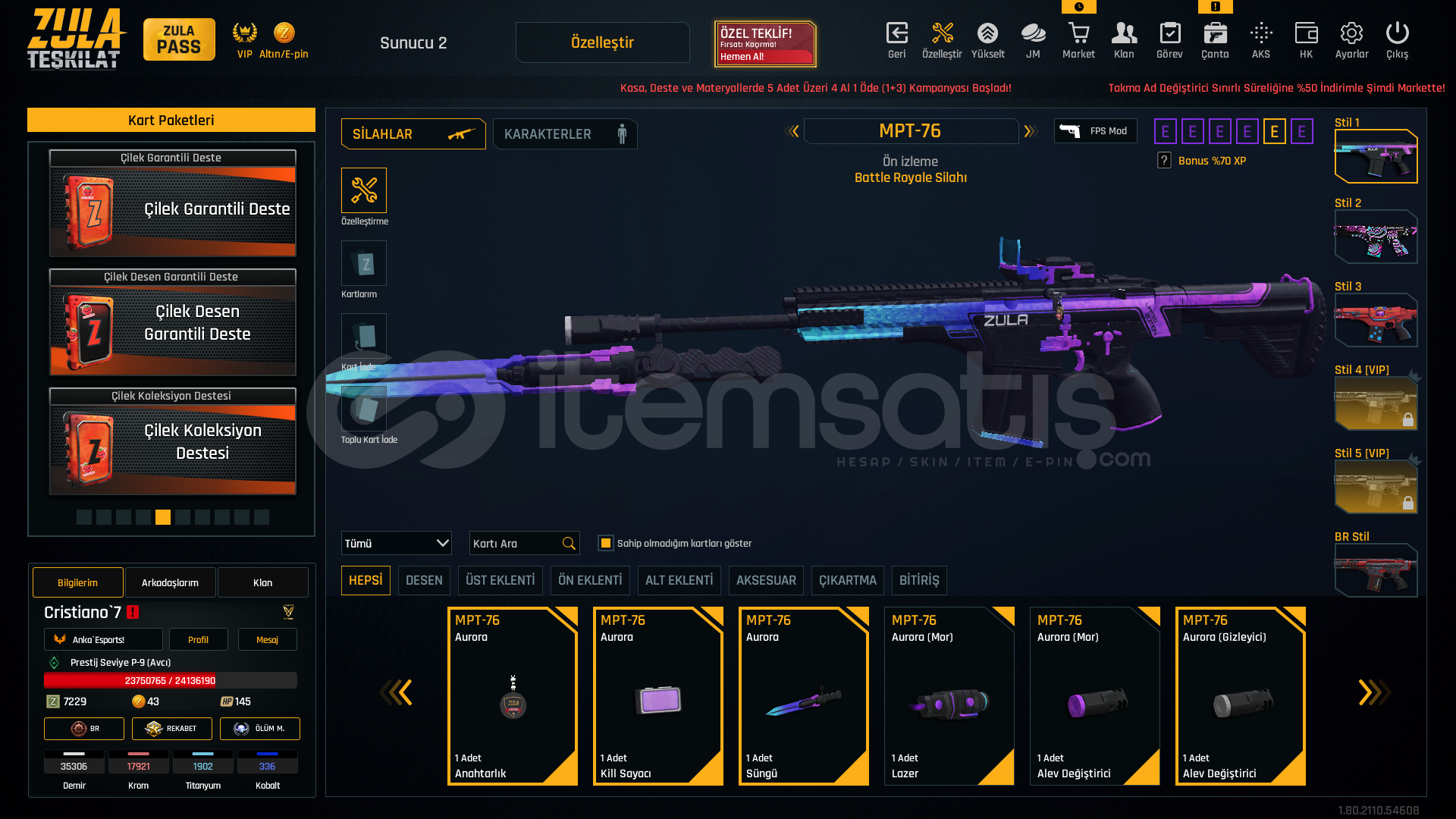 👑 HESAP 109 SEVİYEDİR.👑 BİNLERCE LİRA VE EMEK HARCANMIŞTIR.👑 RANK : USTA🎨 MPT 76 FULL EŞSİZ AURORA SERİSİ🎨 KAR 98 FULL EŞSİZ AURORA SERİSİ🎨 KAR 98 QUANTUM+🎨 RASTGELE SİLAHLARDA 15 ADET QUANTUM+🎨 AUG A3, MPT 76S, FNFAL EŞSİZ SEVGİLİLER GÜNÜ DESENLERİ🎨 50 ADET FARKLI DESTEDEN OLUŞ...