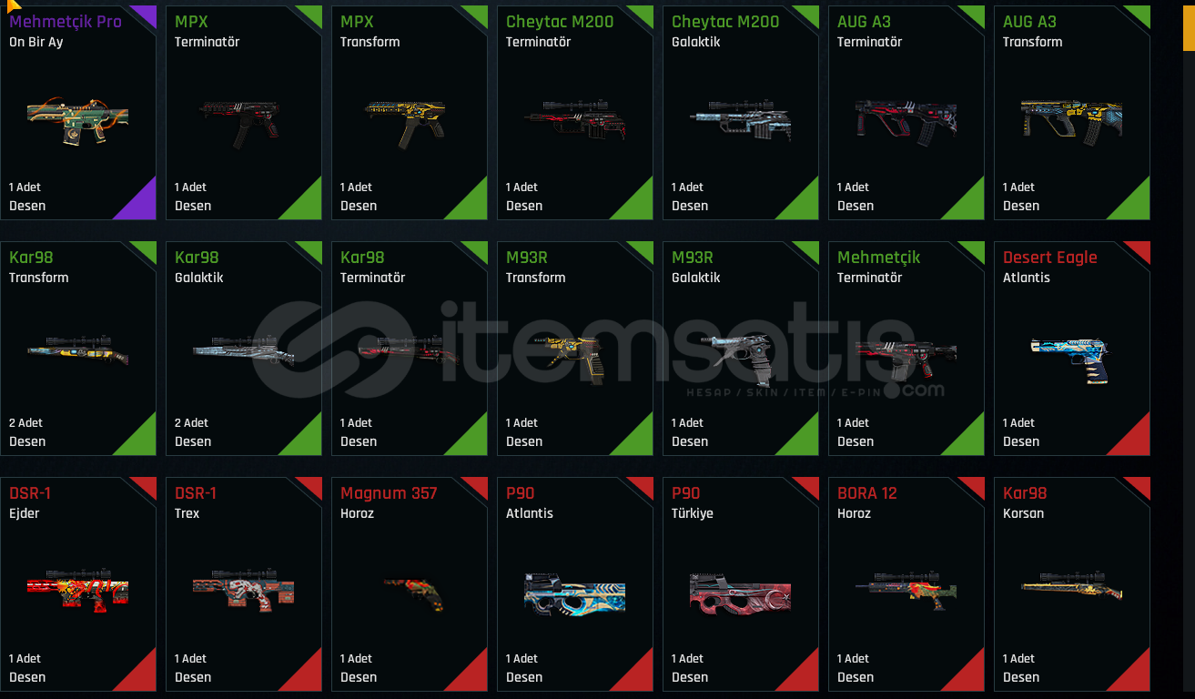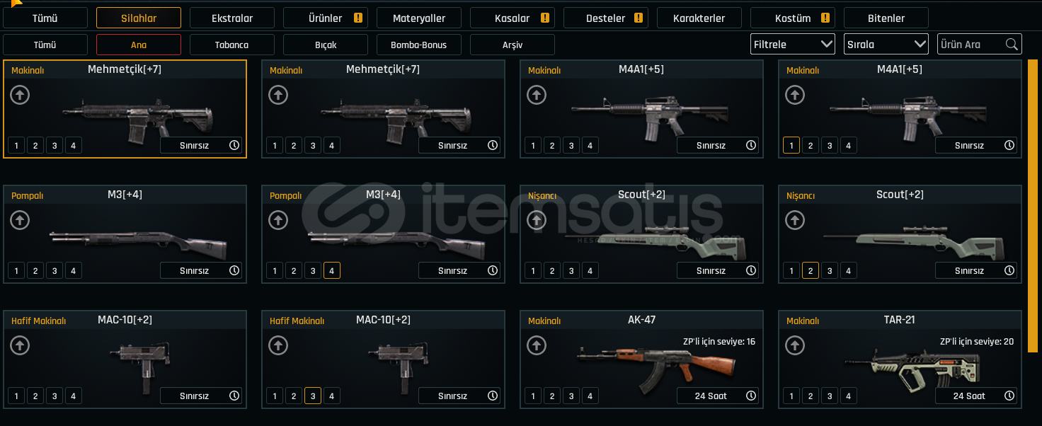 Merhaba, hesaptaki silahların + bilgisi bulunmamaktadır.