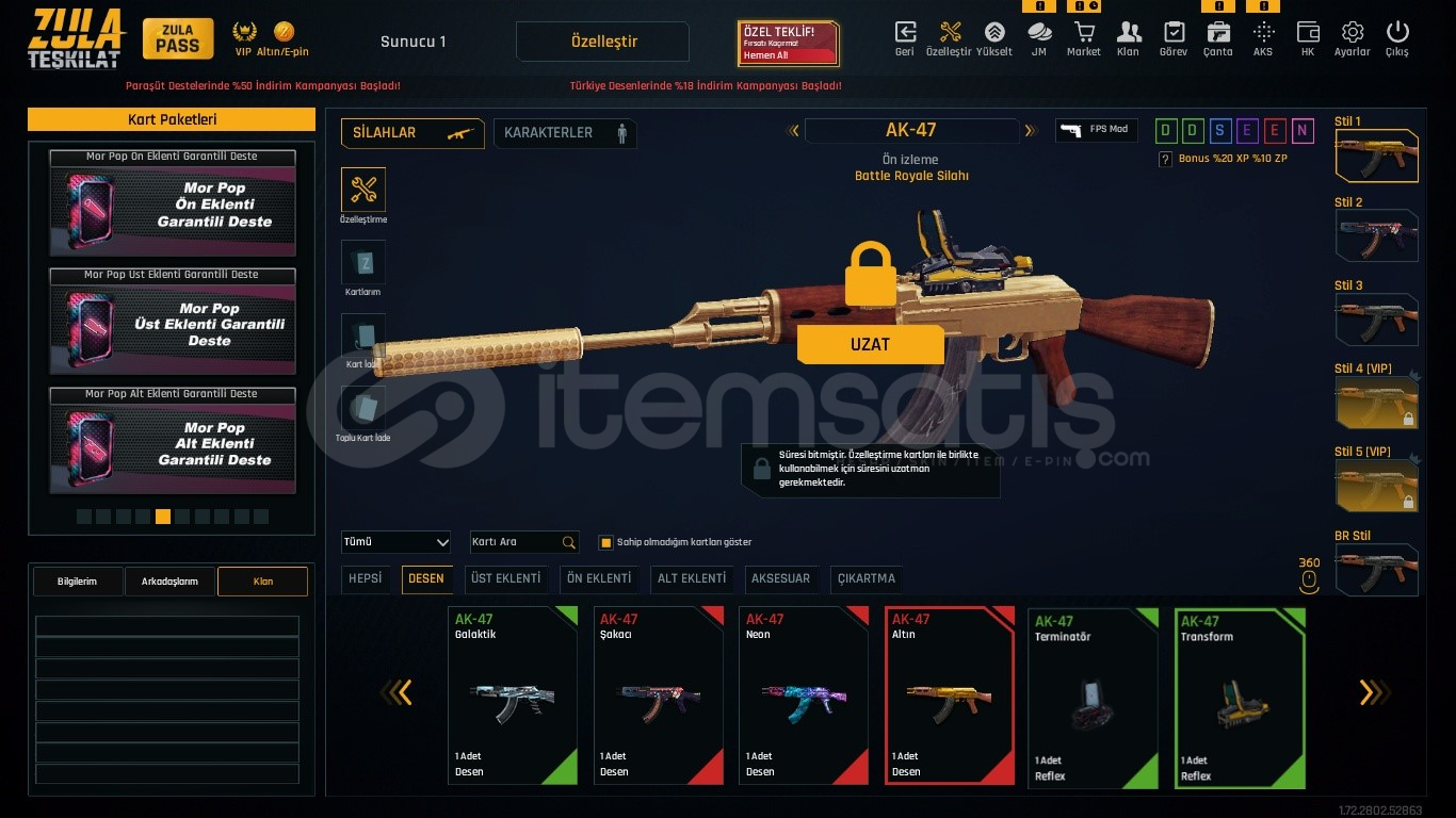43 LEVEL 23.04.2022 KAYITLI 1.50 KD 📌 HESABIN TÜM BİLGİLERİ SİZE DEVREDİLİR, MAİL DEĞİŞİR, TELEFON NUMARASI DEĞİŞİR, ŞİFRE DEĞİŞİR, KULLANICI ADI DEĞİŞİR. *** 📌 M468 MEKATRONİK REFLEX 📌 COLT 1911 QUANTUM+ SUSTURUCU 📌 TERMİNATÖR DESENLER, TRANSFORM DESENLER 📌 GALAKTİK DESENLER, YILDIR...