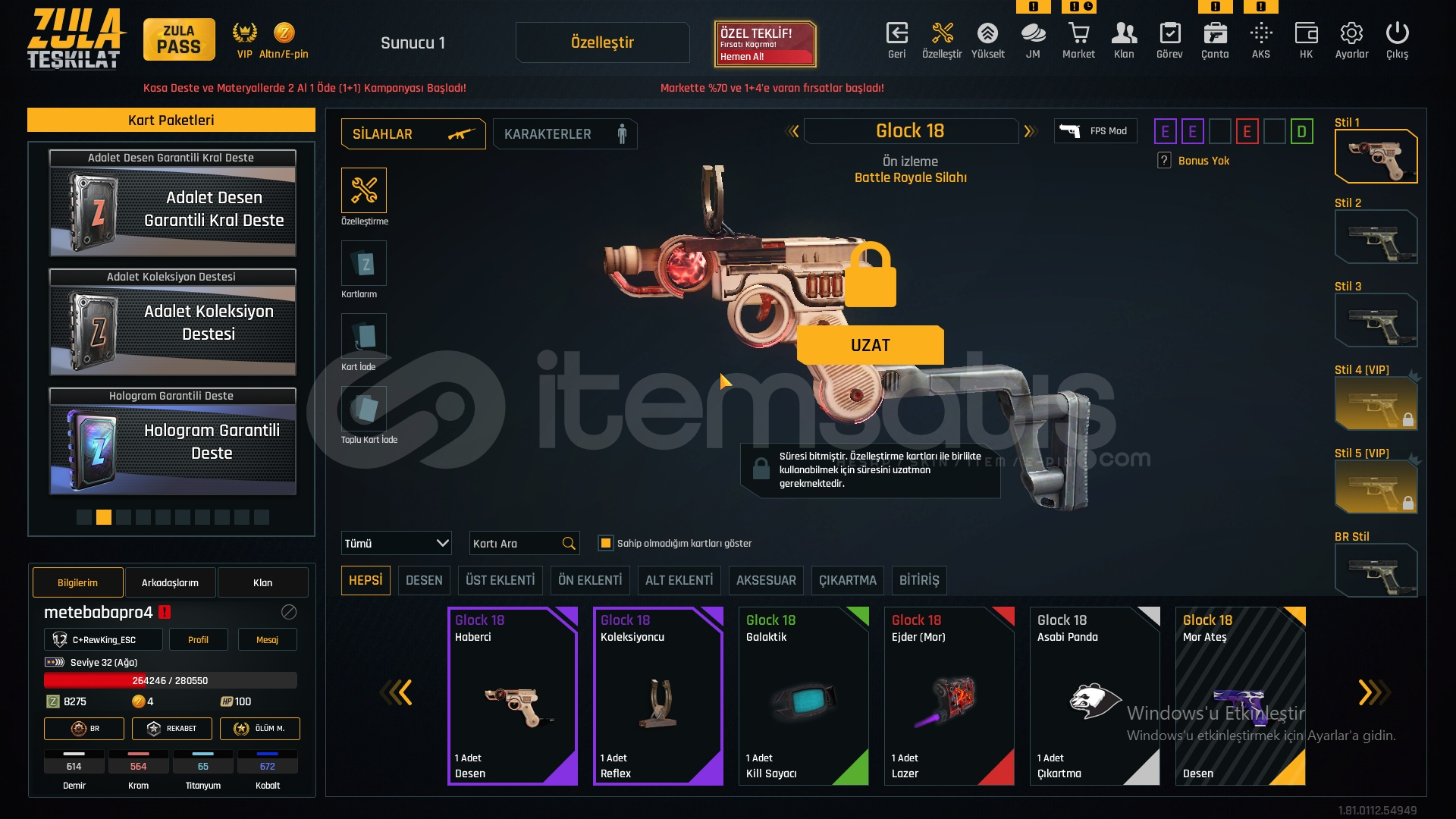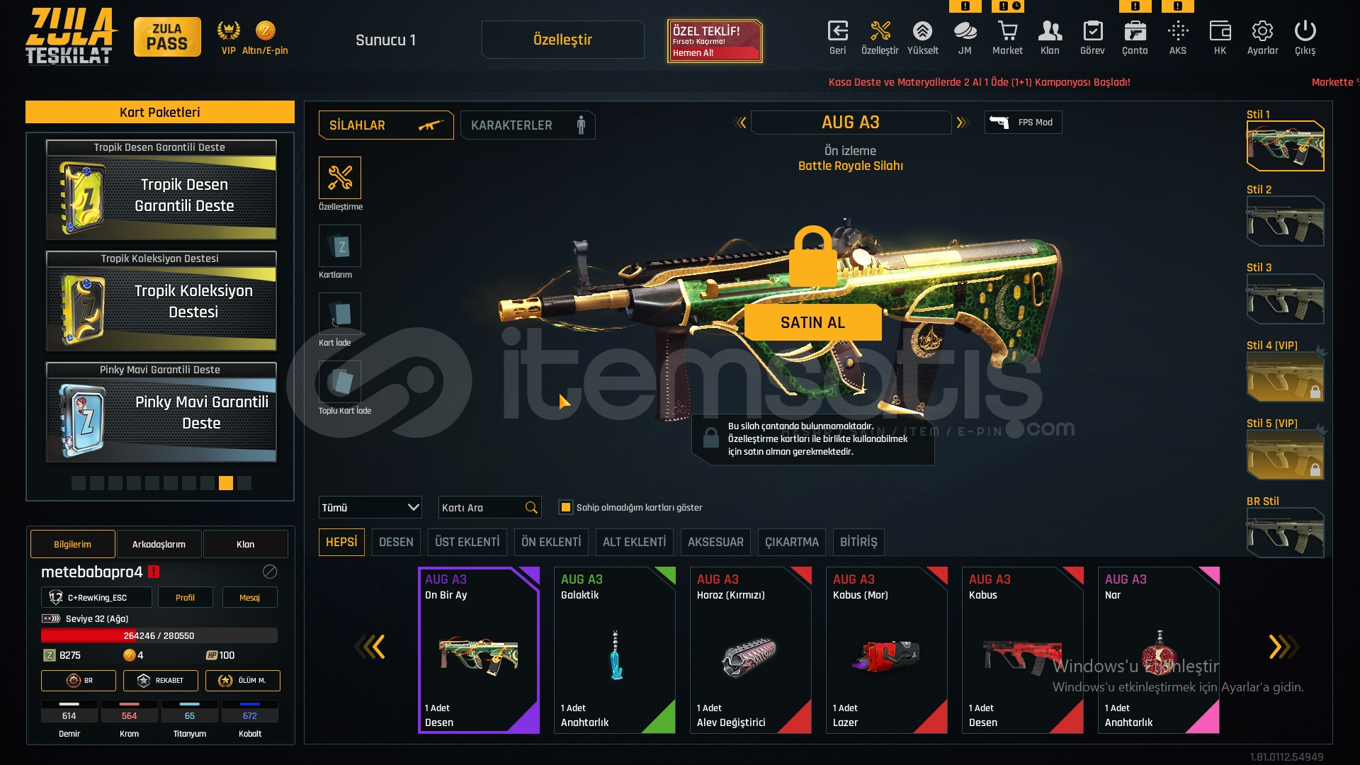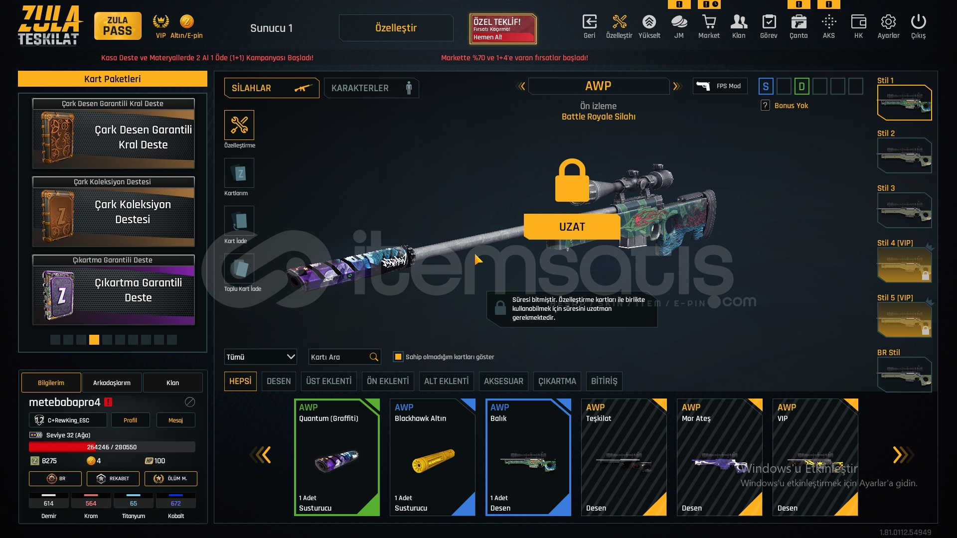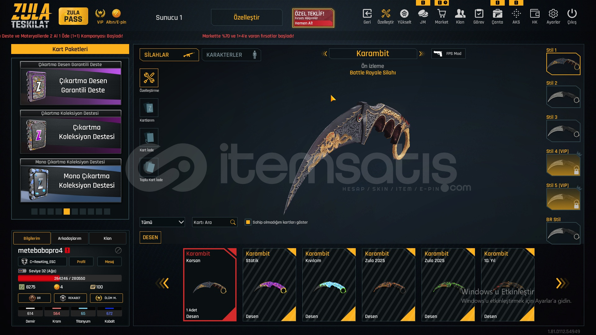 ⭐️BOL ÖZELLEŞTİRMELİ TEL MAİL DEĞİŞEN HESAP⭐️LVL- 32⭐️+6 GROZA⭐️+5 KARAMBİT⭐️+4 L115A3⭐️+2 MPT76⭐️+1 MEHMETÇİK PRO⭐️+1 AWP⭐️+1 KAR98⭐️+1 GLOCK18⭐️+1 M468⭐️MAİLİ DEĞİŞİYOR⭐️TELEFON NUMARA...