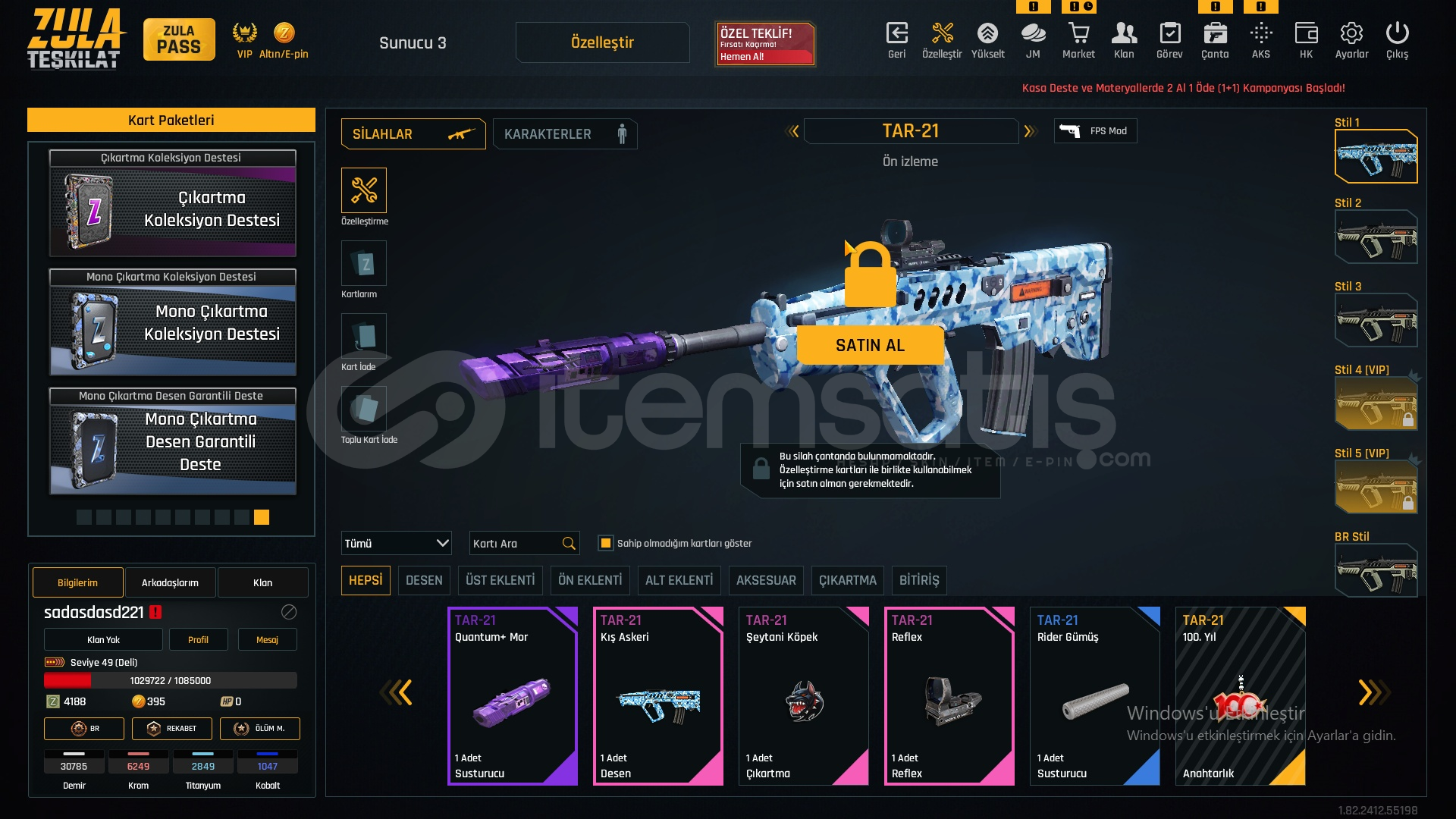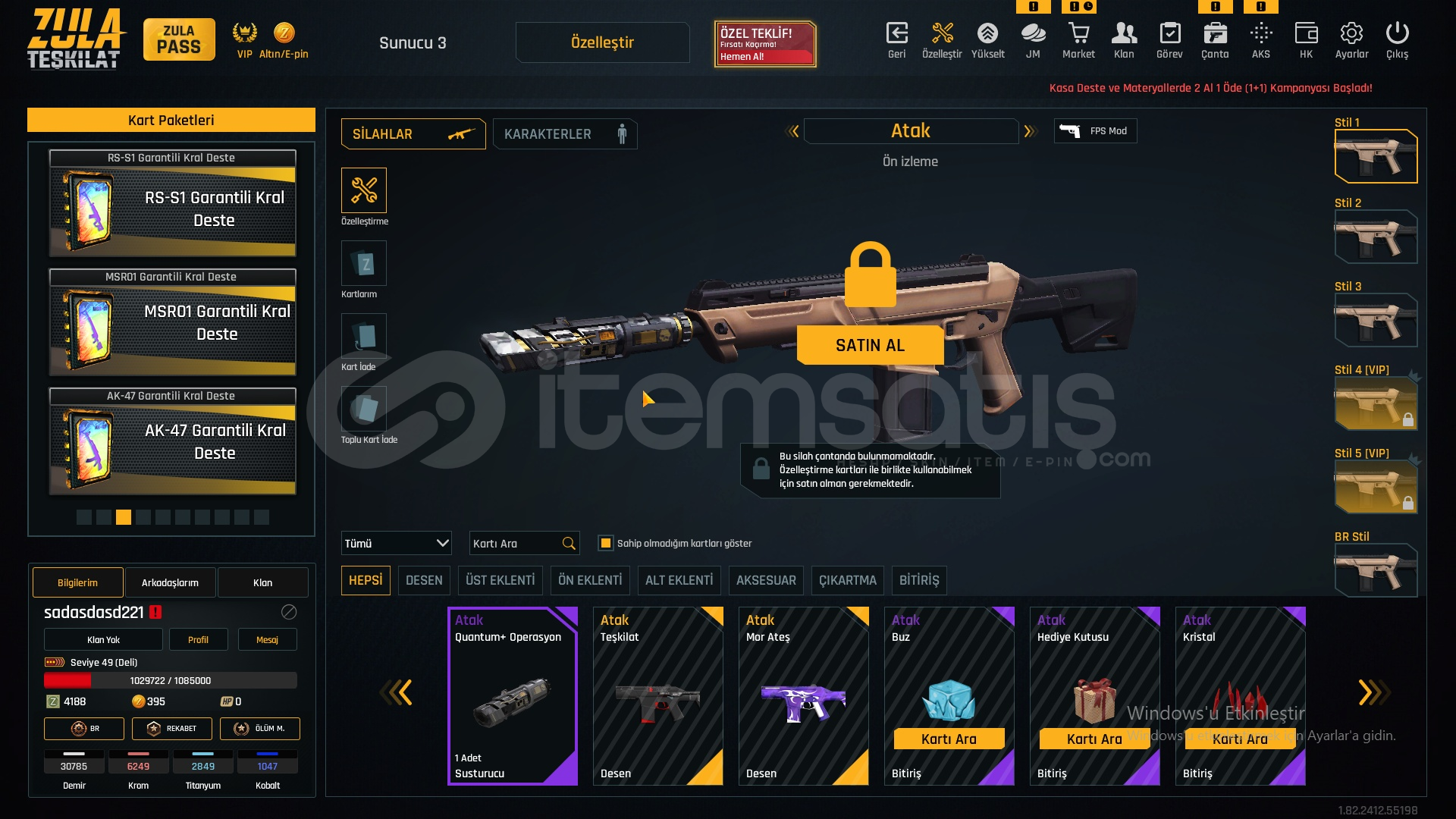⭐️BOL QUANTUM+ LI 40K MATERYALLİ HESAP⭐️LVL - 49⭐️ATAK - ELİT QUANTUM+ SUSTURUCU⭐️M468- ELİT QUANTUM+ SUSTURUCU⭐️TAR21- ELİT QUANTUM+ SUSTURUCU⭐️PP2000 - ELİT QUANTUM+ SUSTURUCU⭐️HESAPTA FAZLA ARTI YOKTUR AMA BOLCA MATERYAL VARDIR İSTEDİĞİNİZ SİLAHLARI YÜKSELTEB...