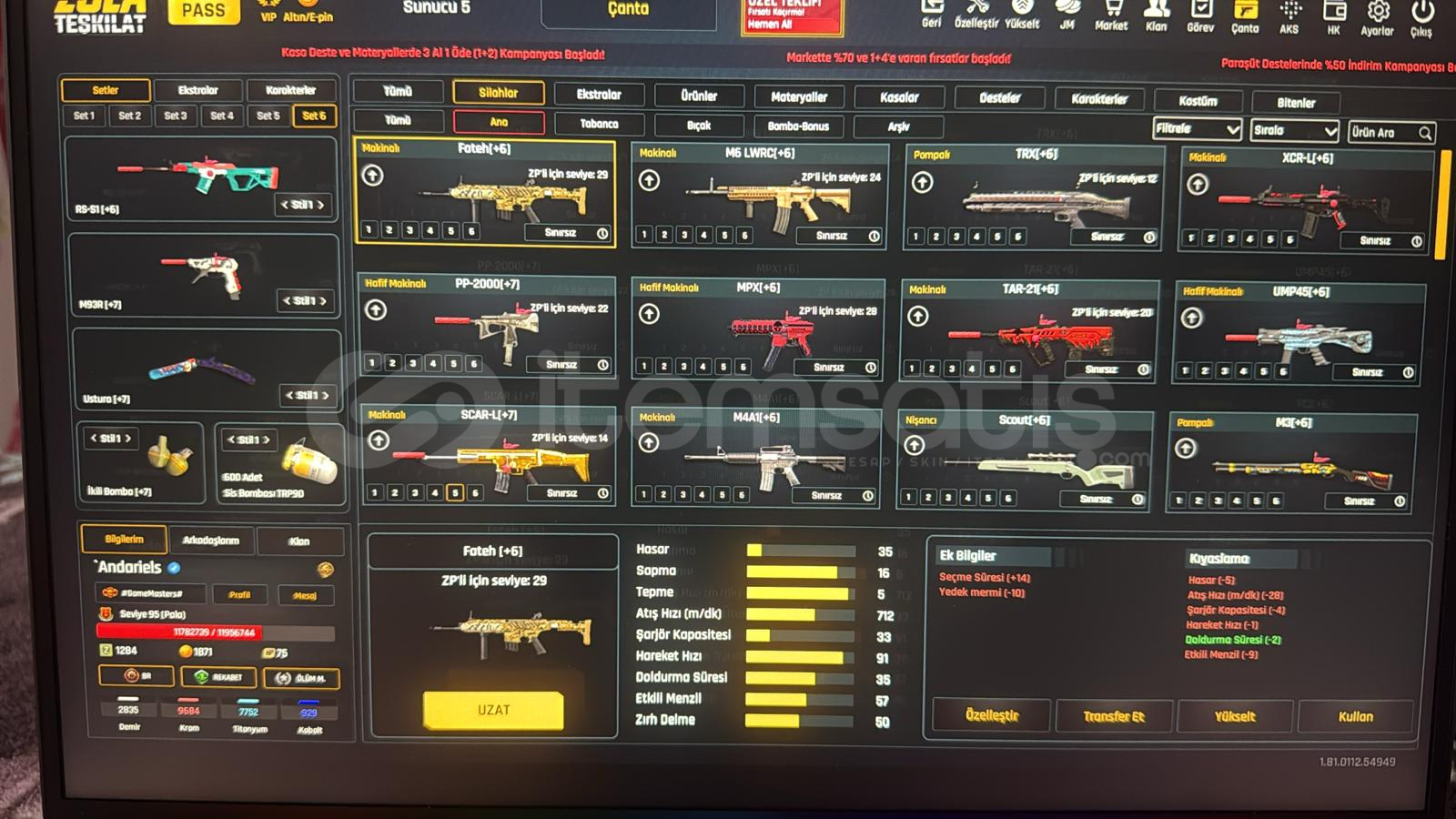 👑 HESAP 95 SEVİYEDİR.👑 BİNLERCE LİRA VE EMEK HARCANMIŞTIR.👑 RANK : ZÜMRÜT🎨 CHEYTAC M200 ZWC 2018 DESEN!!!!🎨 AWP 2019 DESEN!!!🎨 M6 LWRC 2019 DESEN!!!🎨 BORA 12 2019 DESEN!!!🎨 MPT-76 SEVGİLİLER GÜNÜ DESEN🎨 AWP SEVGİLİLER GÜNÜ DESEN🎨 M468 SEVGİLİLER GÜNÜ DESEN🎨 KAR98 SEVGİLİLER GÜNÜ DESEN🎨 AU...