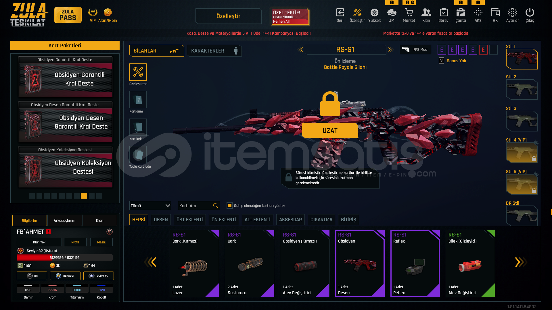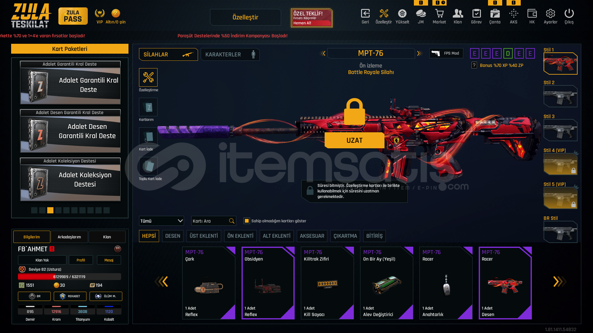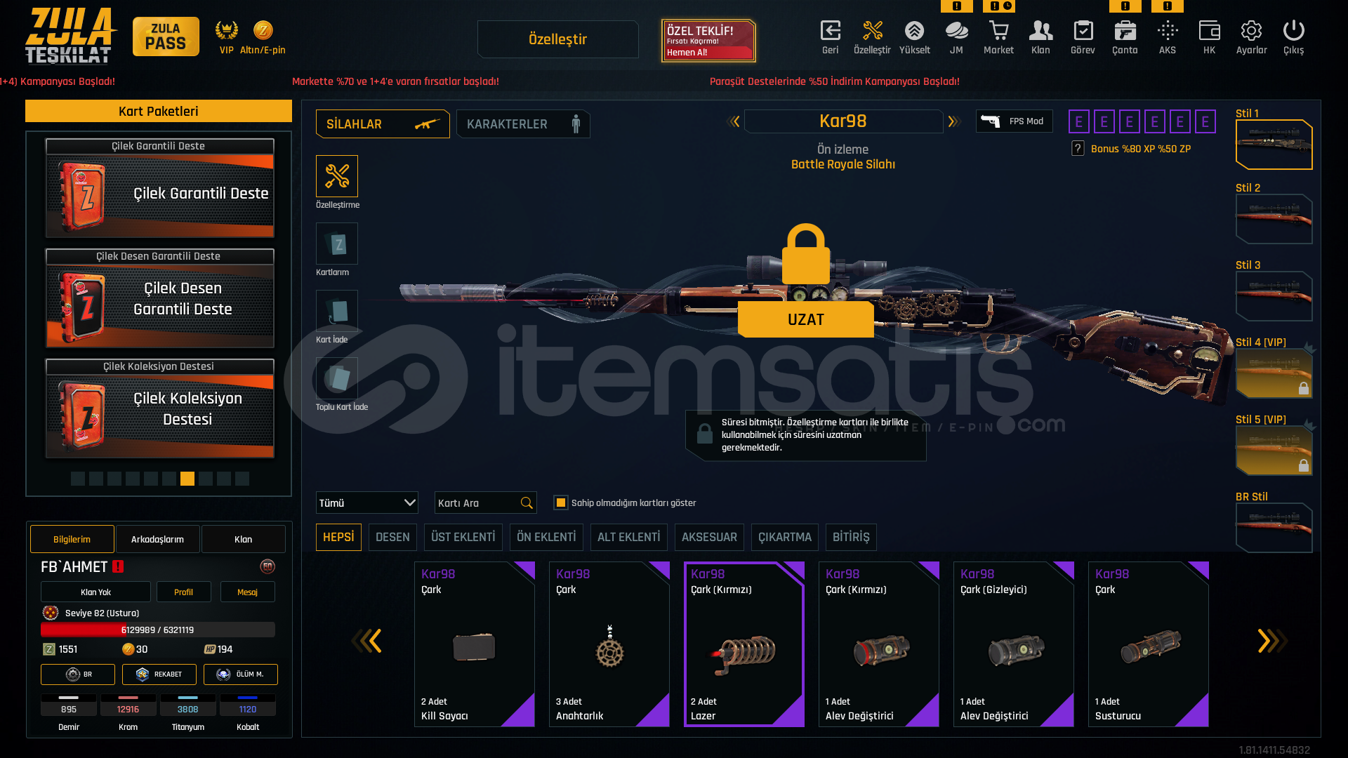 👑 HESAP 82 SEVİYEDİR.👑 RANK : ELİT🎨 KAR98 ÇARK FULL SET🎨 AK-47 ÇARK FULL SET🎨 RS-S1 REFLEX+ VE OBSİDEN DESEN🎨 RACER DESENLER🎨 8BİT DESENLER🎨 ÇARK DESENLER🎨 OBSİDYEN DESENLER🎨 ARK DESENLER🎨 SON SAMURAY DESENLER🎨 EL PATRON, RECEP ARSLAN, CUMALİ KOÇOVALIDA GEÇERLİ EŞ...