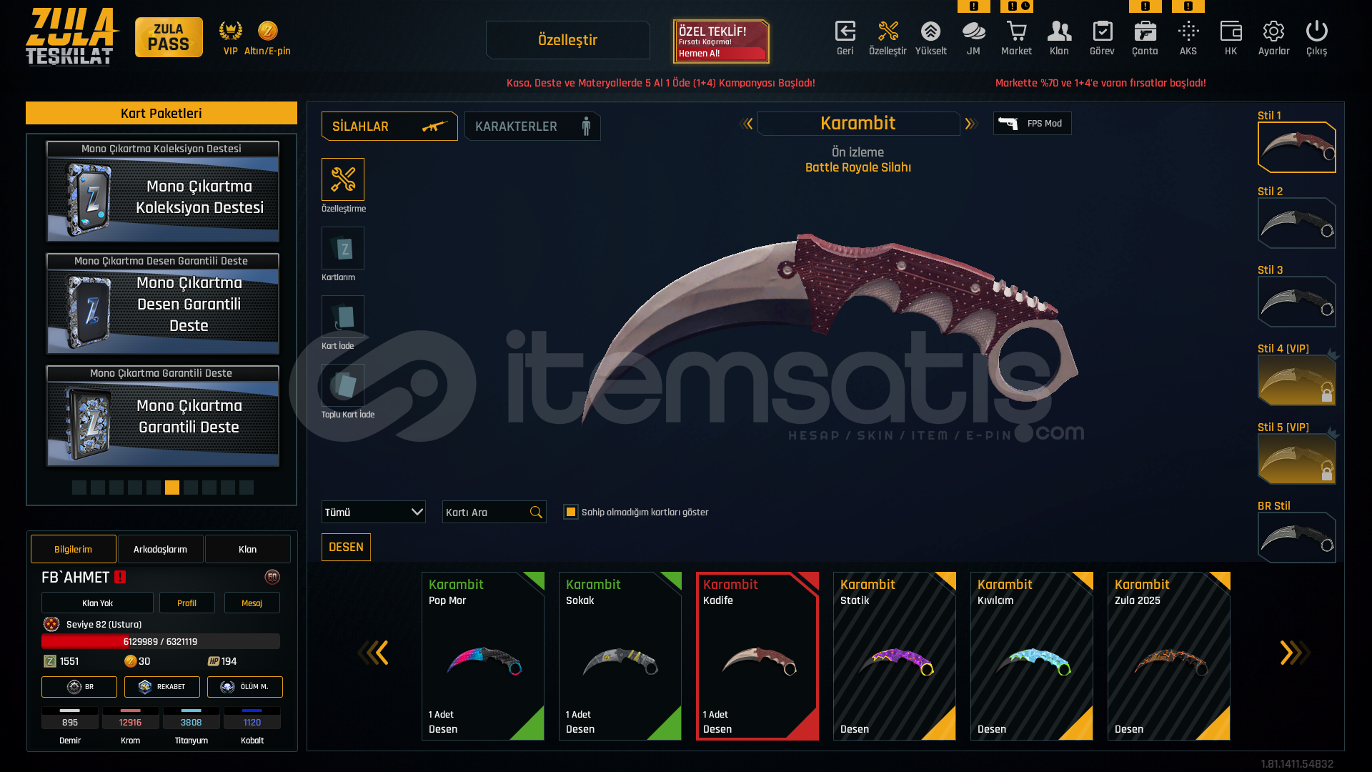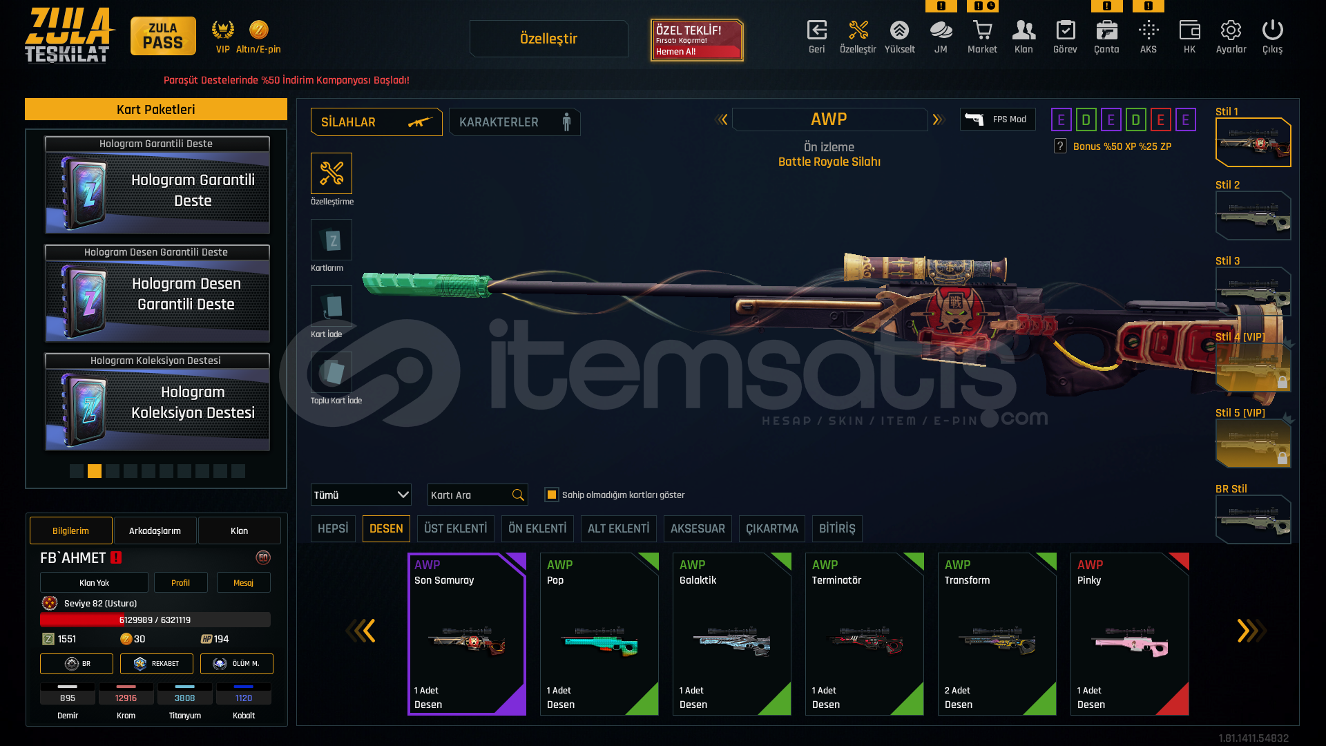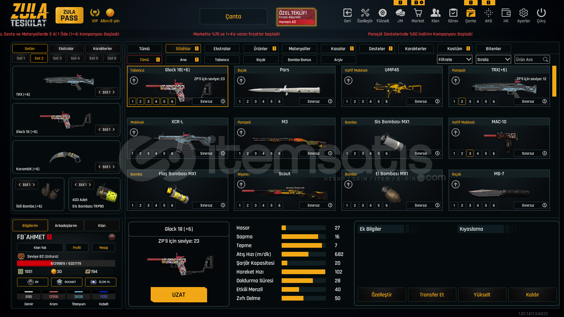👑 HESAP 82 SEVİYEDİR.👑 RANK : ELİT🎨 KAR98 ÇARK FULL SET🎨 AK-47 ÇARK FULL SET🎨 RS-S1 REFLEX+ VE OBSİDEN DESEN🎨 RACER DESENLER🎨 8BİT DESENLER🎨 ÇARK DESENLER🎨 OBSİDYEN DESENLER🎨 ARK DESENLER🎨 SON SAMURAY DESENLER🎨 EL PATRON, RECEP ARSLAN, CUMALİ KOÇOVALIDA GEÇERLİ EŞ...
