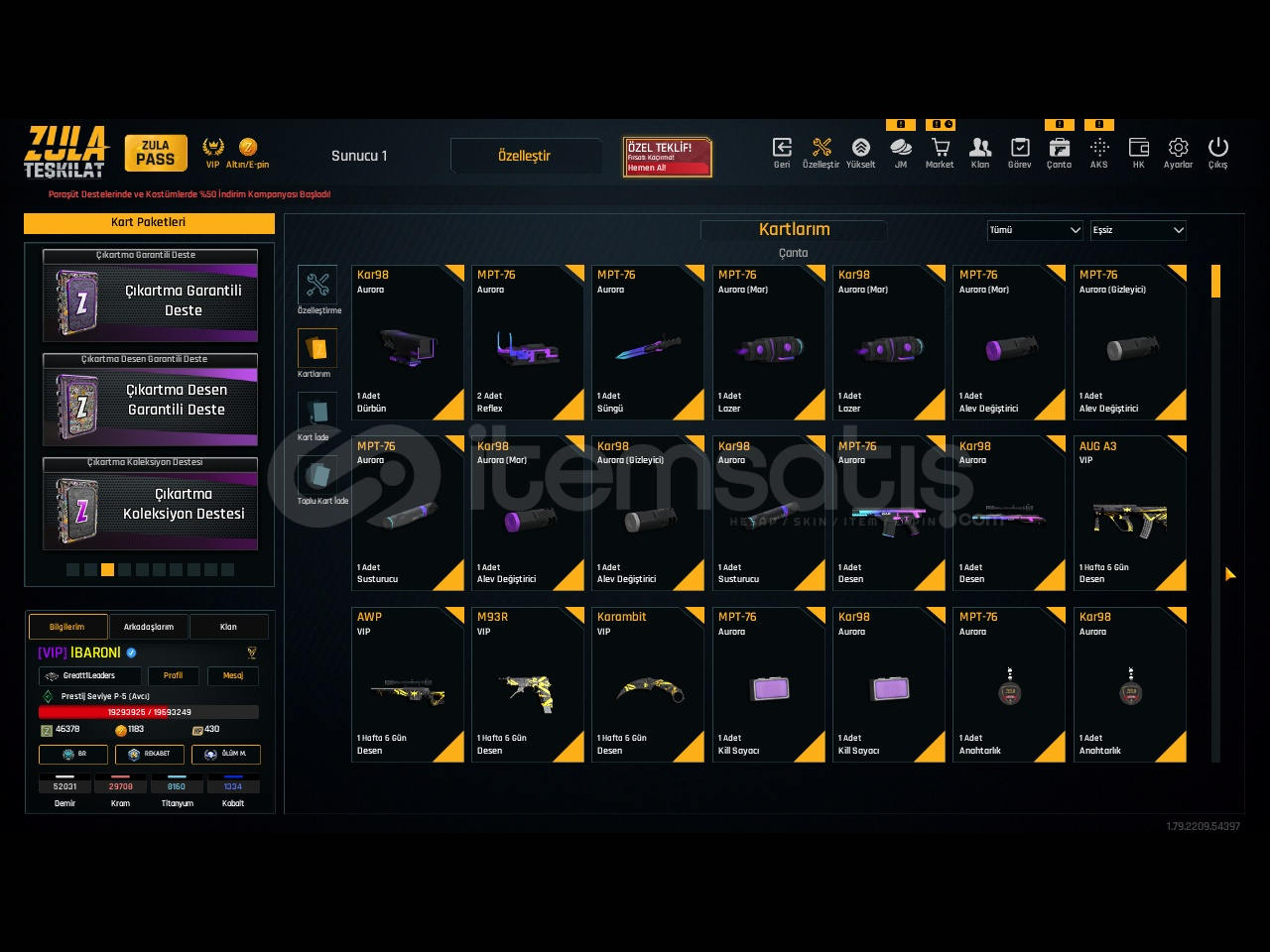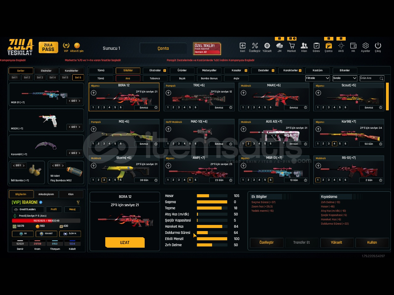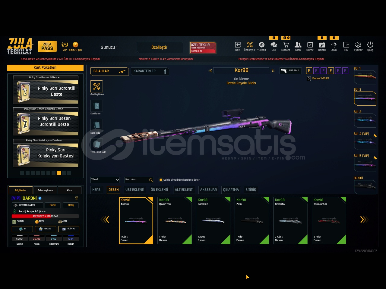 BR ŞAMP RANKP-05 LEVELÖZELLEŞTİRME DELİSİKAR98 EŞŞİZ AURORA TAM SETMPT76 EŞŞİZ AURORA TAM SET RS S1 QUANTUM PLUS KAR98 QUANTUM PLUSSINIRSIZ BORA12SINIRSIZ TRXSINIRSIZ DESERT EAGLESINIRSIZ KELEBEKSİS FLAŞ VE MK3 DE SKİN MEVCUTTUR+7 AUG A3+7 MPT76+7 RS S1+7 ATAK+7 STORM+7 L115A3+7 AWP+7 KAR98+7 MSR 01YENİ NESİL ELİT DESENLER ZİFİRİ DESENLER HEPSİ MEVCUTTUR ÖZELLEŞTİRME DEL&#...