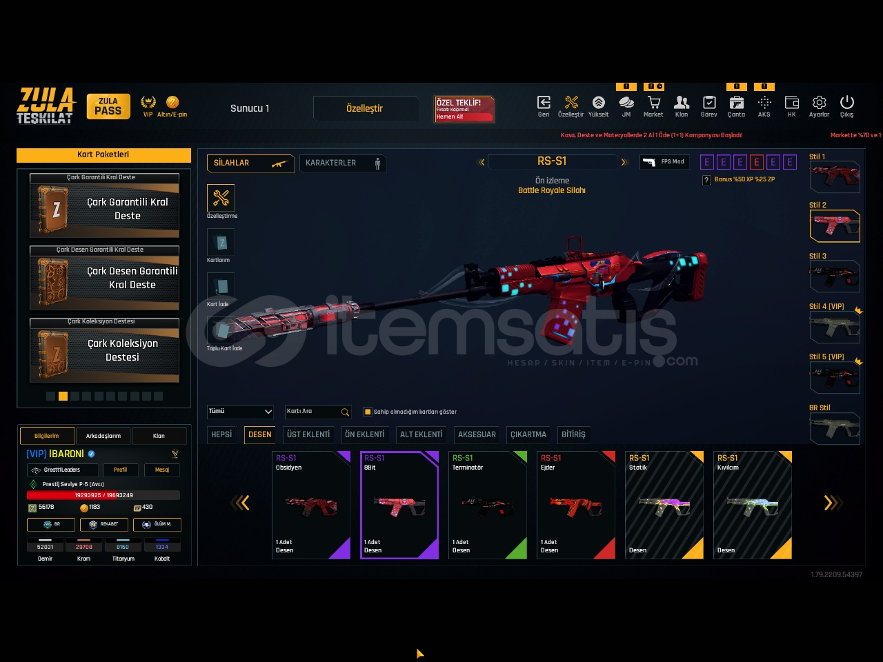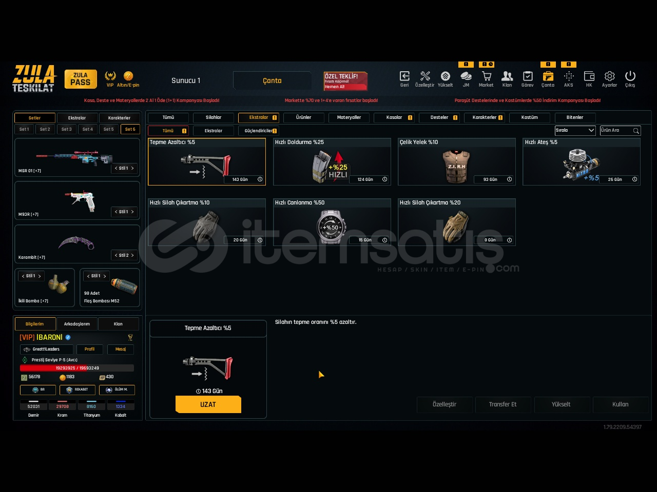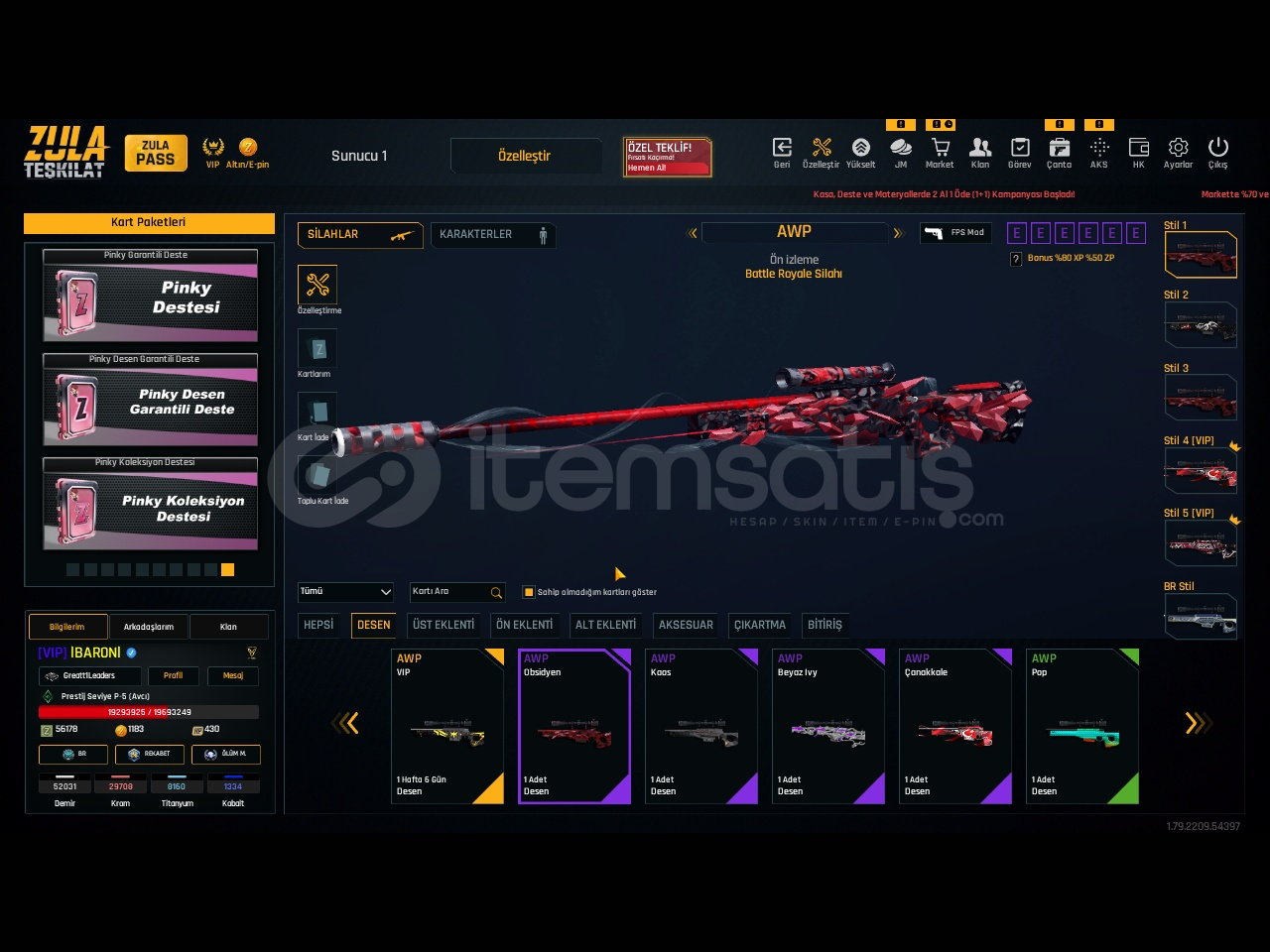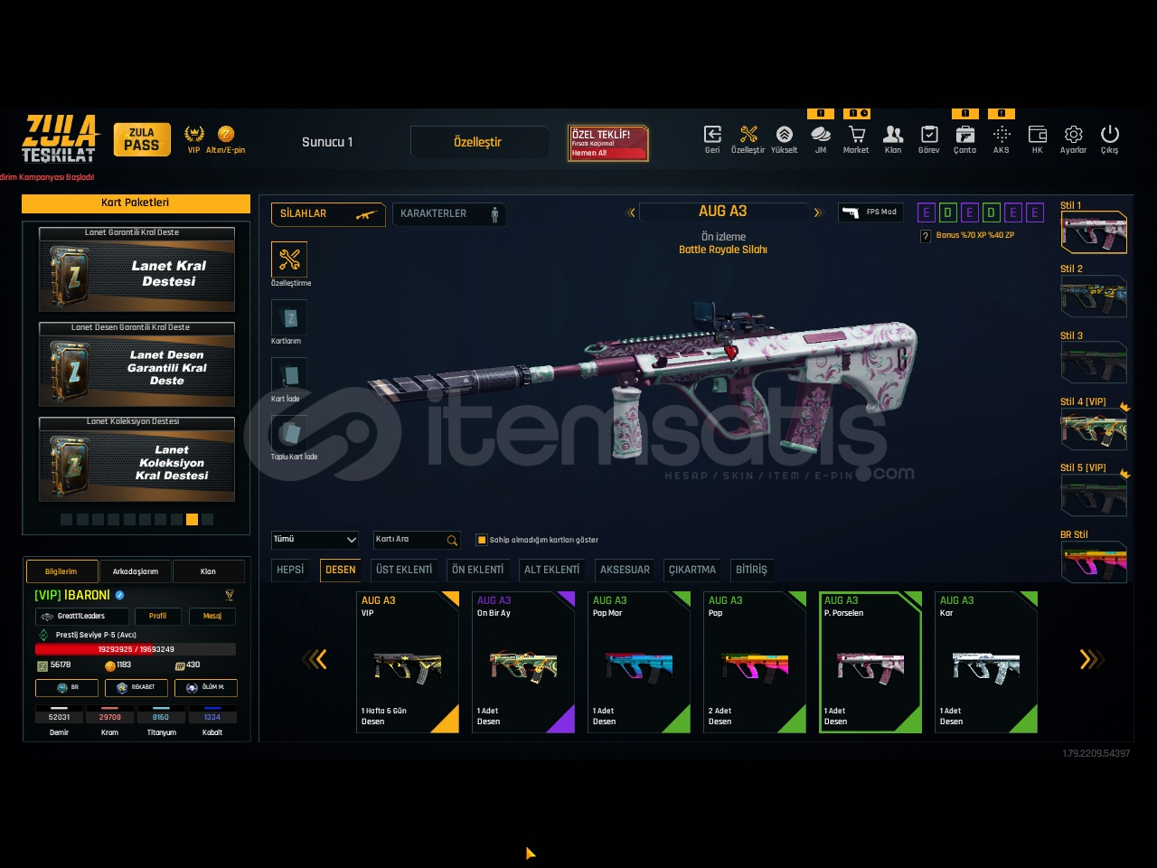 BR ŞAMP RANKP-05 LEVELÖZELLEŞTİRME DELİSİKAR98 EŞŞİZ AURORA TAM SETMPT76 EŞŞİZ AURORA TAM SET RS S1 QUANTUM PLUS KAR98 QUANTUM PLUSSINIRSIZ BORA12SINIRSIZ TRXSINIRSIZ DESERT EAGLESINIRSIZ KELEBEKSİS FLAŞ VE MK3 DE SKİN MEVCUTTUR+7 AUG A3+7 MPT76+7 RS S1+7 ATAK+7 STORM+7 L115A3+7 AWP+7 KAR98+7 MSR 01YENİ NESİL ELİT DESENLER ZİFİRİ DESENLER HEPSİ MEVCUTTUR ÖZELLEŞTİRME DEL&#...