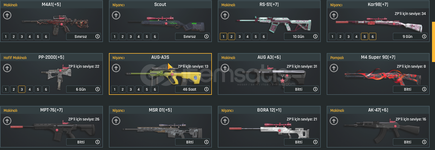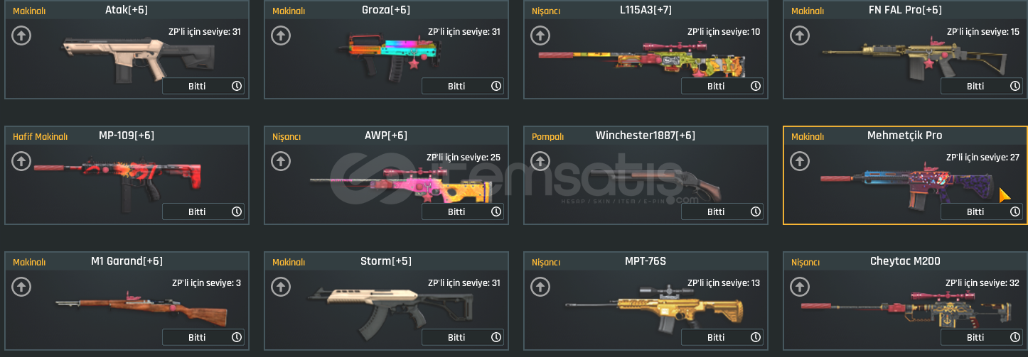 DİĞER AKLINIZA GELECEK SİLAHLARIN HEPSİ +6 VEYA +5 DİR.