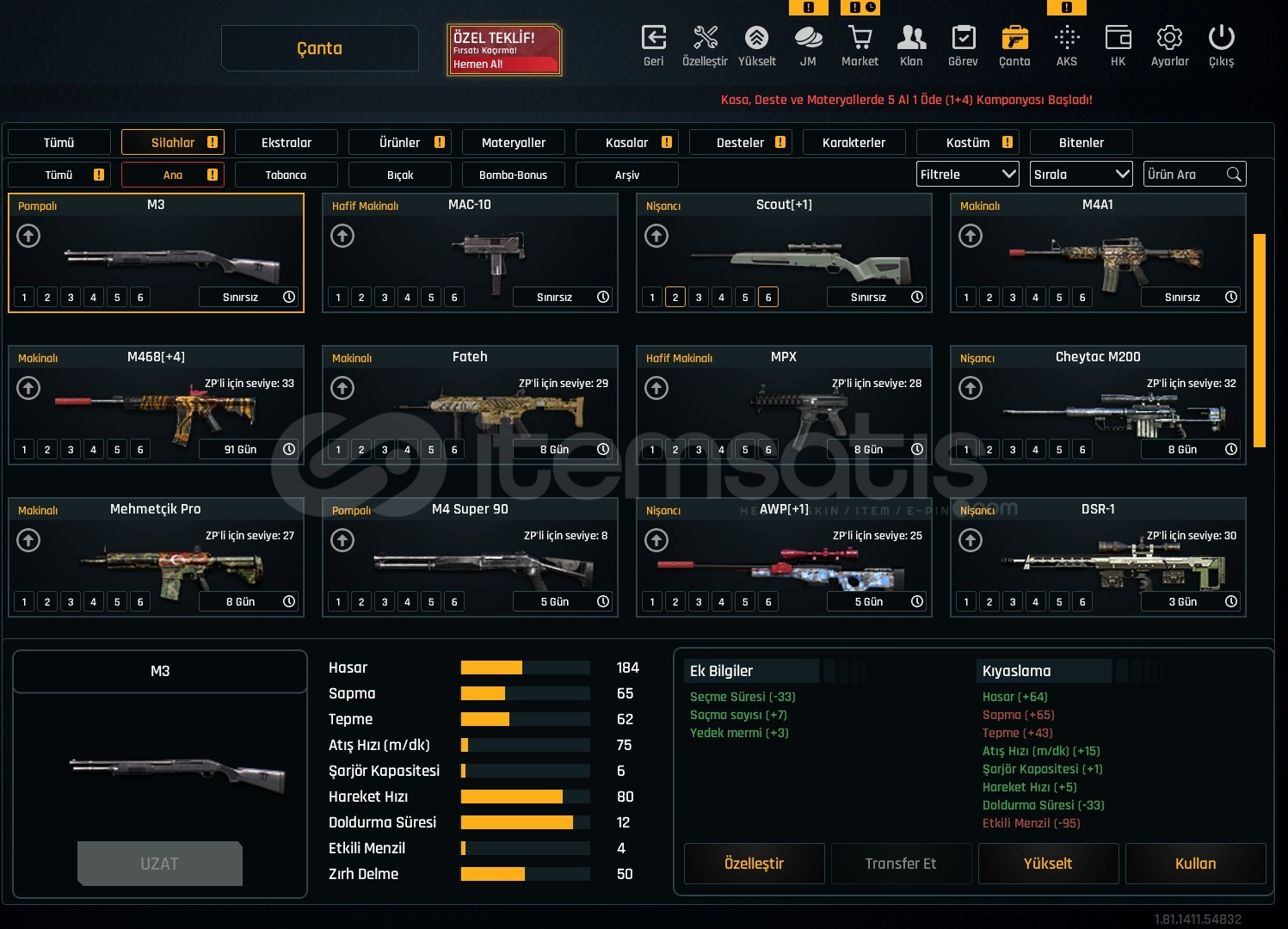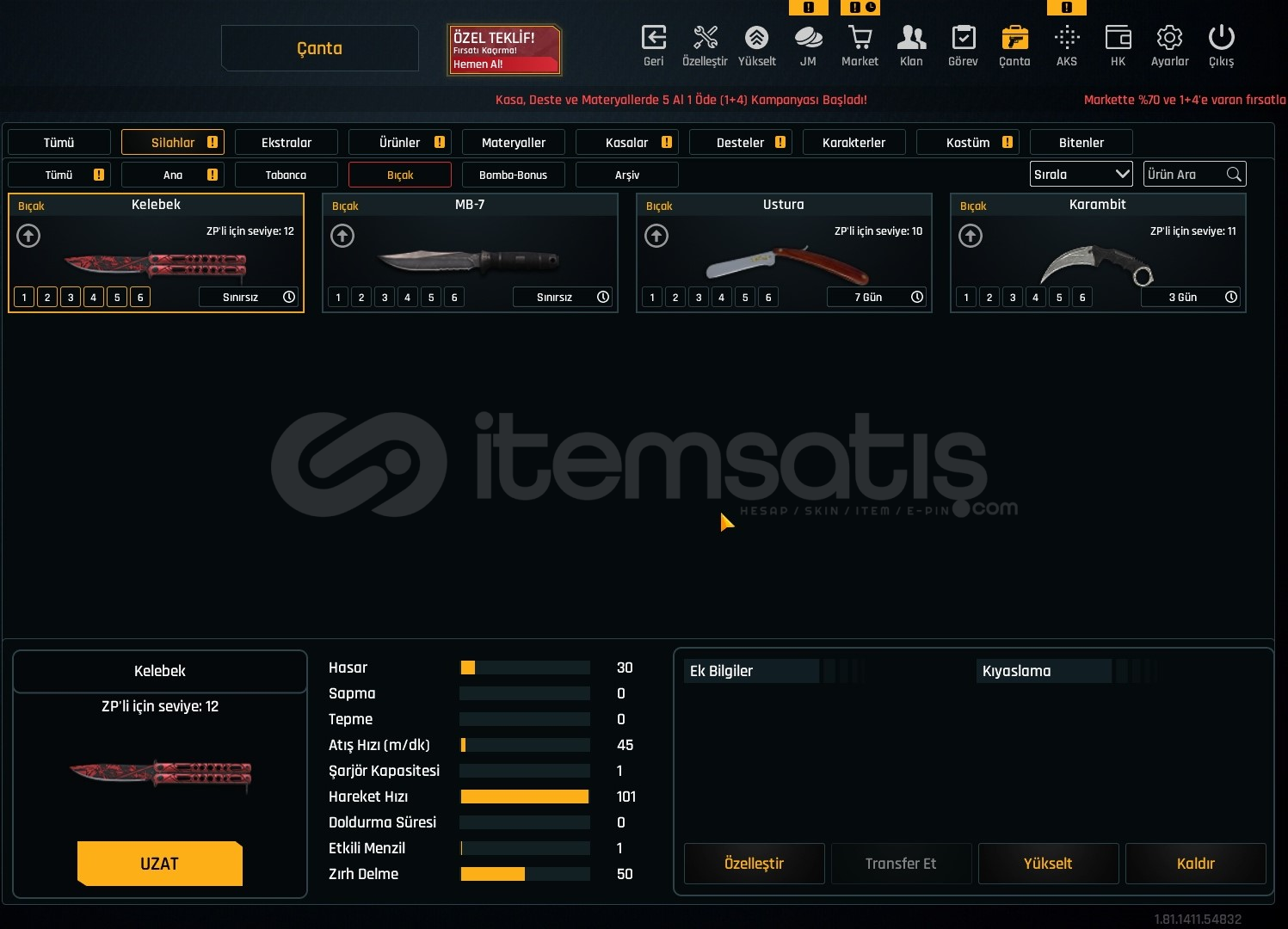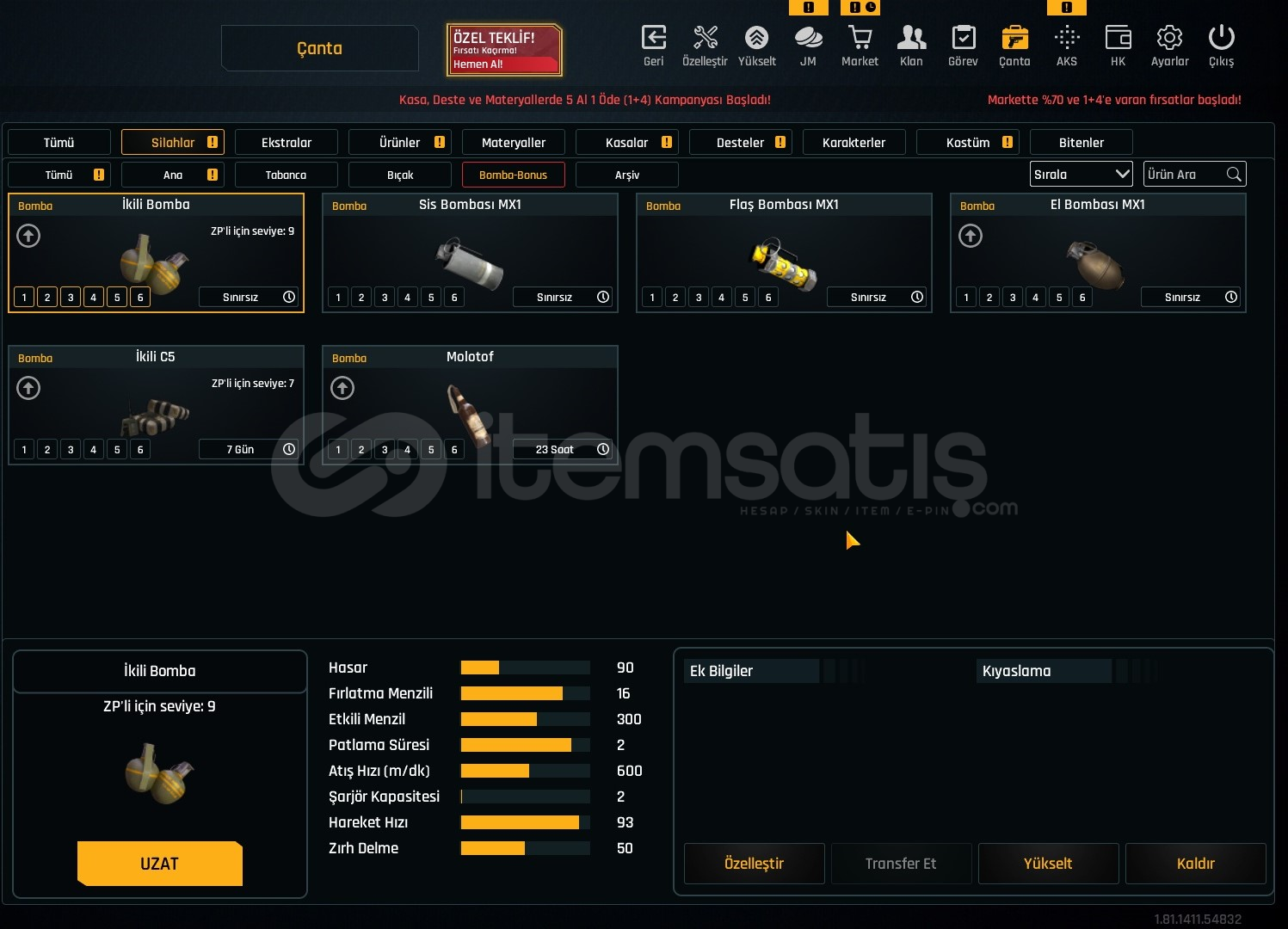 sınırsız kelebeksınırsız ikili bomba+4 m46853 lvl hesap(sadece sınırsızlar bile sitede çok yüksek fiyatlara satılıyor)hesabın mail ve teli benim üstüme alan kişiye verilecekbu hesabı alana kişiye diğer ilandaki hesap bedava