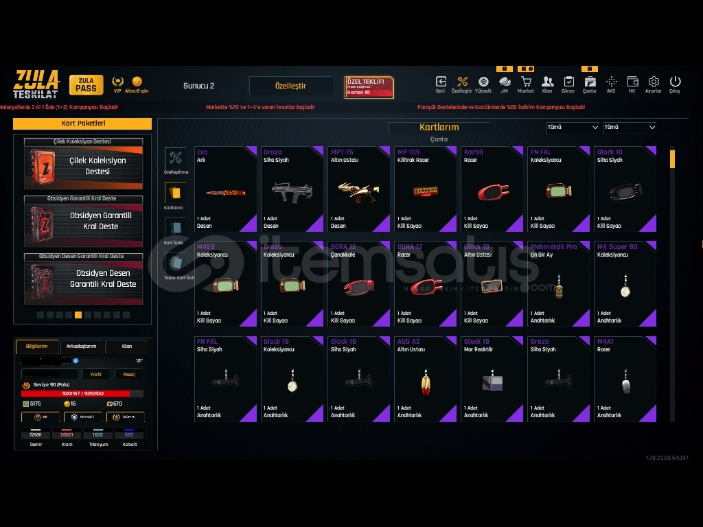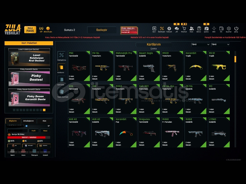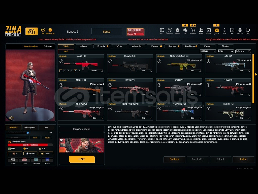 Bükçene Uygun Zula Hesabı Tel Mail Sağlamdır Telefon ve Mail adresi Alıcıya TESLİM EDİLCEKTİR!fffHesap İçerisindeki EŞYALAR3 Adet Takma Ad DeğiştiriciSINIRSIZ ELANA TerentjevaSINIRSIZ Çelik Yelek %1020 adet Sınırsız Oyun İçi Spreyi4 adet kayıp Azaltıcı %502 şans bileti aks 28 adet 11 gün Klan Spreyi Satın Alınına Kadar Deği&#...
