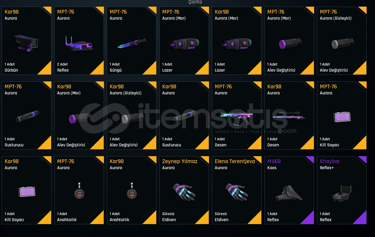 UYGUN BÜTÇE ÖZEL ARENA ŞAMPİYONU HESAP.✨LEVEL : 56•••🎨 KAR-98 AURORA TAM SET 🎨 MPT-76 AURORA TAM SET 🎨 L115A3 QUANTUM+ 🎨 TRANSFORM DESENLER 🎨 TERMİNATÖR DESENLER 🎨 GALAKTİK DESENLER 🎨 TRUVA DESENLER 🎨 TÜRKİYE DESENLER •••🎖 ARENA 1.ŞAMPİYON ROZETİ🎖 GÜMÜŞ Nİ...