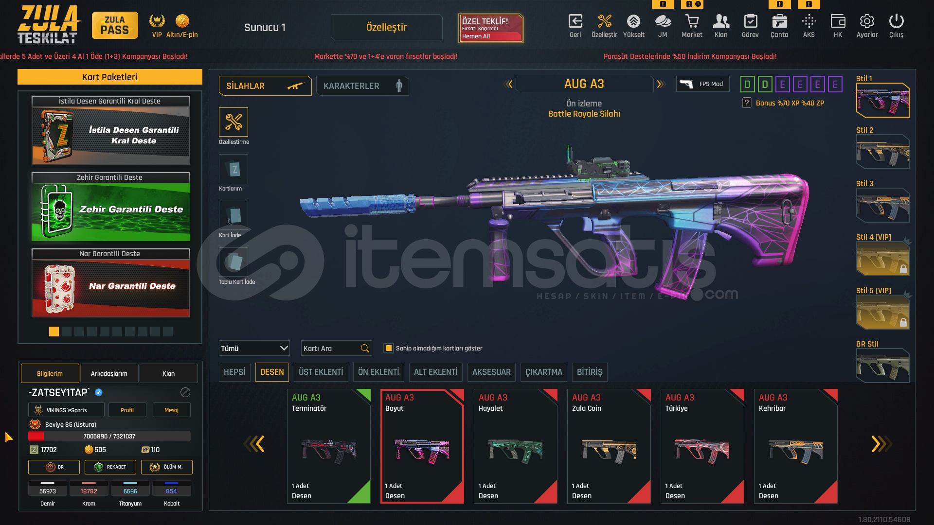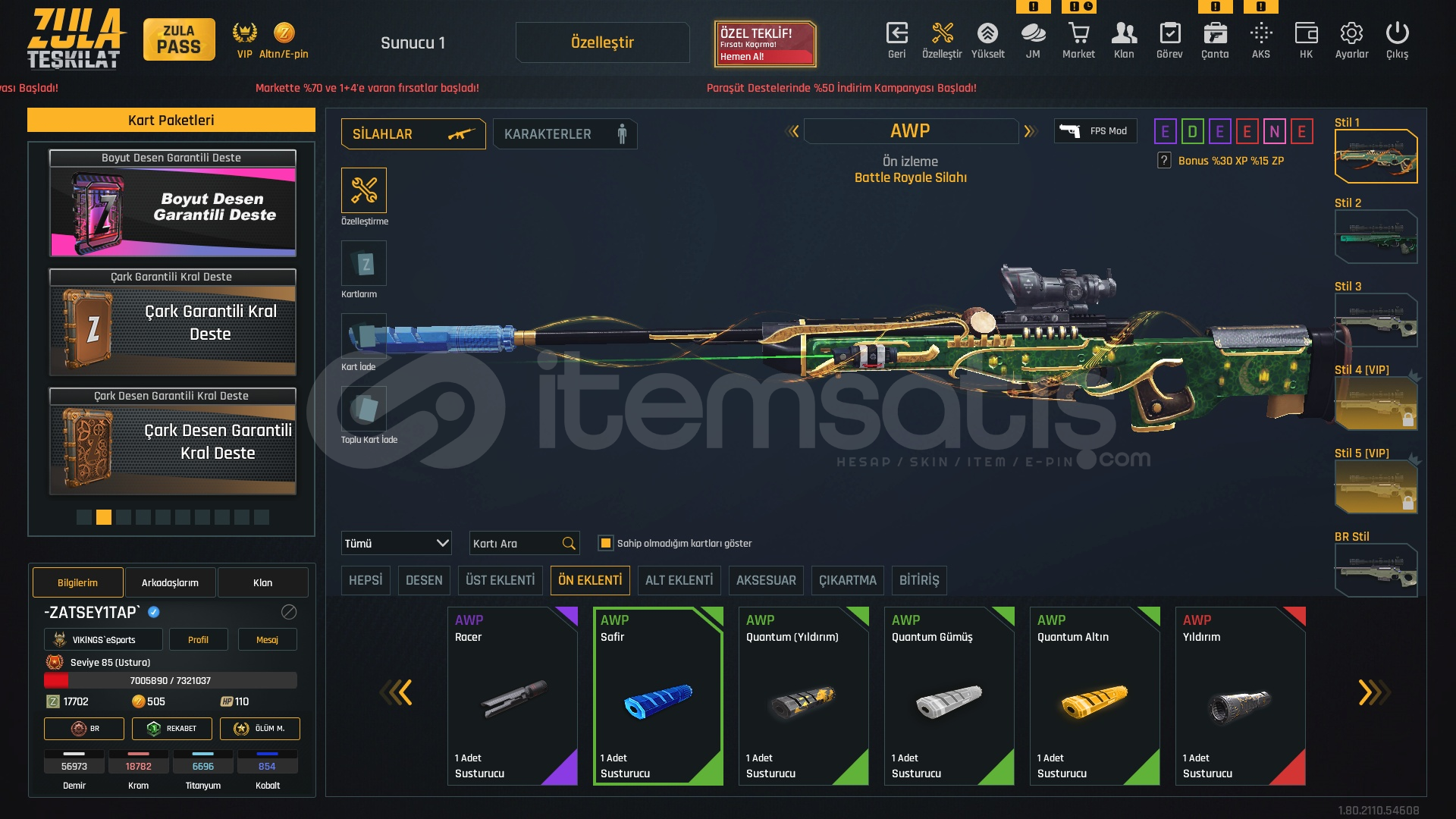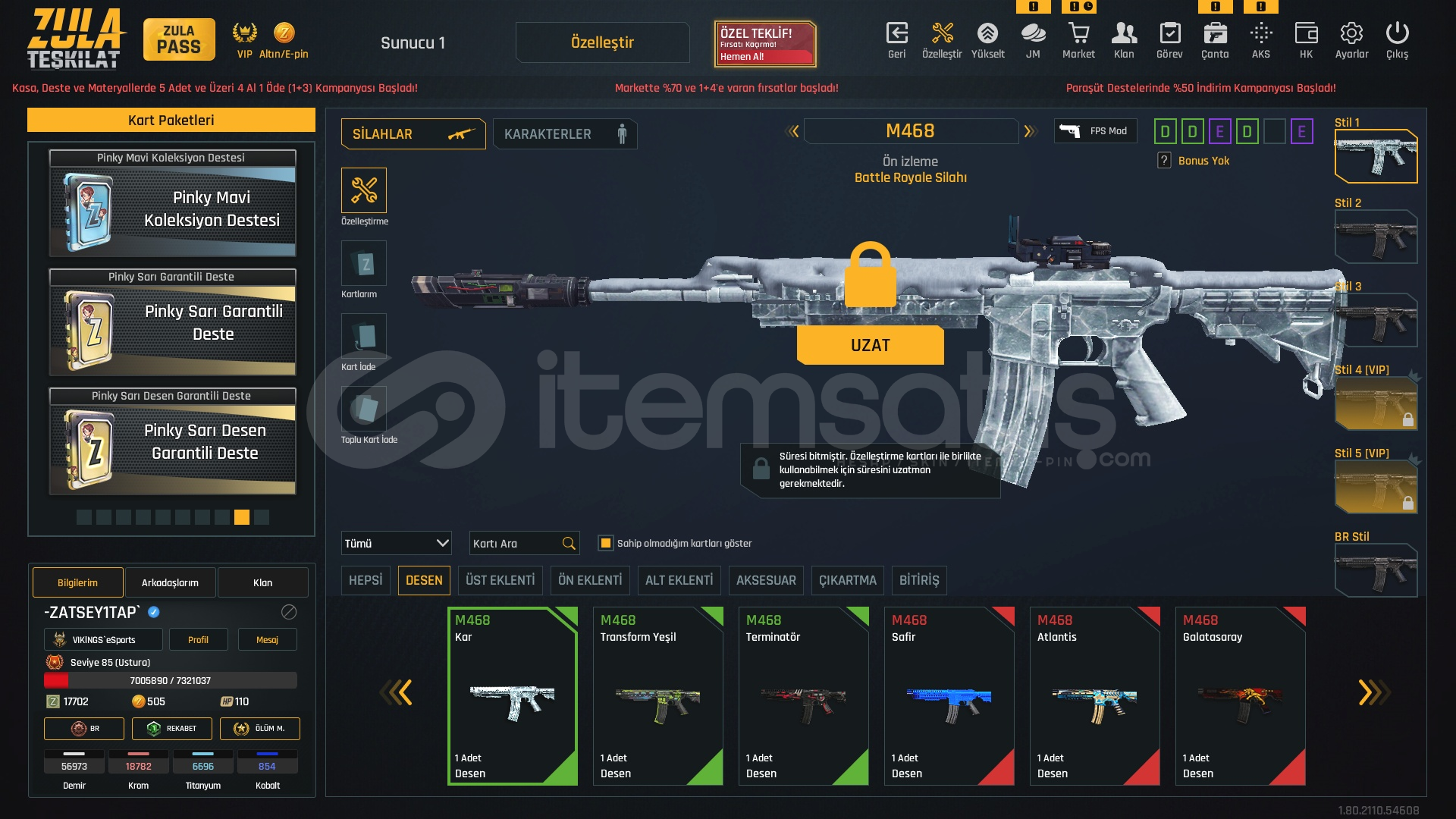 85 SEVİYE BÜTÇE DOSTU HESAP🍎SEVGİLİLER GÜNÜ EŞSİZ DESENLERİ🍎🍎RACER DESENLERİ🍎🍎ONBİR AY ELİT DESENLERİ🍎🍎M468 QUANTUM PLUS🍎🍎8 ADET TAKMA AD DEĞİŞTİRİCİ🍎🍎1 ADET İSTATİSTİK SIFIRLAMA🍎[SINIRSIZ] +7 M93R[SINIRSIZ] +7 GLCOK18[SINIRSIZ] +6 BORA12[SINIRSIZ] +6 MEHMETCİK[SINIRSIZ] 12 ADET SP...