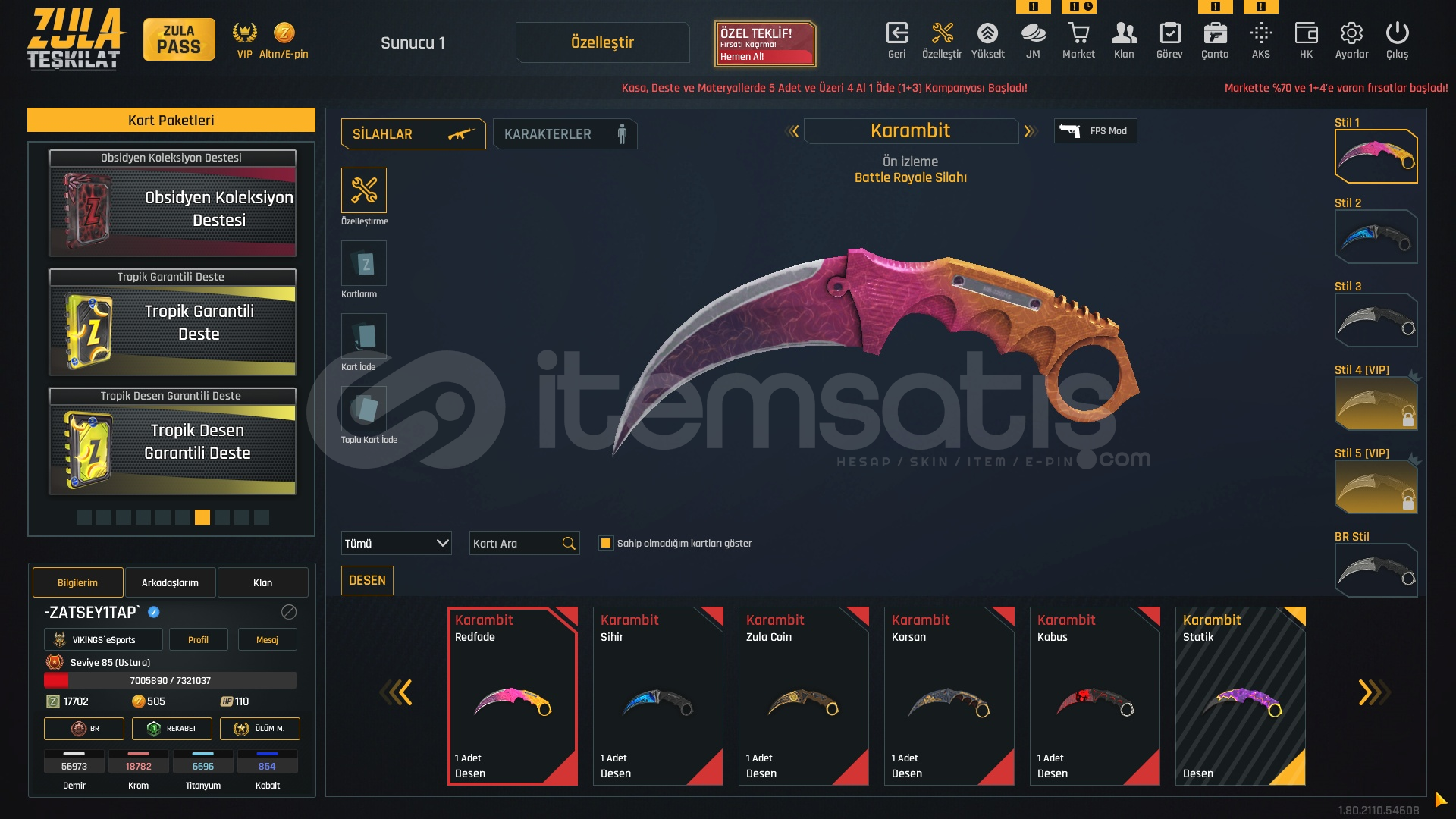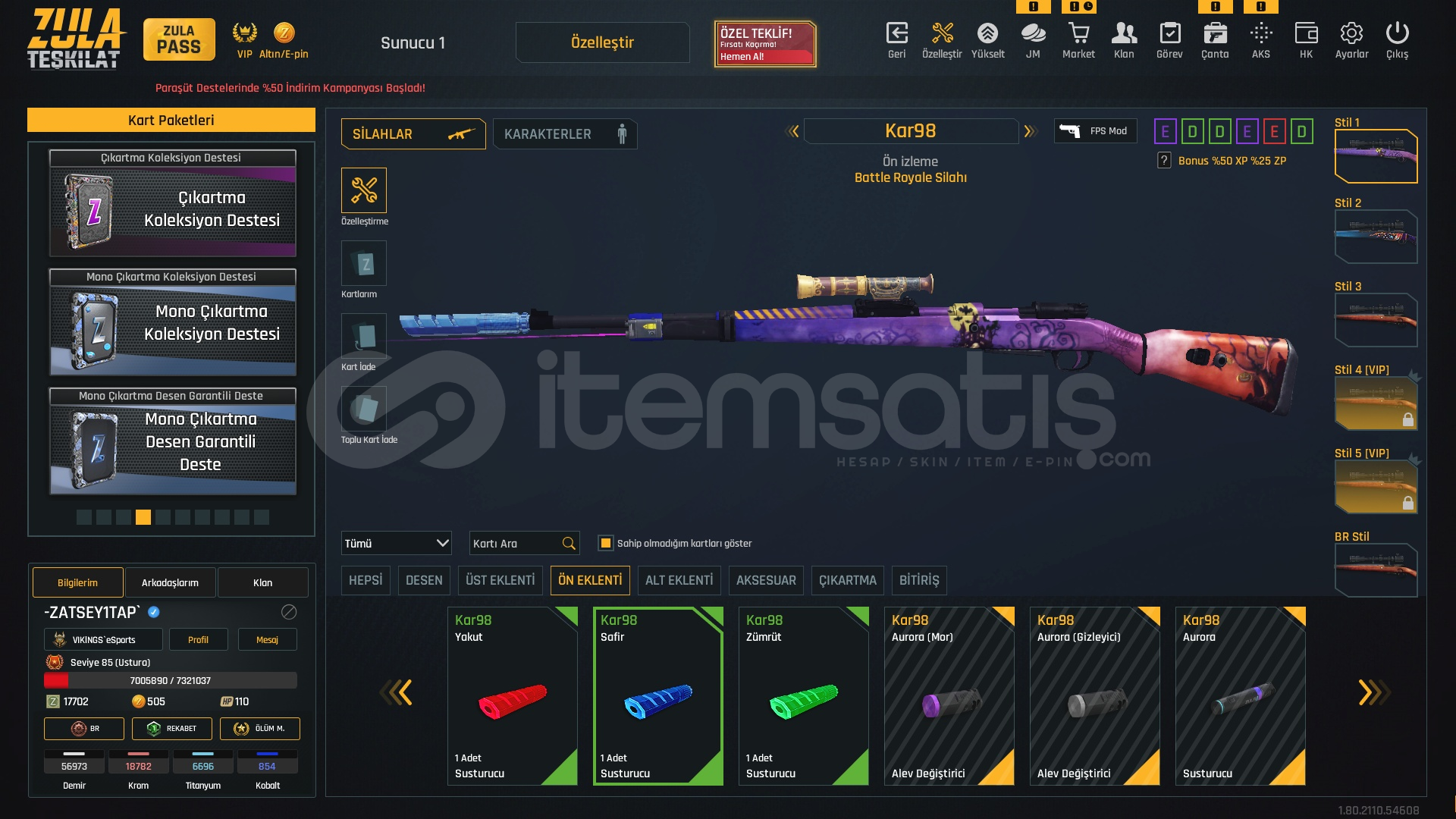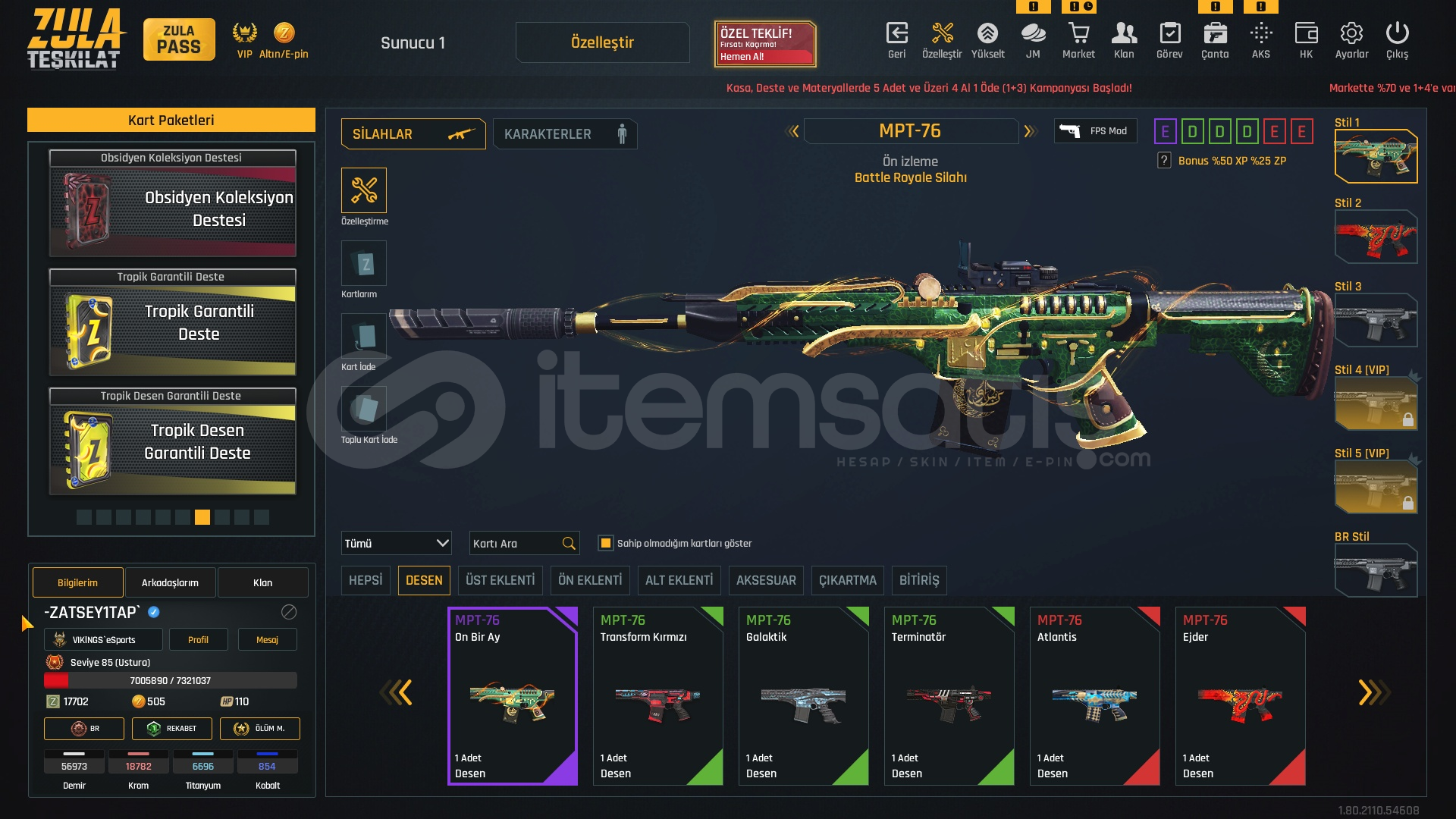 85 SEVİYE BÜTÇE DOSTU HESAP🍎SEVGİLİLER GÜNÜ EŞSİZ DESENLERİ🍎🍎RACER DESENLERİ🍎🍎ONBİR AY ELİT DESENLERİ🍎🍎M468 QUANTUM PLUS🍎🍎8 ADET TAKMA AD DEĞİŞTİRİCİ🍎🍎1 ADET İSTATİSTİK SIFIRLAMA🍎[SINIRSIZ] +7 M93R[SINIRSIZ] +7 GLCOK18[SINIRSIZ] +6 BORA12[SINIRSIZ] +6 MEHMETCİK[SINIRSIZ] 12 ADET SP...