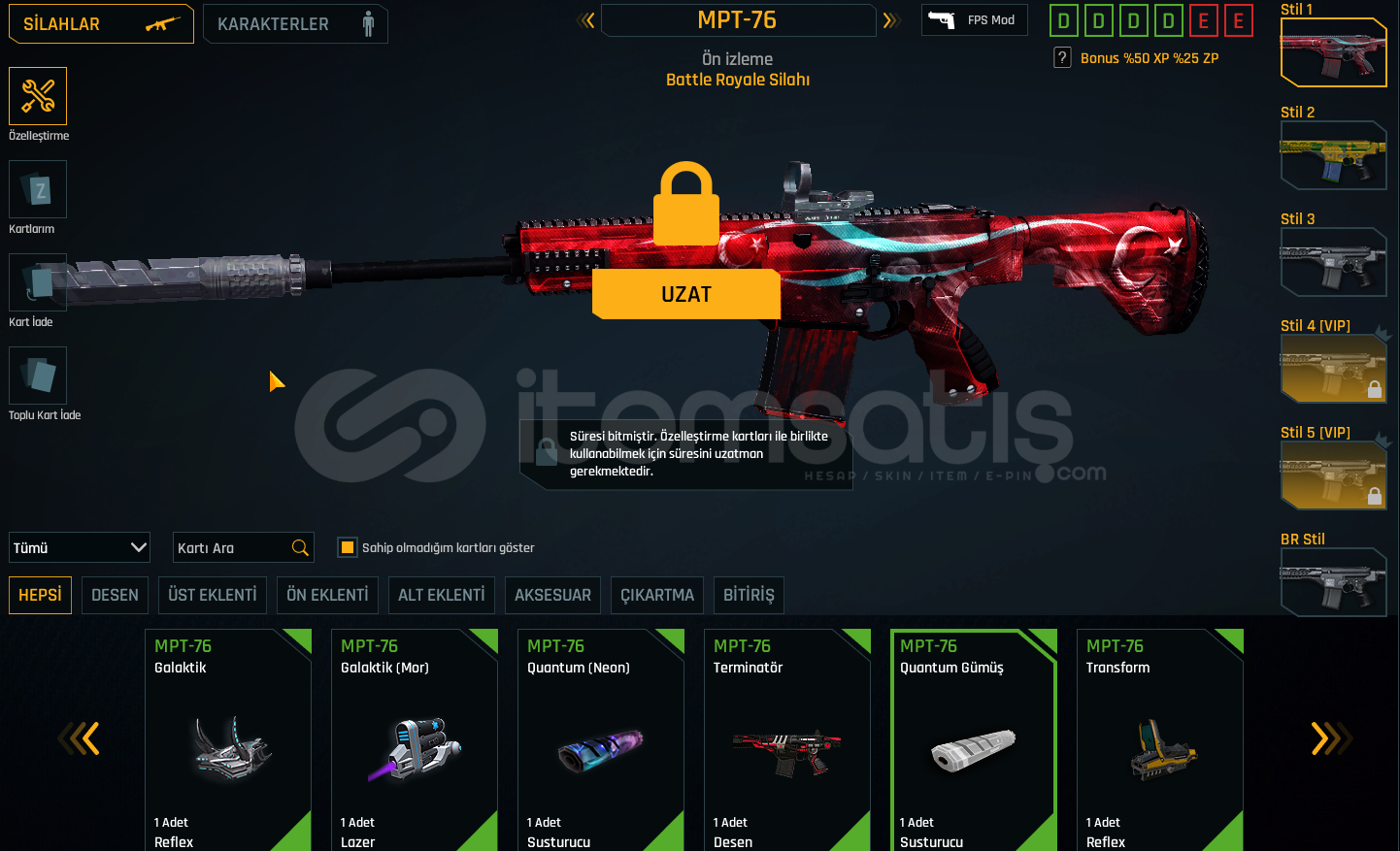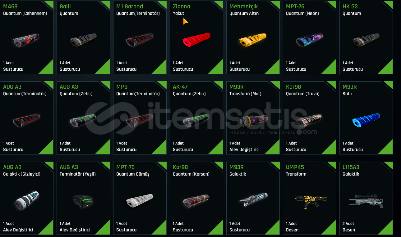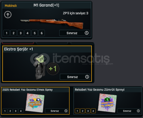 +1 sınırsız m1agrand+6 mtp76+6 kar98+5 aug a3+5 m93r+7 katana+5 ustura+5 karambit+6 ikili bombasınırsız +1 ek şarjör3 adet isim değiştirme3 adet istatistik sıfırlamaSorunuz olursa mesaj atabilirsiniz