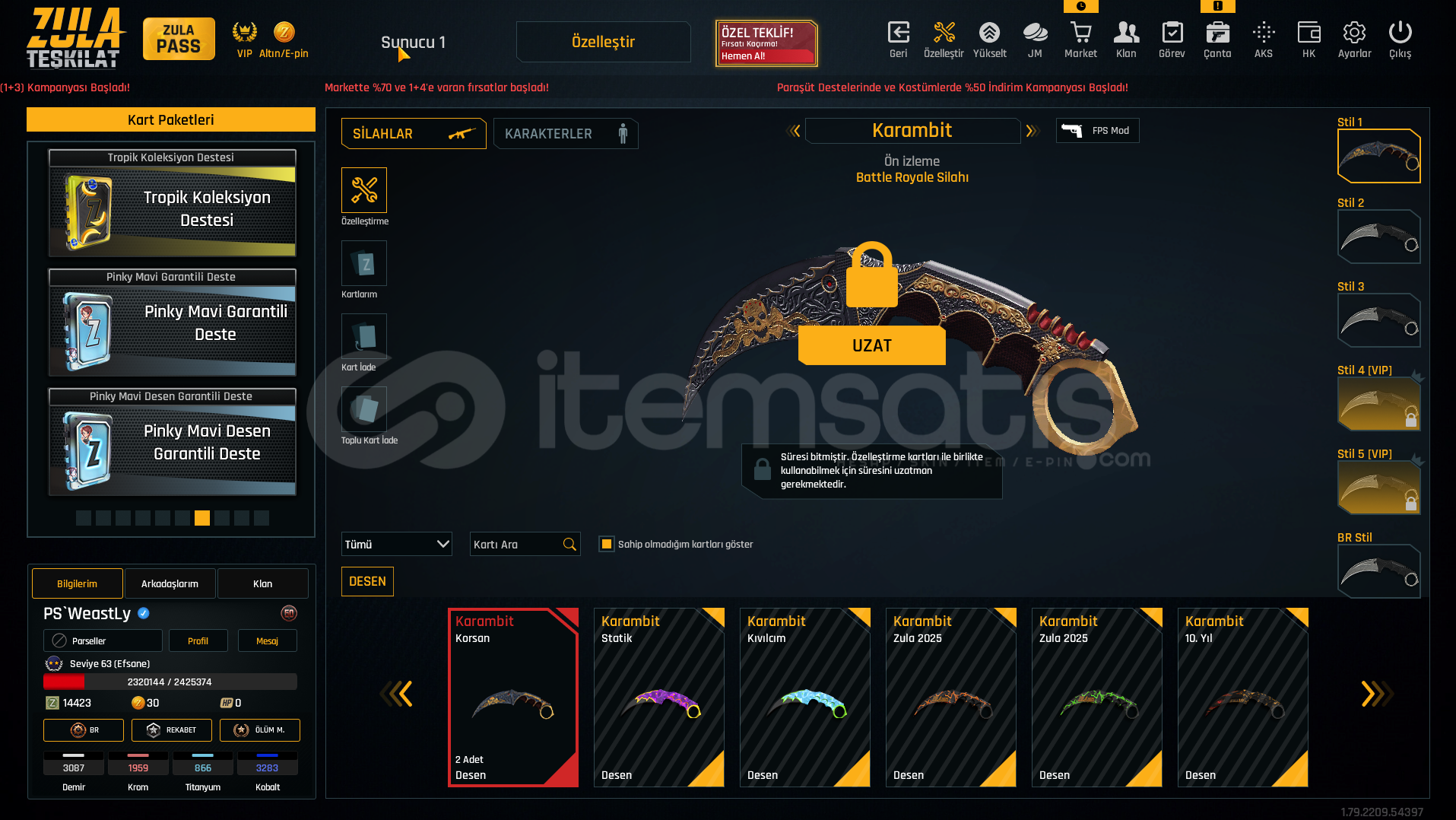 ✨DESTANSI + EFSANE DOLU BOL SKİNLİ ZULA HESABI✨