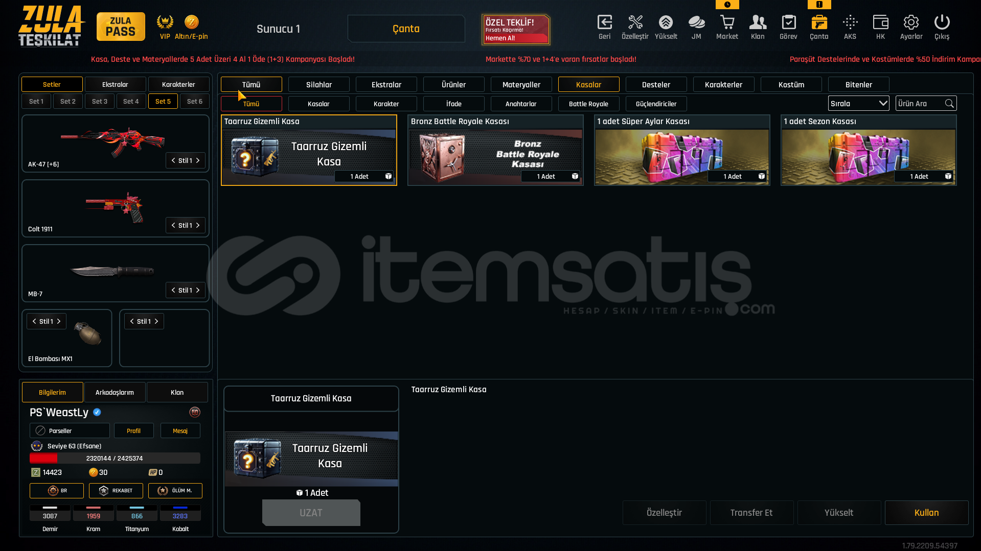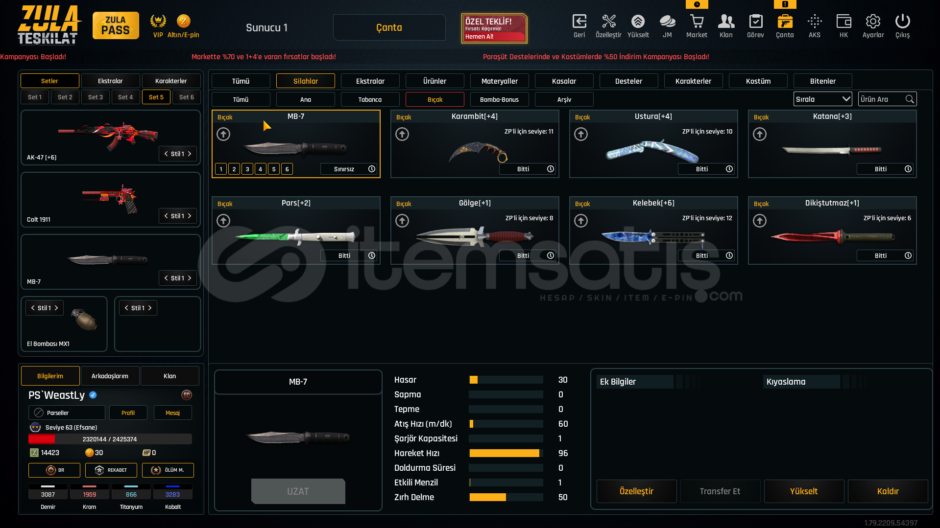 OYUNU BIRAKTIĞIM İÇİN HESAP SATILIKTIR.3 SAAT İÇERİSİNDE TESLİMAT YAPILIR HESAP HAKKINDA BİLGİ ALMAK İÇİN YAZABİLİRSİNİZGENEL HESAP İÇERİĞİM468 +5AK-47 +6AUG A3 +3KAR98 +4AWP +4L115A3 +5M93R +5DESERT EAGLE +4GLOCK 18 +5KARAMBİT +4USTURA +4KATANA +3İKİLİ BOMBA +5HESAP MAİNLEMEK İÇİN MUAZZAMDIR İÇERİSİNDE SINIRSIZ...