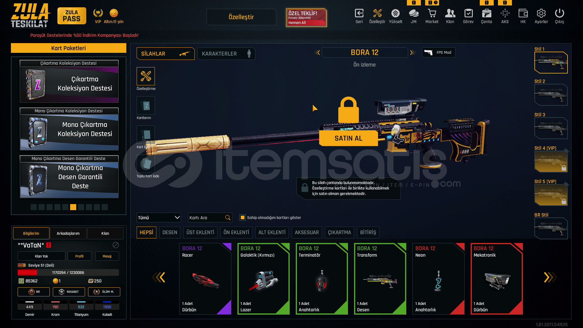 DESTELİ SKİNLİ YÜKSEK SEVİYE HESAAP!!