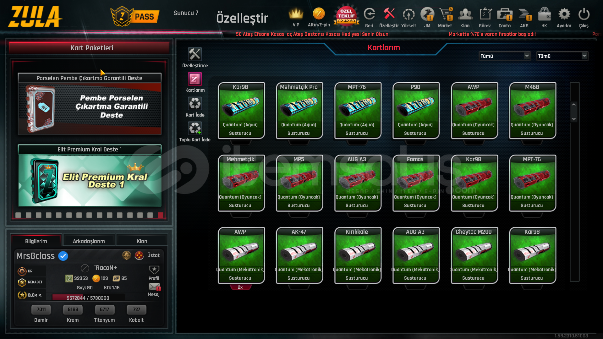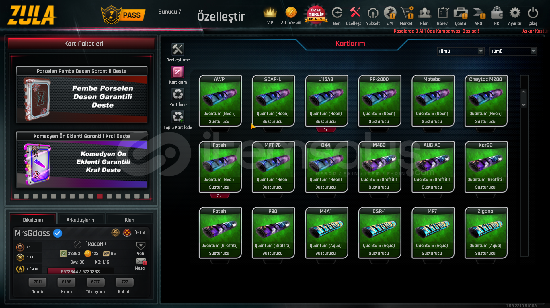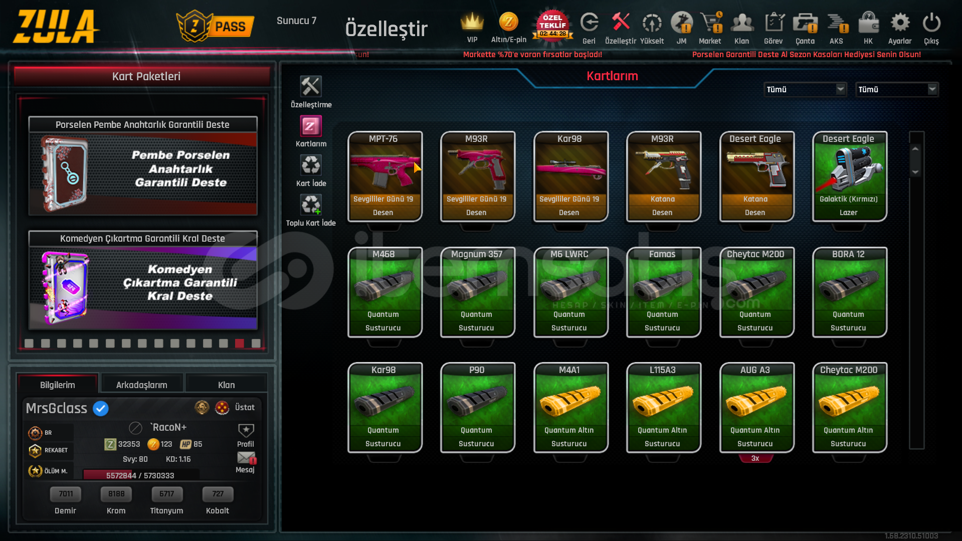 UZUN ZAMNDAN SONRA GİRDİĞİM İÇİN ÇOGU SİLAH DEFULT HALİNDE SKİNLERİ GÖRSELE KOYDUM