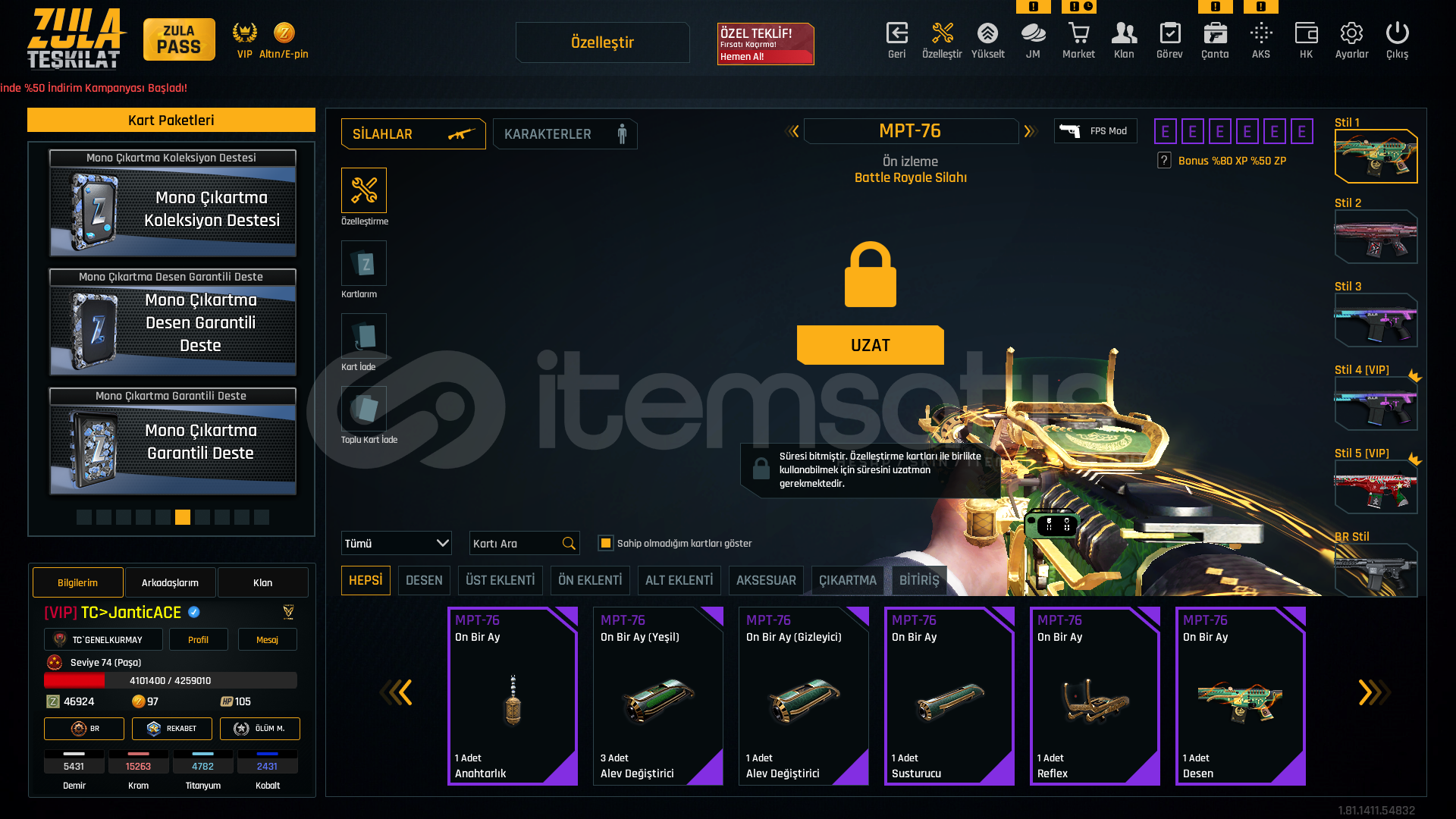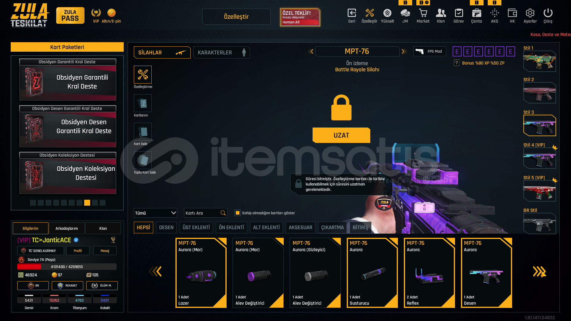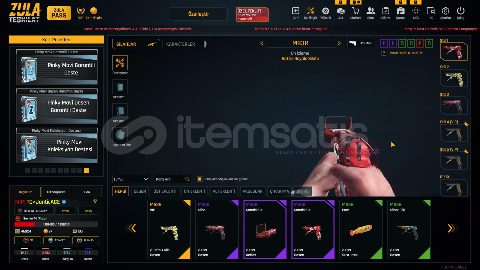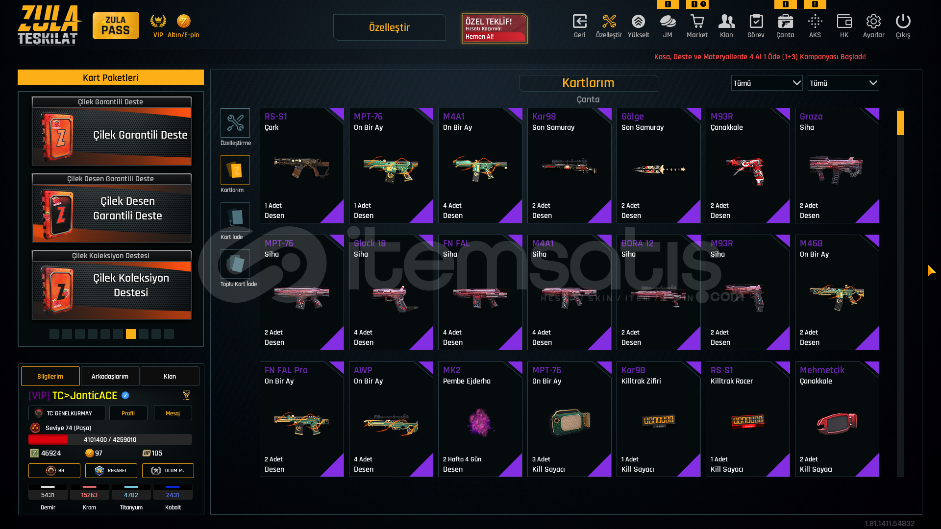 META +7 ÖZELLEŞTİRME DELİSİ MAKUL HESAP. ✨🎗LEVEL : 74🎨 KATANA DESENLER🎨 YENİ YIL 2020 DESENLER TAM SET🎨 ONBİR AY DESENLER🎨 SON SAMURAY DESENLER🎨 ÇANAKKALE DESENLER🎨 SİHA DESENLER🎨 SİBER GÜÇ DESENLER🎨 HANYA DESENLER 🎖️ 5 YILLIK TECRÜBE ROZETİ🎖️ 50.LEVEL ROZETİ•••📍 3 ADET KAYIP AZ...