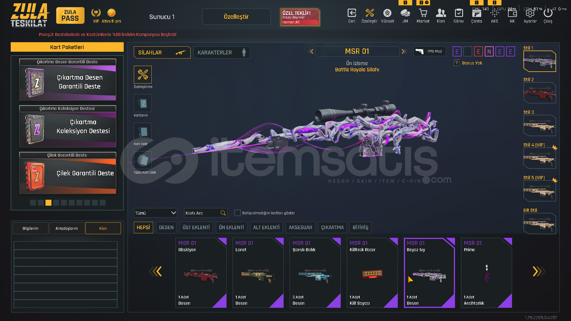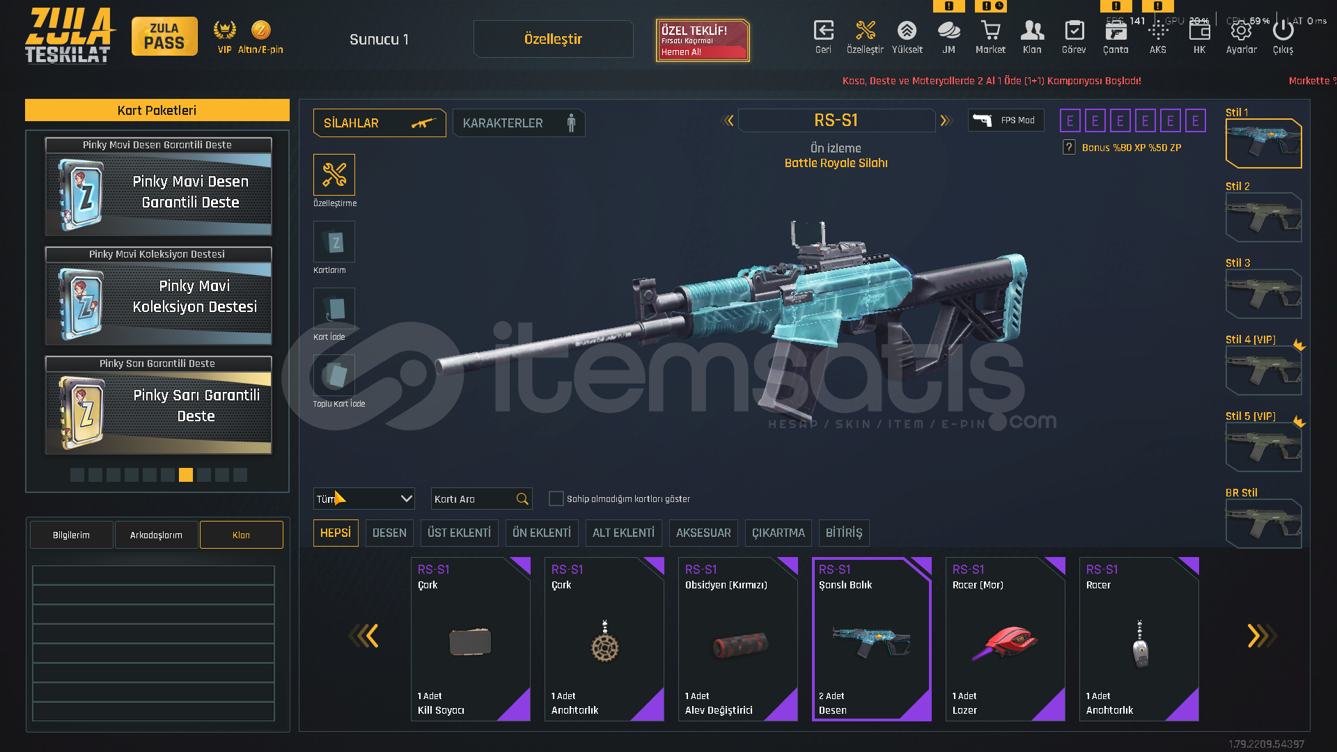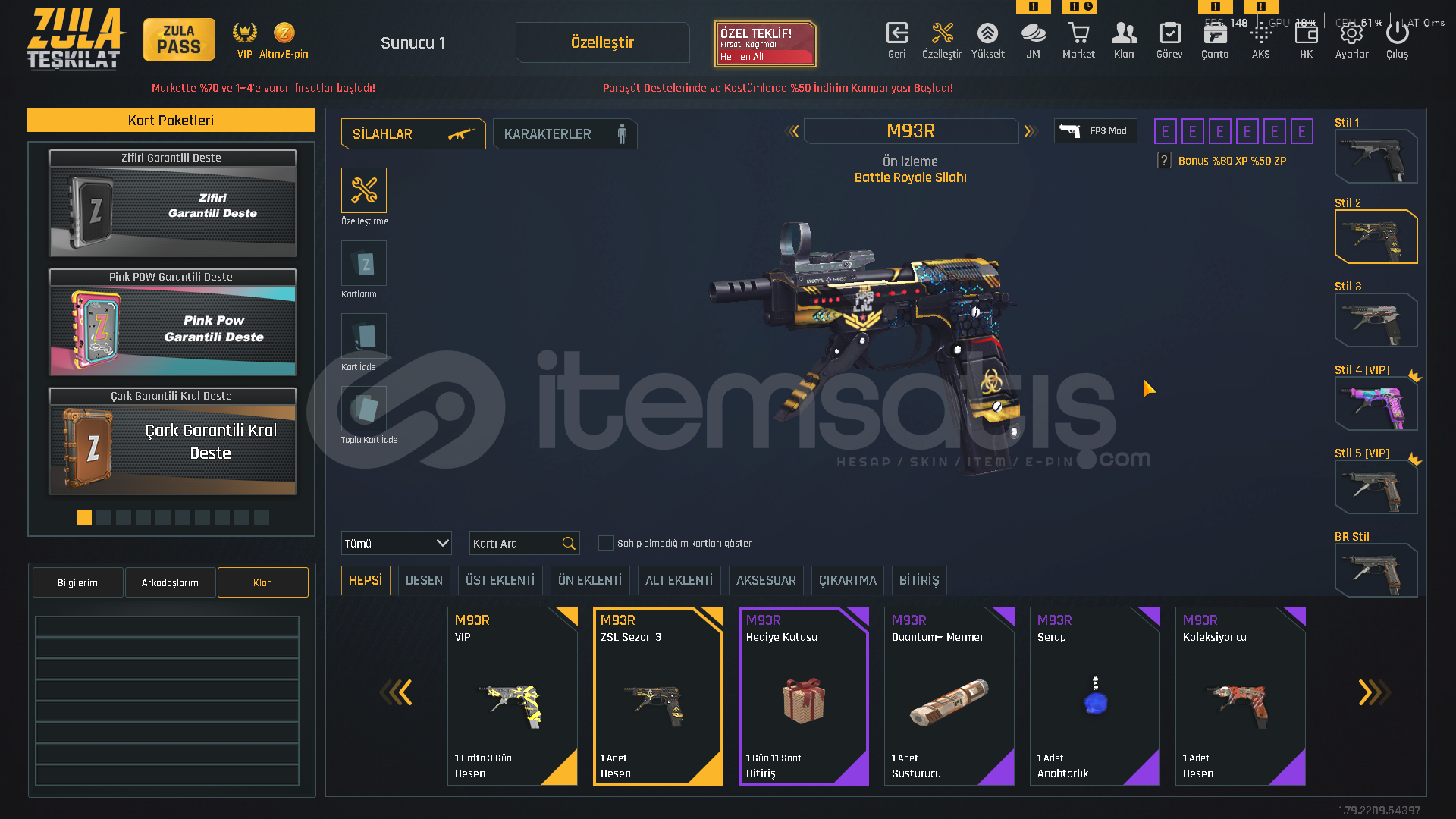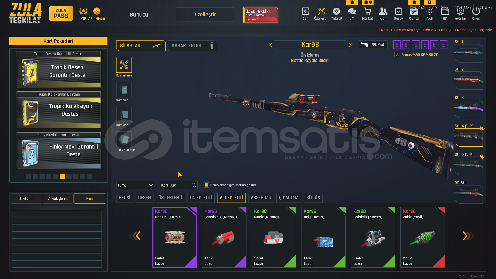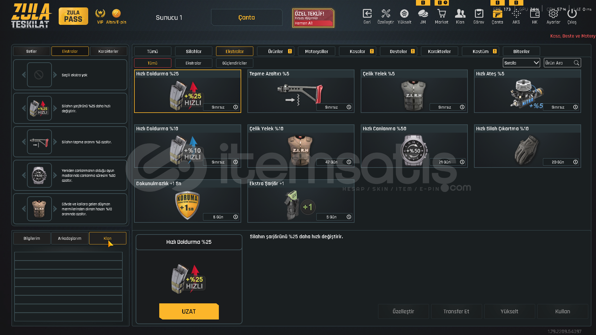 TEŞKİLAT SEVİYE T-9100.000 ZULA ALTINI500.000 ZP MEVCUTZULA PASS AKTİF!VİP AKTİF!⚡ KARAMBİT KADINLAR GÜNÜ DESENİ⚡ USTURA 2018 DESENİ⚡ ZSL SEZON 3 DESENLERİ [ TAM SET ]⚡ YENİ YIL 20 DESENLERİ⚡ 5 ADET TAKMA AD DEĞİŞTİRİCİ💧 AUG QUANTUM+ CEHENNEM💧 M468 QUANTUM+ CEHENNEM💧 GROZA QUANTUM+ CEHENNEM💧 AWP QUANTUM+ OPERASYON💧 DEAGLE QUANTU...