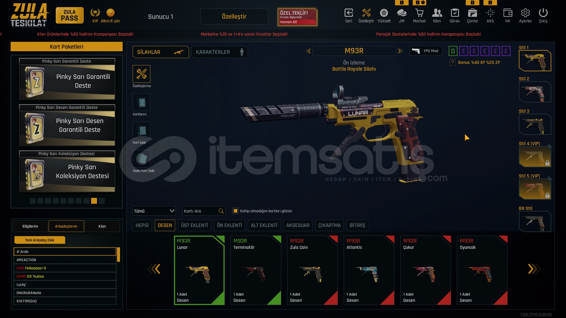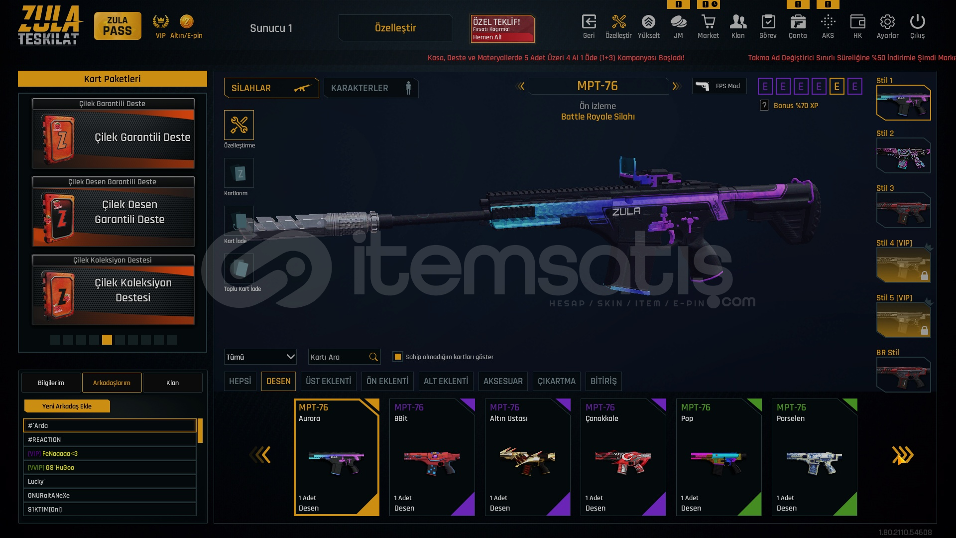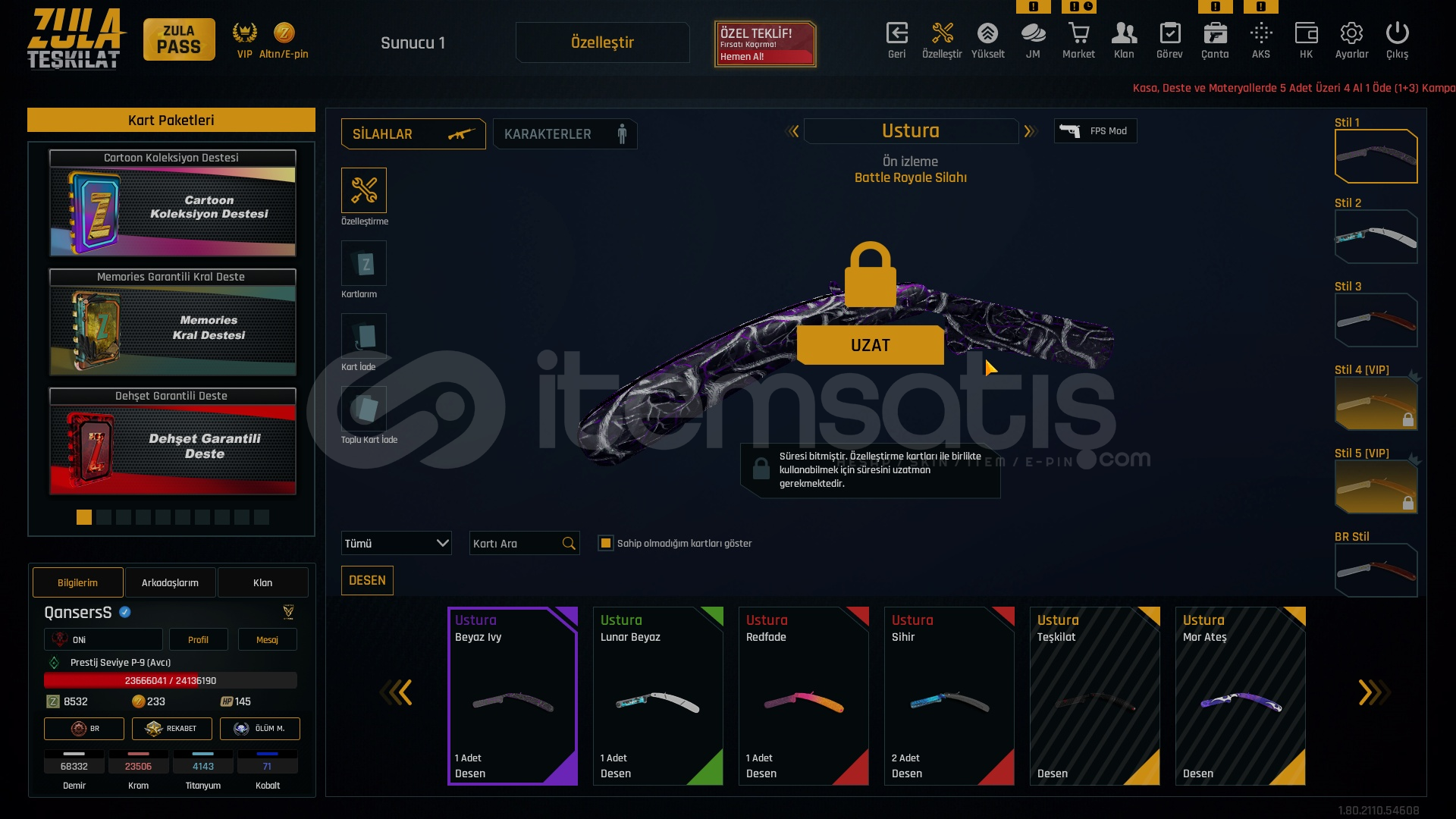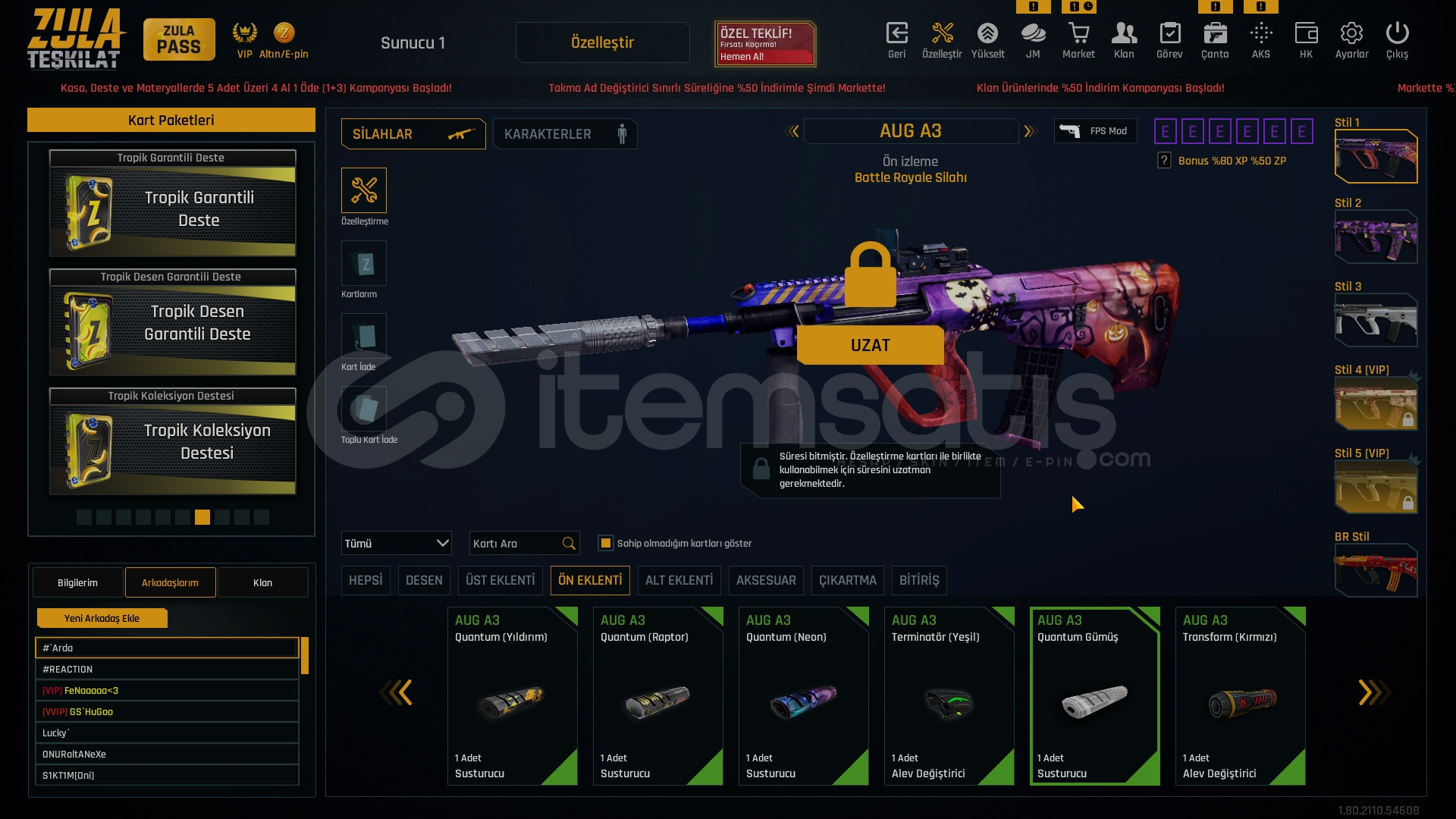 Prestij seviyesi P-9 (109)Bütün Metalar +7***+7 ler ***Kar-98 (quantum +)aug-a3MPT-76GROZA ( QUANTUM +)AWP L115A3İKİLİ BOMBA USTURAM93R***SINIRSIZ***hızlı ateş %5tepma azaltıcı %5takma ad değiştirici (5 adet)istatik sıfırlama (1 adet) ve bol özelleştirme dolusu hesap
