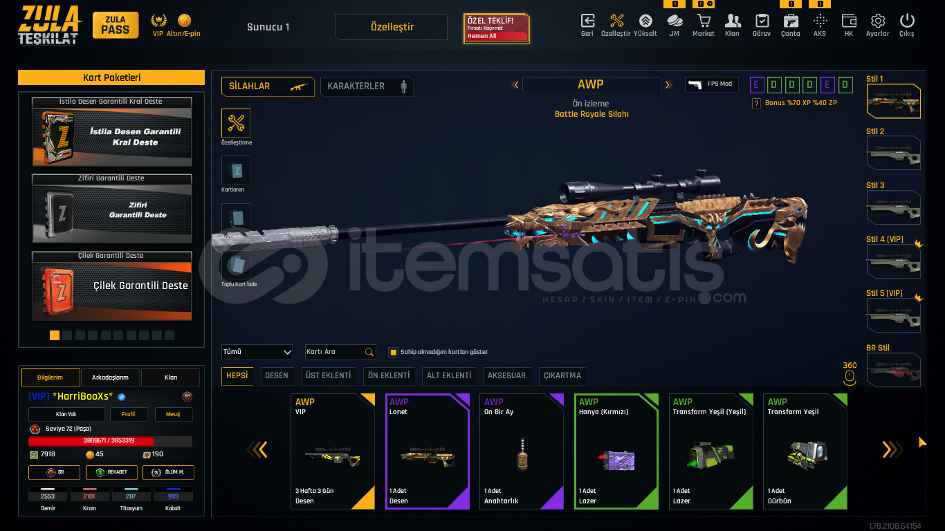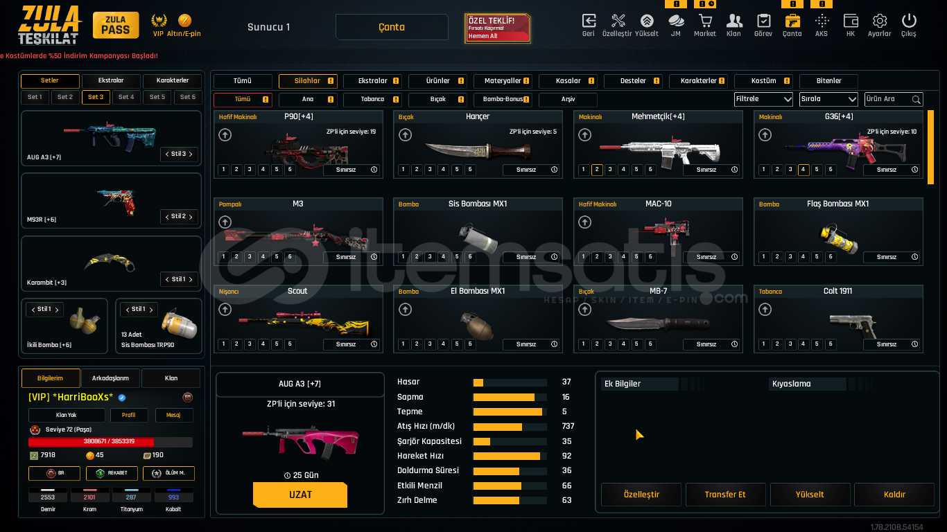 HESAP FULL+FULL ÖZELLEŞTİRMELİ BÖYLE ÖZELLEŞTİRMELİ HESAPLAR ARTILI SİLAHLAR BU FİYATA YOK!!!