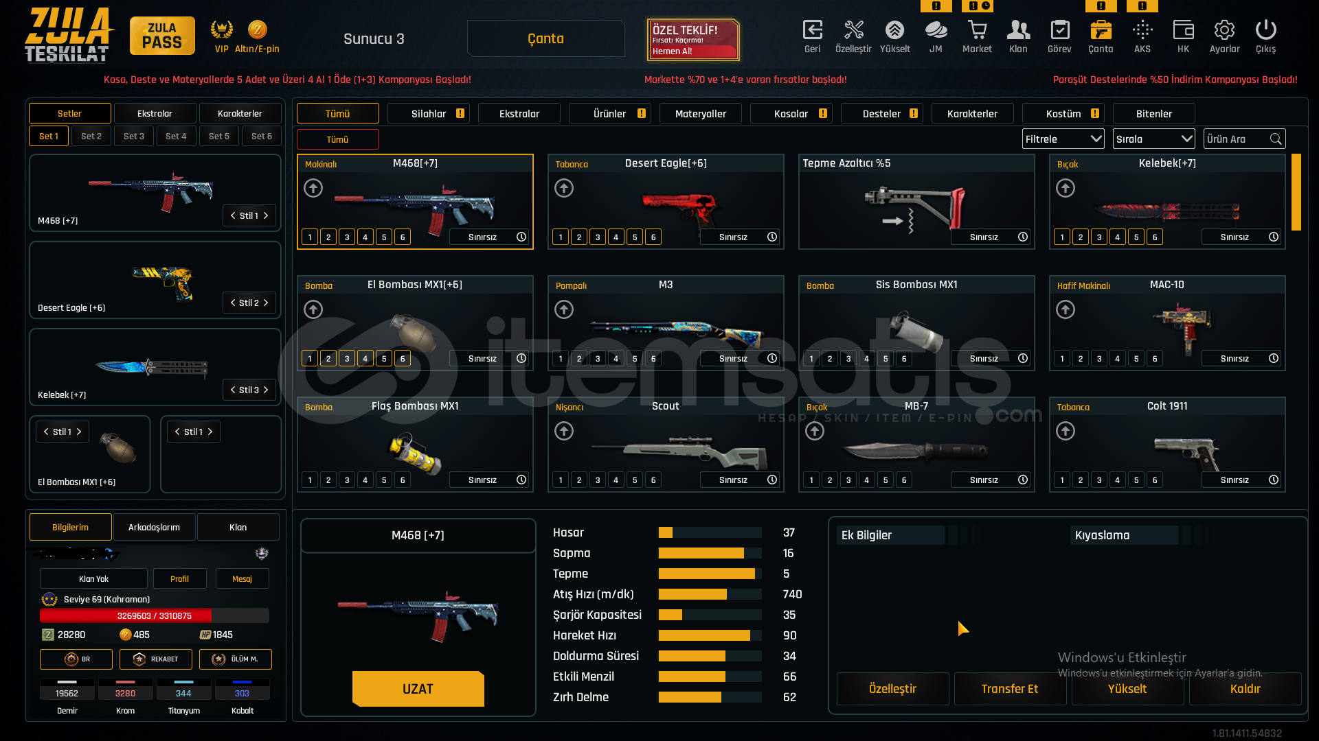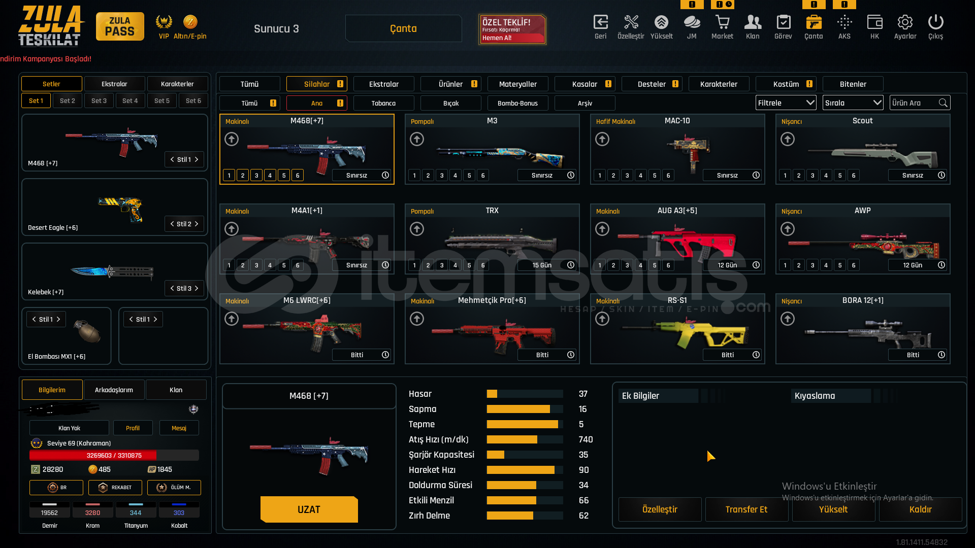 +7 SINIRISIZ ESPOR DESENLİ M468 +7 SINIRISIZ KELEBEK+6 SINIRSIZ DEAGLE+6 M6 LWRC+6 MEHMETÇİL PRO+5 AUGSINIRSIZ TEPME AZALTICI