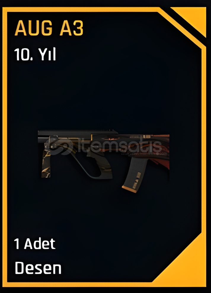 ✅ Hesabınıza EŞSİZ 10. YIL DESENLİ +7 AUG A3 silahı gönderilecektir. ✅ Transfer ücreti ödemenize gerek yoktur, satın aldığınız gibi hesabınıza gönderilir ve satış tamamlanmış olur.✅ Mağaza teslimat saatleri sağ üst köşede yazmaktadır, bu saatler içerisinde alırsanız en hızlı şekilde teslim edilecektir.
