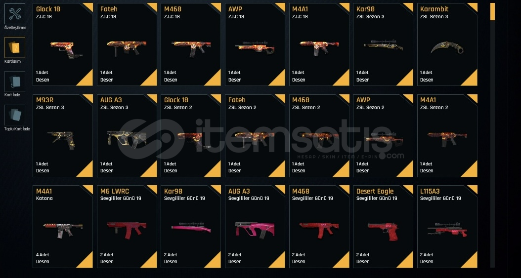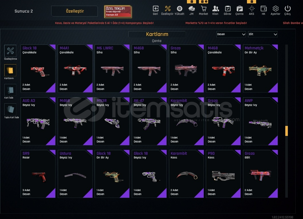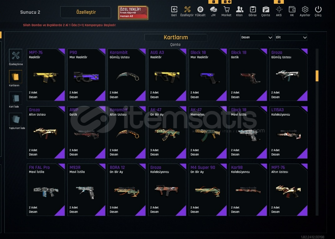 ELİT ve EŞSİZ DESENLERİ BOLT-8 Sıralama Hesabı15 Sayfa Ödeme Geçmişi Var 2020 KurulumQuantum Plus Rs MSR M93R M468 ve Niceleri..Reflex Plus Rs S1 Ve NiceleriKAR98 ZSL Sezon 3 Karambit ZSL Sezon 3M93R ZSL Sezon 3AUG A3 ZSL Sezon 3Fateh ZSL Sezon 2M468 ZSL Sezon 2AWP ZSL Sezon 2M4A1 ZSL Sezon 2Glock 18 ZSL Sezon 2Fateh Z.I.C 18Glock 18 Z.I.C 18M468 Z.I.C 18AWP Z.I.C 18M4A1 Z.I.C 18SINIRSIZ +7 SİLAHLAR [+7] AUG A3[+7] M468[+7] ...