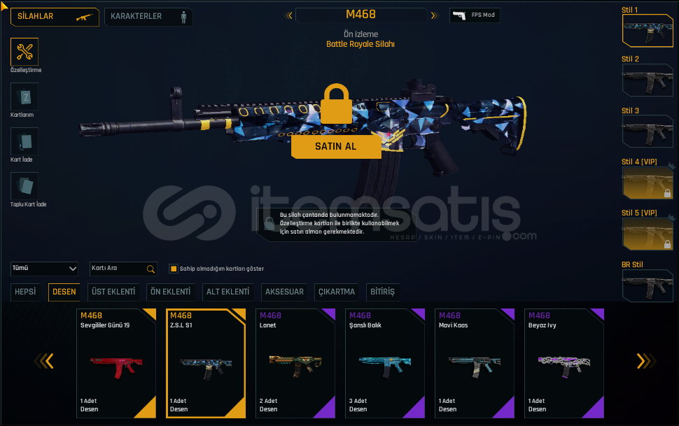 Transfer ücreti bana aittir.+1 M468 Z.S.L S1 Desenini arkadaş ekleyip sizin hesabınıza gönderiyorum.