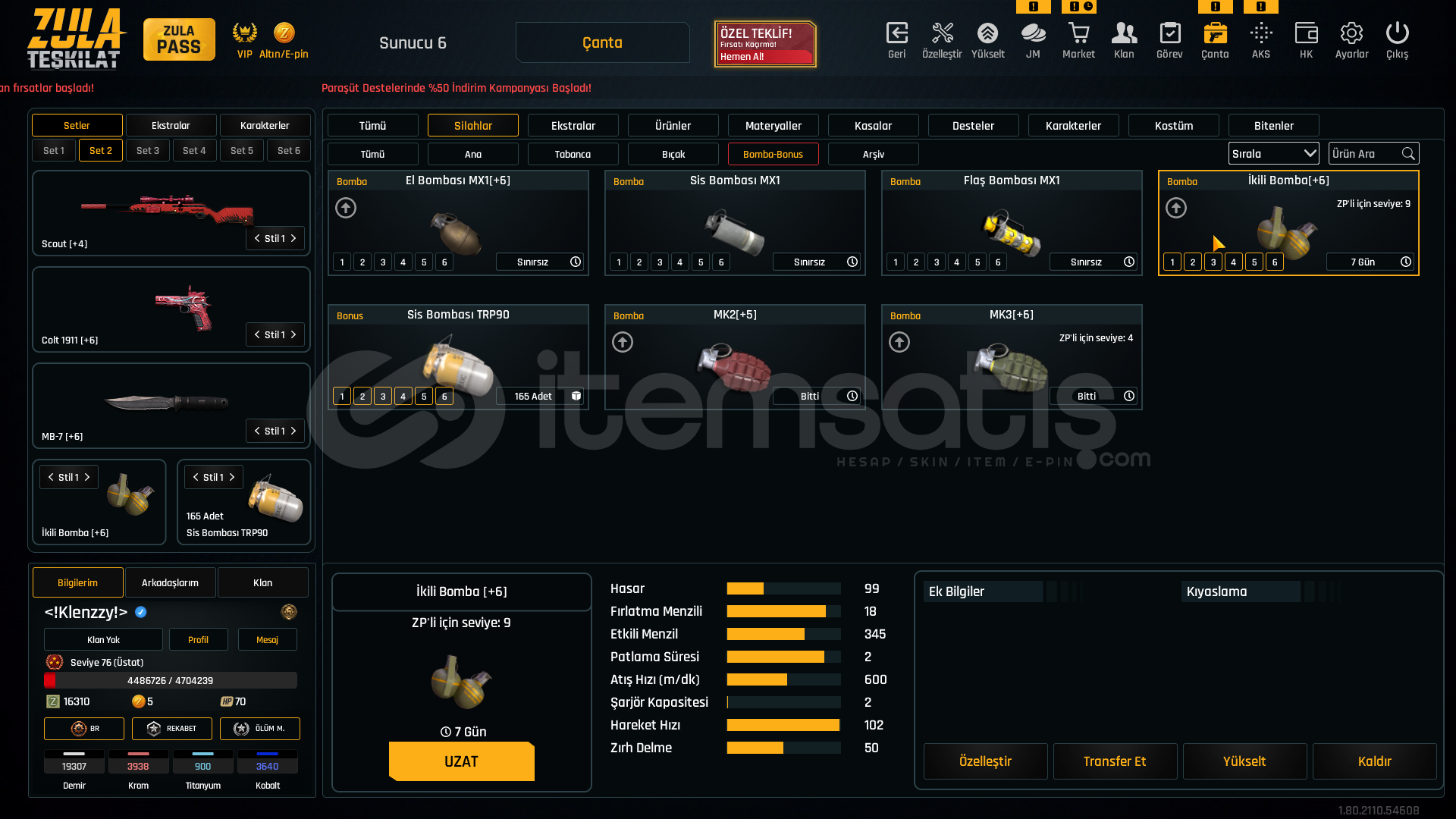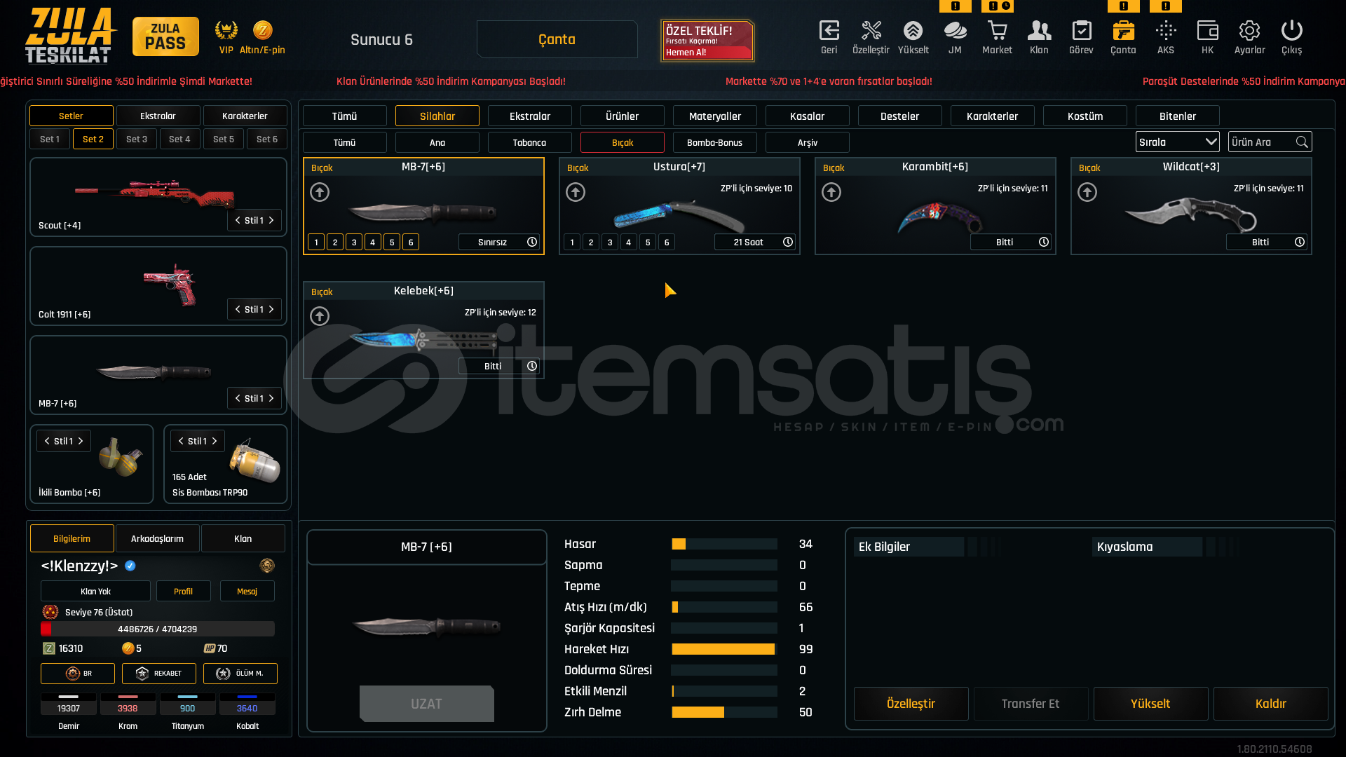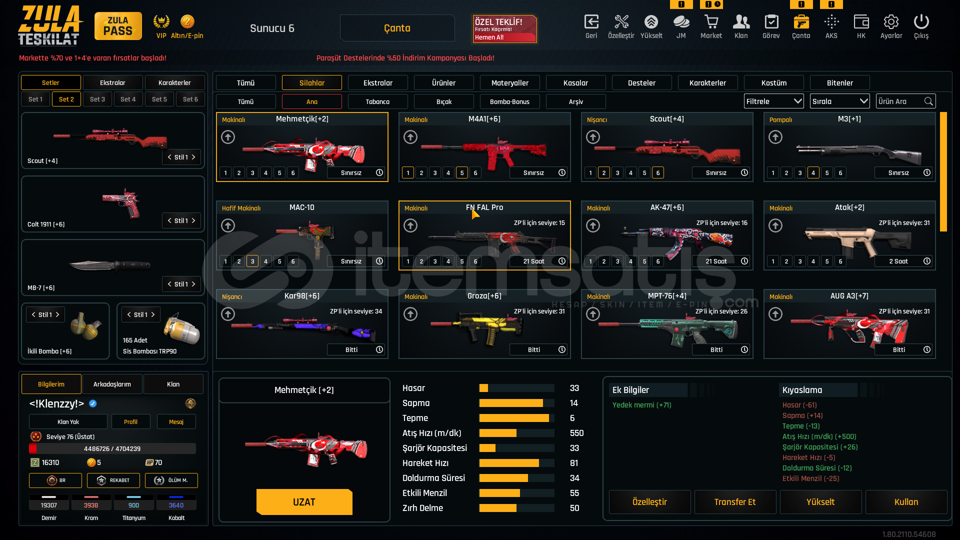 75 levelAug a3 +7M93r +6Kar98 +6Karambit +6İkili bomba +6Ak-47 +6Mk3 +6L115a3 +6Desert eagle +6Groza +6Ustura +7Kelebek +6Mehmetçik sınırsızsınırsız çelik yelek %10 hızlı canlanma %25 sınırsızhatrı sayılır miktarda materyalde mevcutturDETAYLI BİLGİ VERİLİR PAZARLIK YAPILIR CİDDİ ALICILARI BEKLERİMTEL VE MAİL SAĞLAMDIR ALAN ARKADAŞIN ÜZERİNE YAPILIR ...