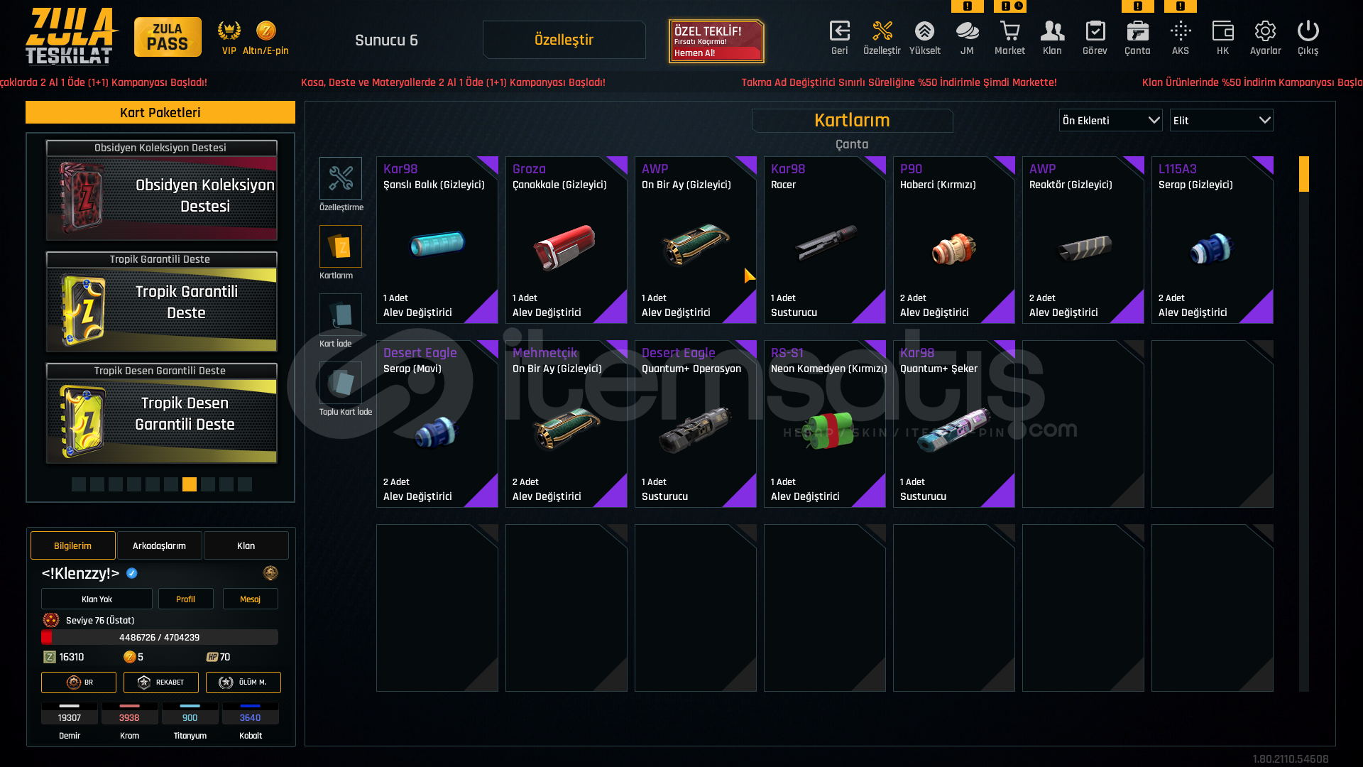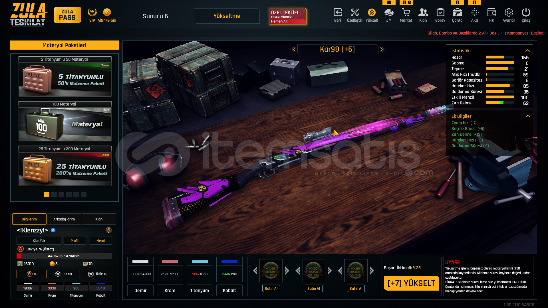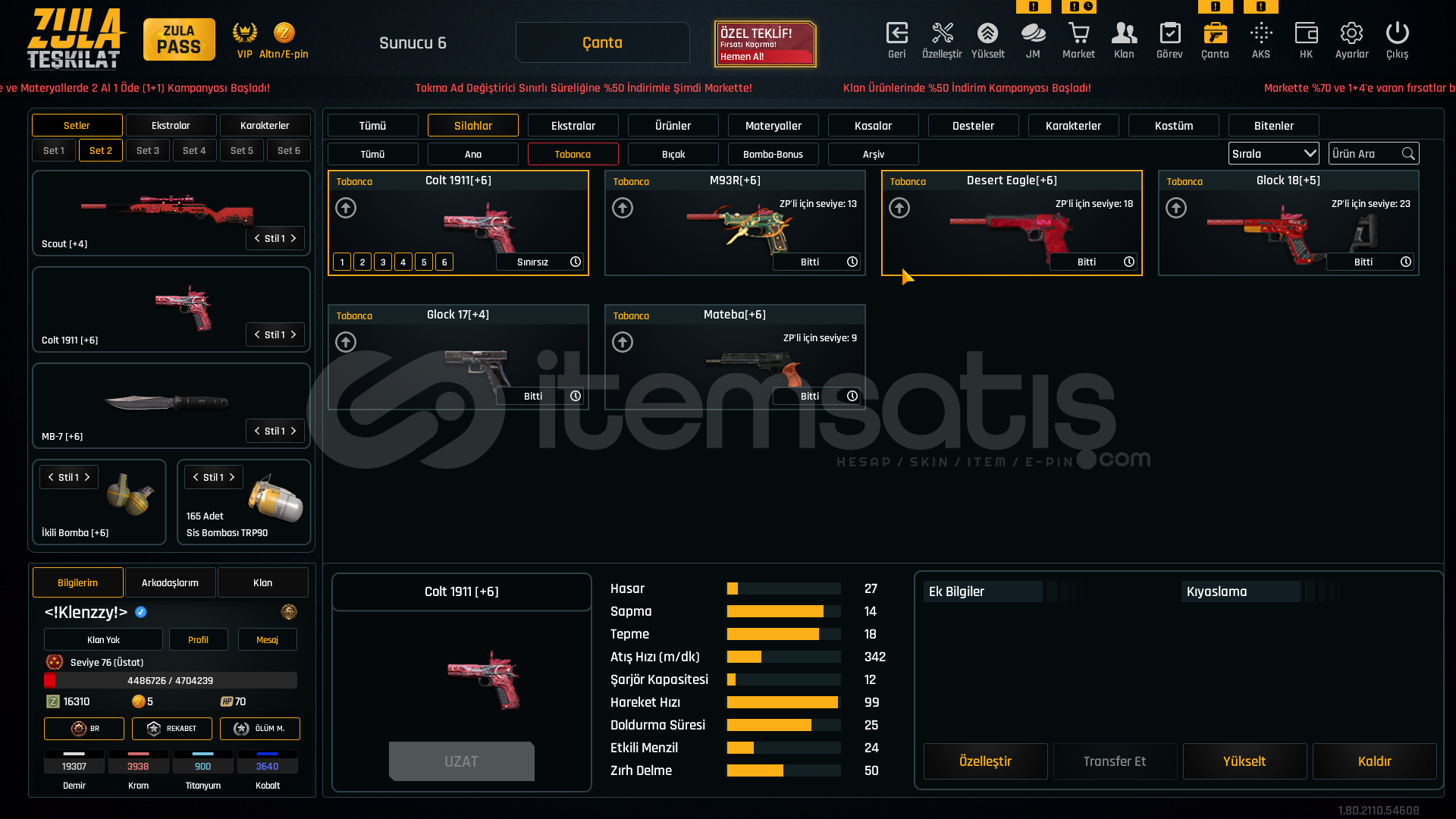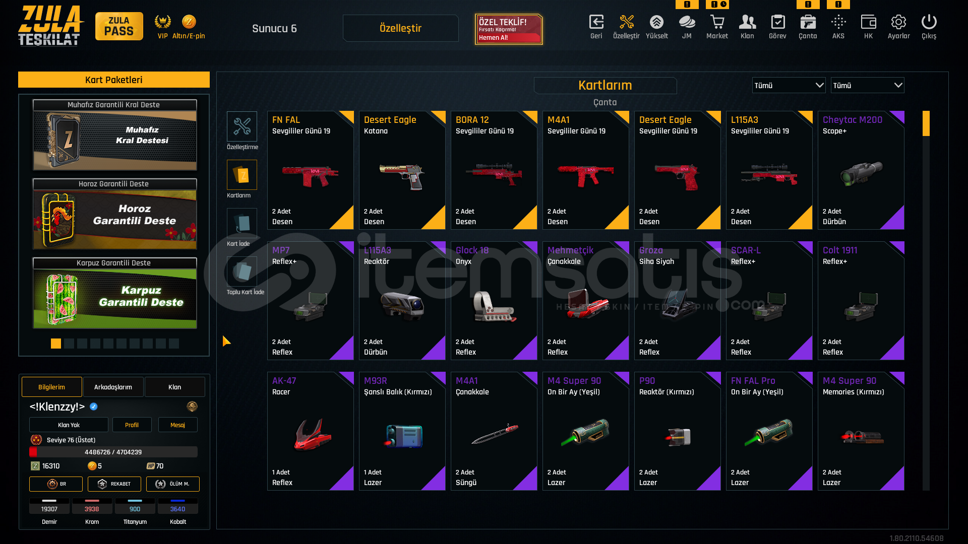 75 levelAug a3 +7M93r +6Kar98 +6Karambit +6İkili bomba +6Ak-47 +6Mk3 +6L115a3 +6Desert eagle +6Groza +6Ustura +7Kelebek +6Mehmetçik sınırsızsınırsız çelik yelek %10 hızlı canlanma %25 sınırsızhatrı sayılır miktarda materyalde mevcutturDETAYLI BİLGİ VERİLİR PAZARLIK YAPILIR CİDDİ ALICILARI BEKLERİMTEL VE MAİL SAĞLAMDIR ALAN ARKADAŞIN ÜZERİNE YAPILIR ...