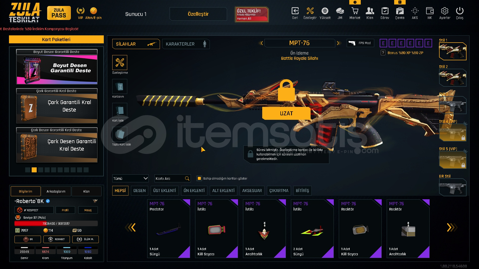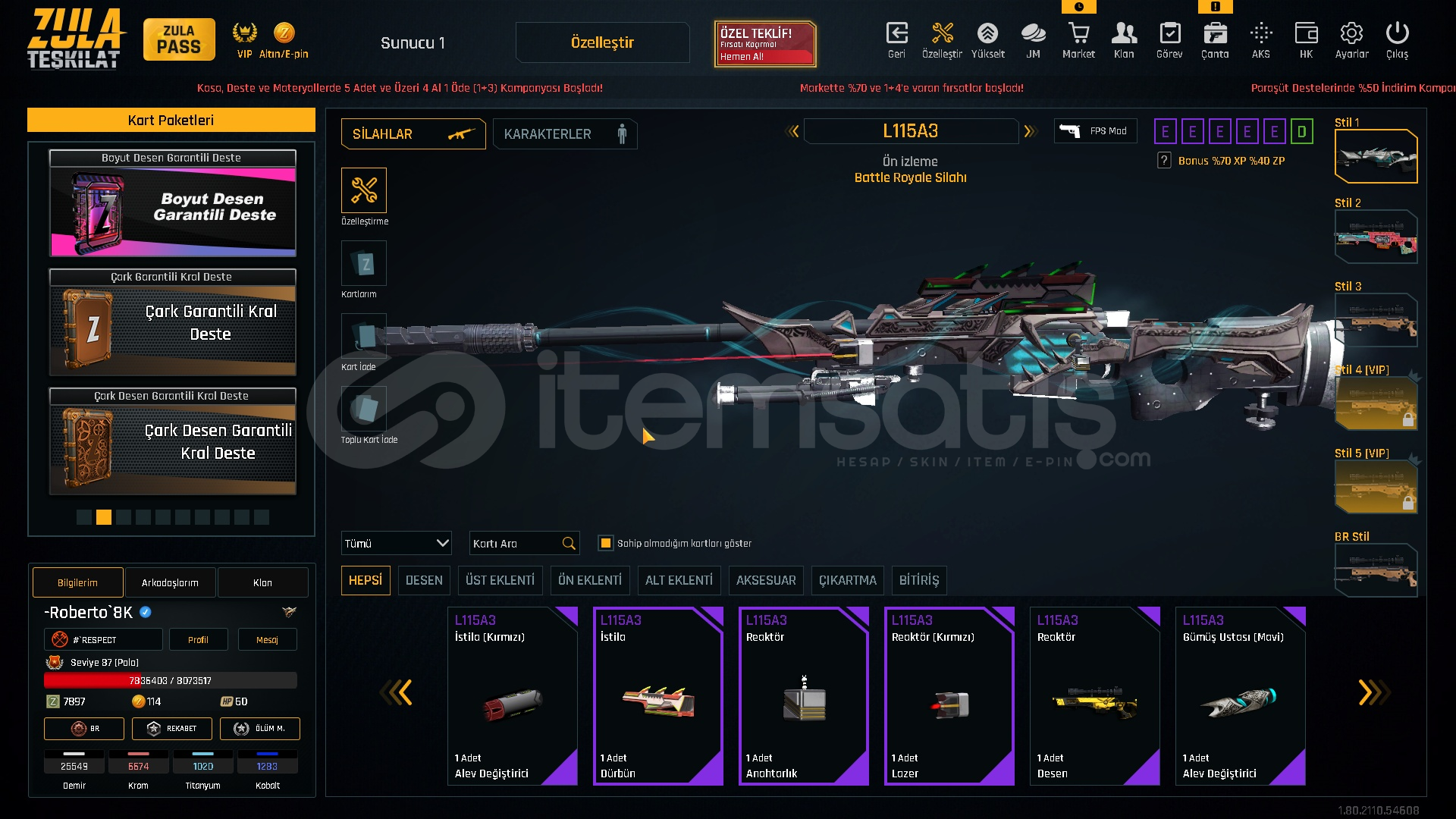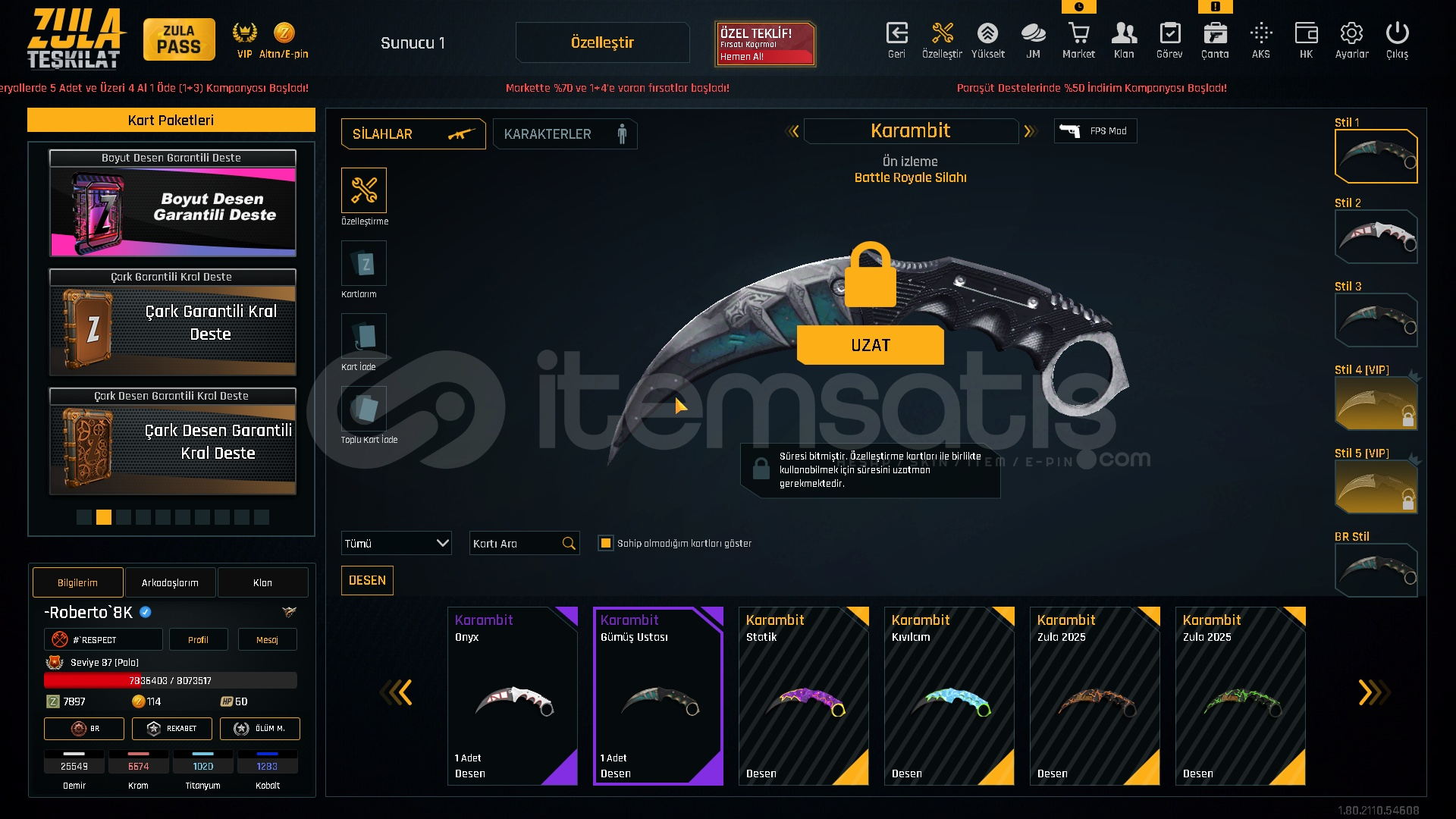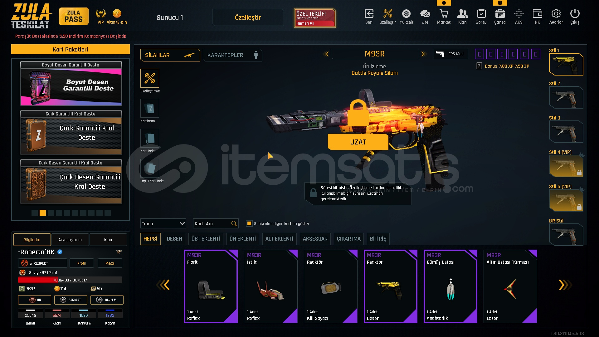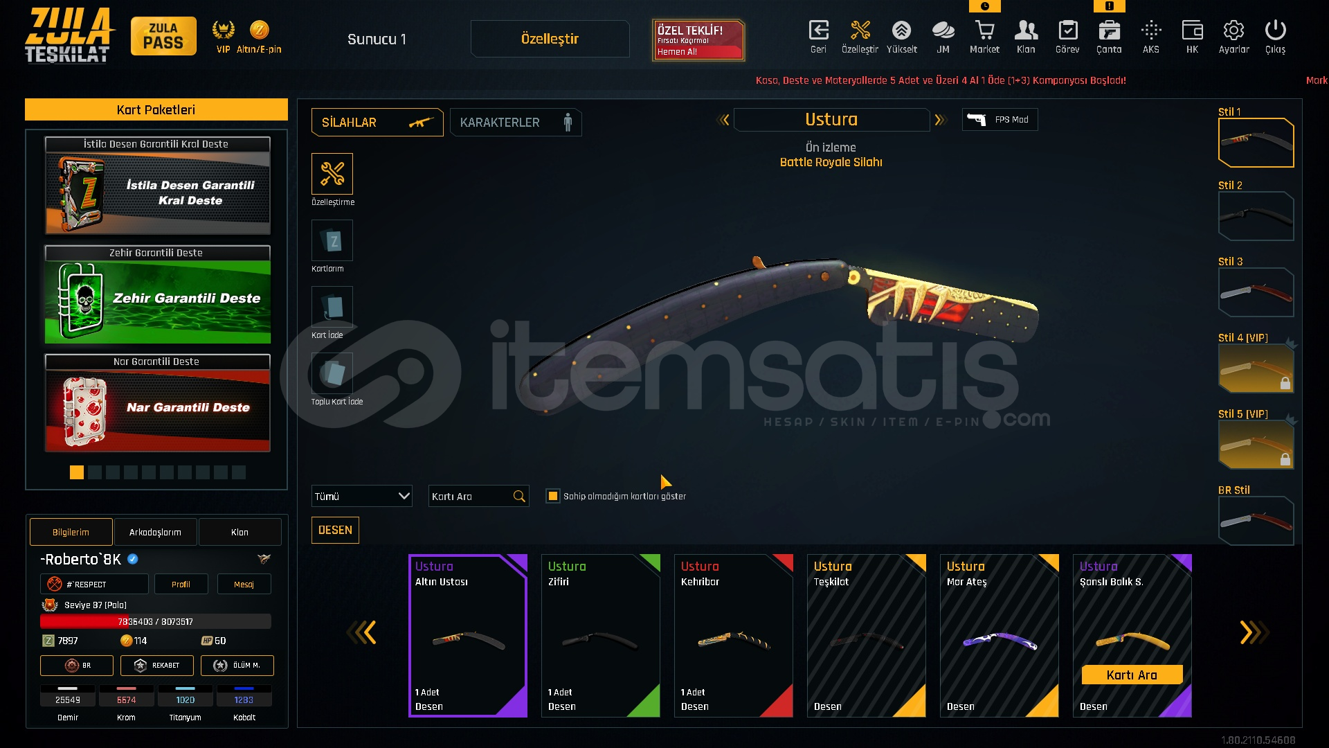 Altın Ustası Ustura ( piyasada 2000 tl fiyatı )Gümüş ustası seri full150+ ElitNot : Hesabın Bağları Ölüdür bu yüzden nerdeyse yarı fiyatına veriyorum bağlarının ölü olduğunu bilerek alın