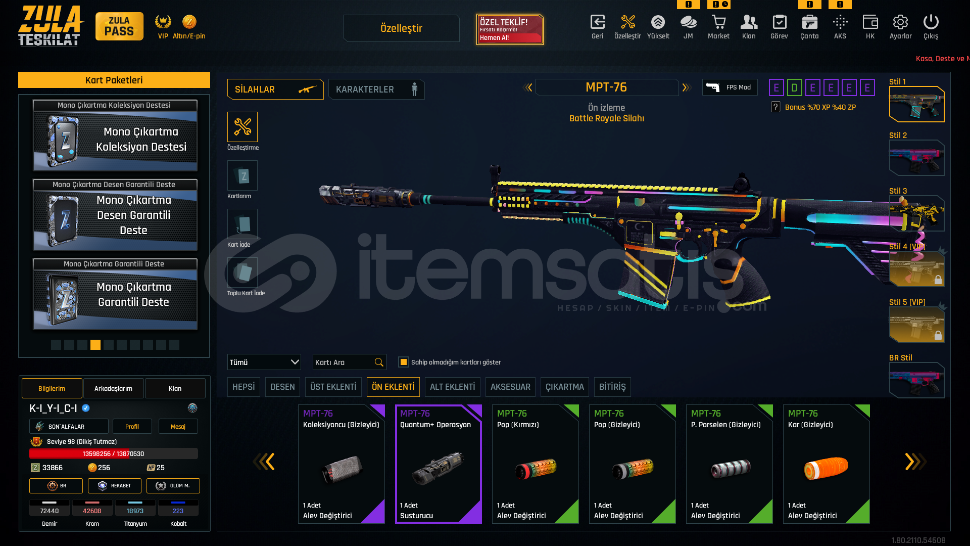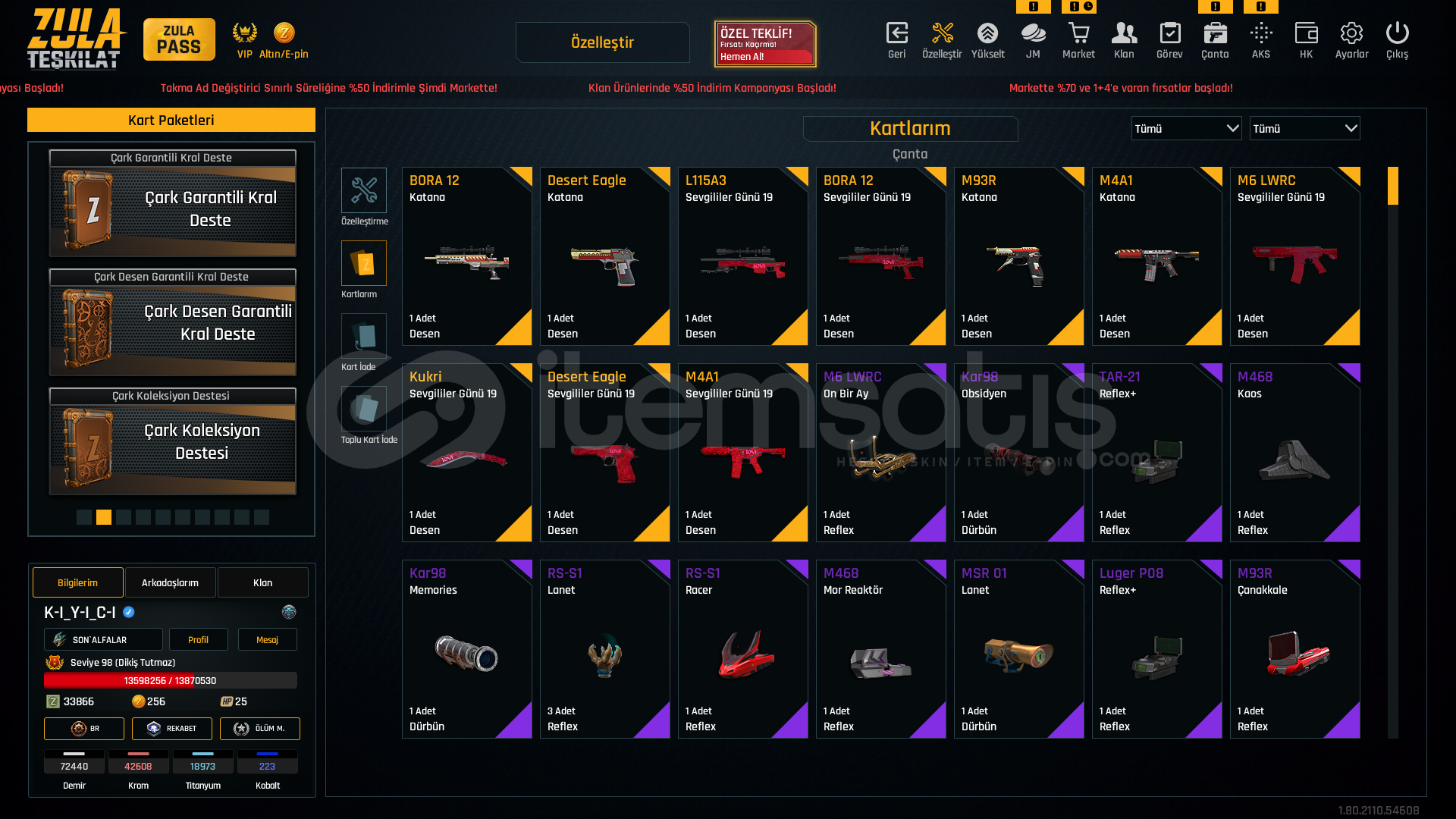 👑 HESAP 98 SEVİYEDİR.👑 BİNLERCE LİRA VE EMEK HARCANMIŞTIR.👑 RANK : ELMAS🎨 5 ADET SÜRESİZ KARAKTER GÜÇLENDİRİCİ🎨 META SİLAHLARIN HEPSİNDE QUANTUM MEVCUTTUR🎨 MPT-76 QUANTUM+🎨 M468 QUANTUM+🎨 L115A3 EŞSİZ SEVGİLİLER GÜNÜ DESEN🎨 DESERT EAGLE EŞSİZ SEVGİLİLERİ GÜNÜ DESEN&...
